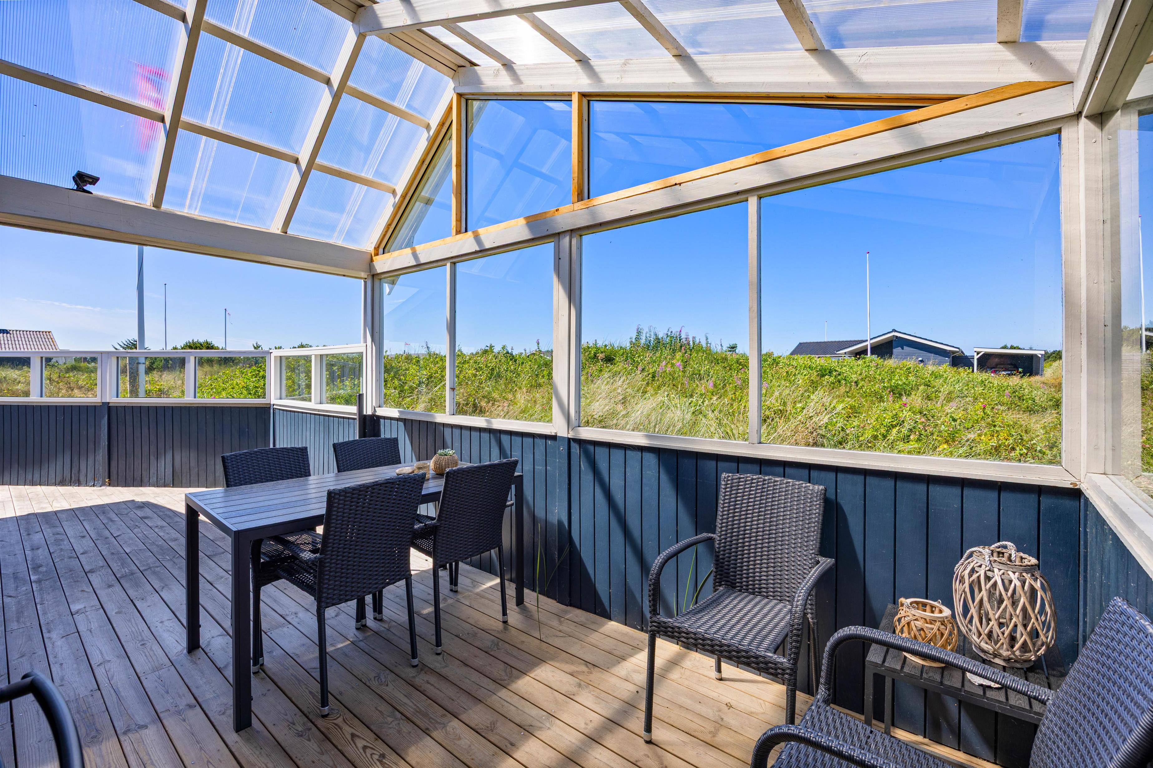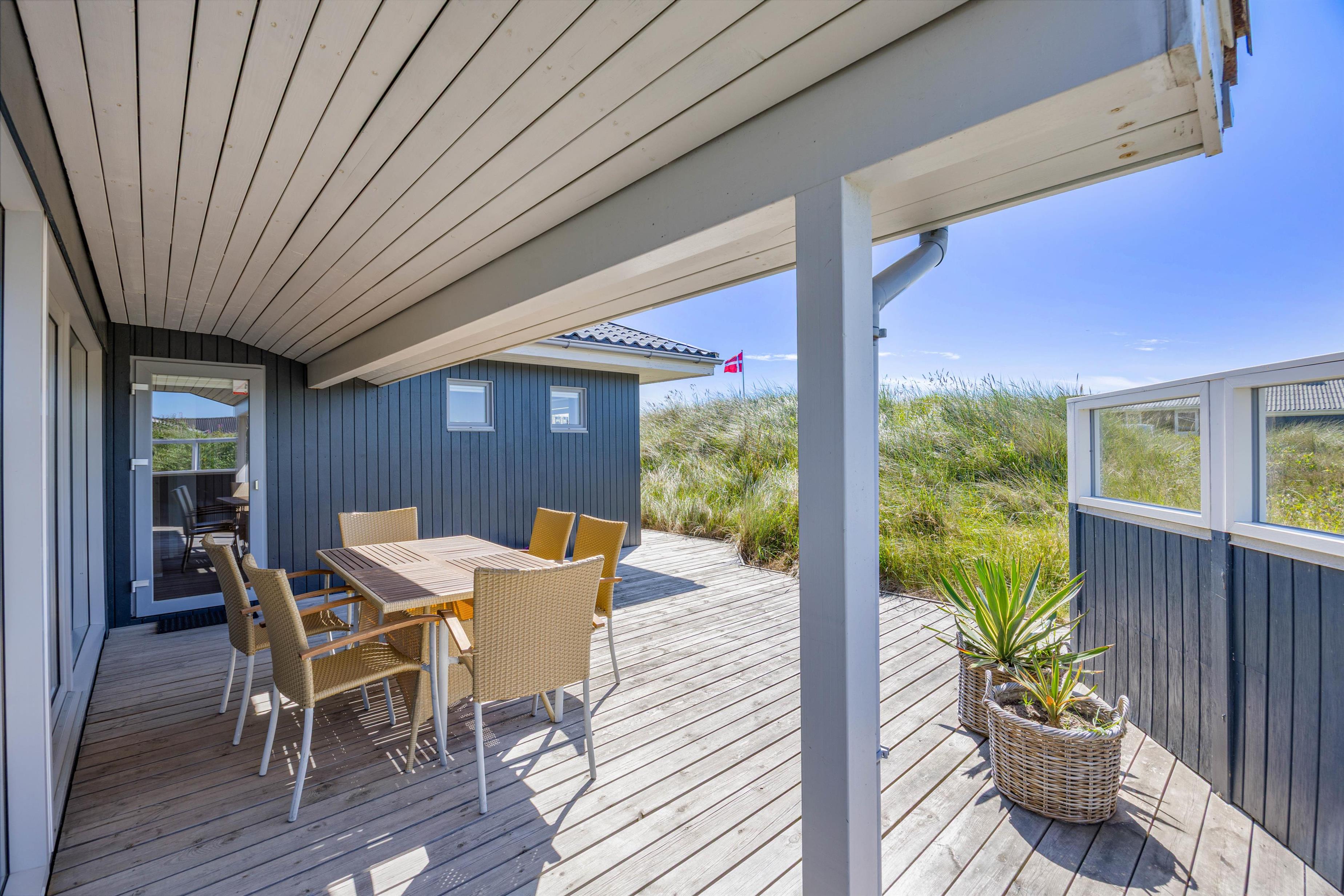 Den overdækkede terrasse betyder, at I altid har mulighed for at være udenfor, uanset vejret. Her har I mulighed for at bruge de behagelige havemøbler, som indbyder til afslapning og hygge. Her er I omgivet af det fantastiske klitlandskab, som er med til at skabe privatliv. Nyd de lange sommerdage, eller den altid fascinerende stjernehimmel om efteråret.