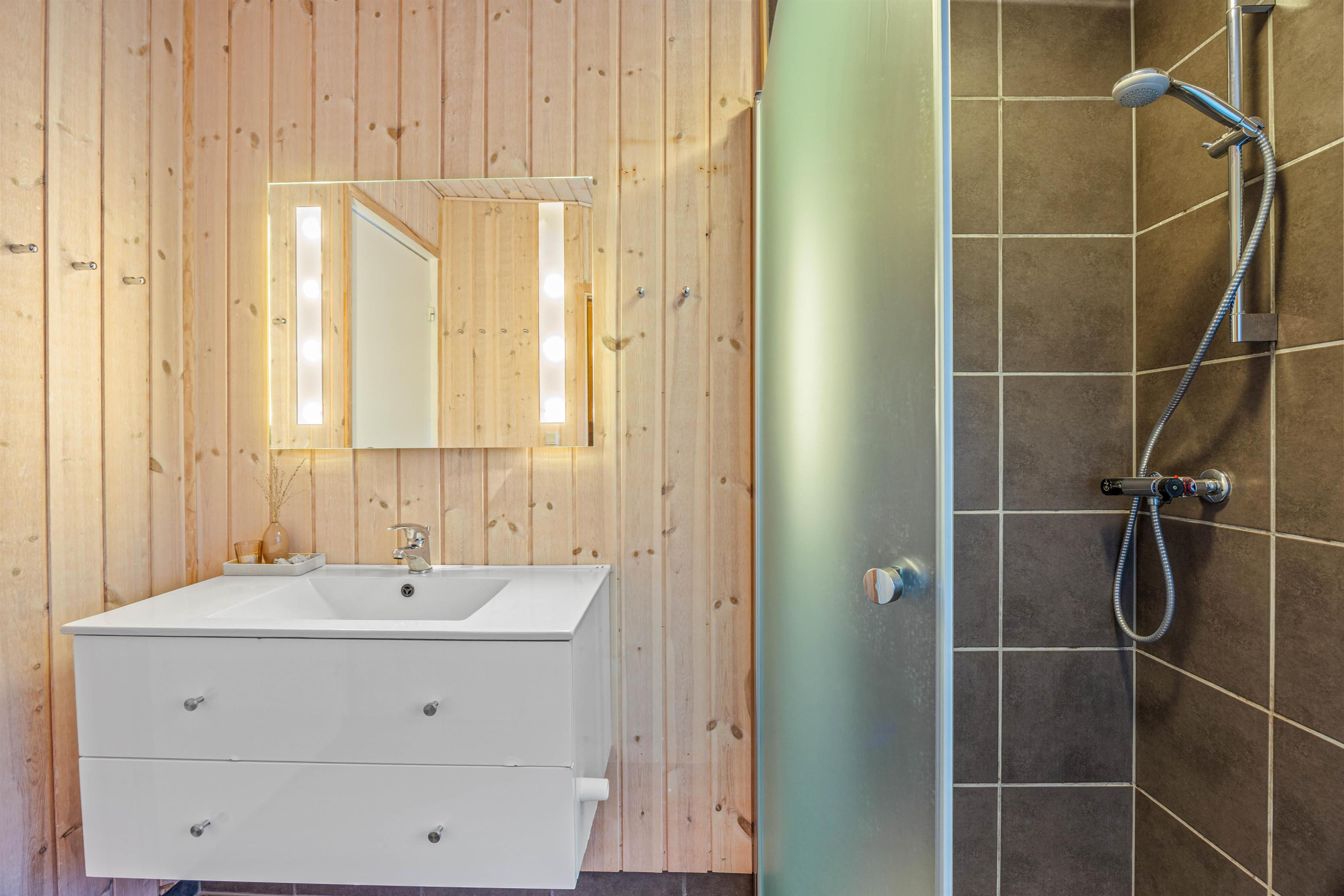 I feriehuset finder I et veludstyret køkken, hvor opvaskemaskinen klarer opvasken, når I har tilberedt et lækkert feriemåltid. Når familien sidder sammen om aftenen og arrangerer en sjov spilleaften, sørger den energibesparende luft-til-luft-varmepumpe for en konstant og god temperatur i feriehuset. Hvis I vil have endnu mere hygge, kan I tænde op for brændeovnen, som er med til at skabe den helt rigtige feriestemning.