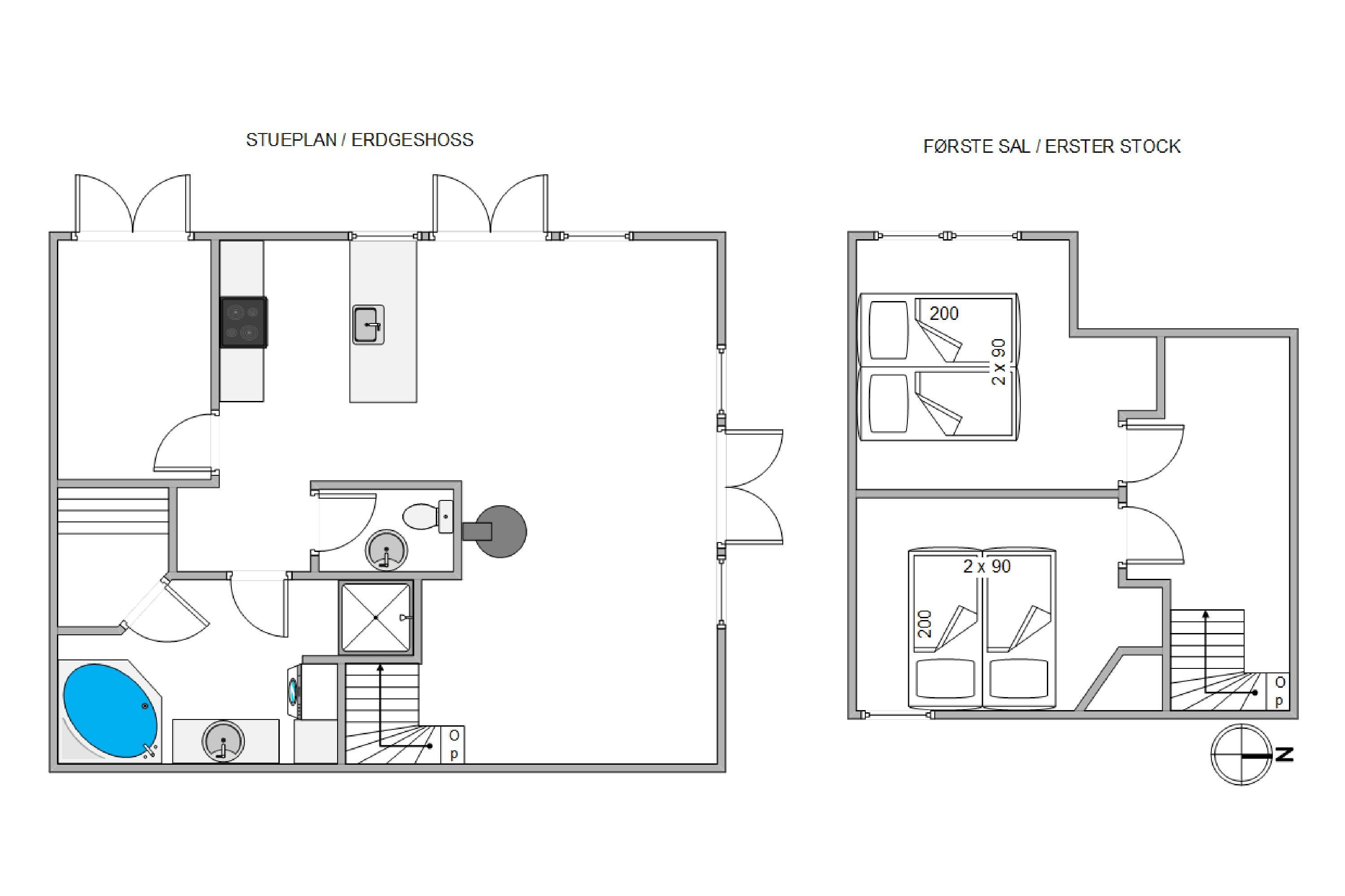 1. soverum/sengestørrelser2 x 90 x 200