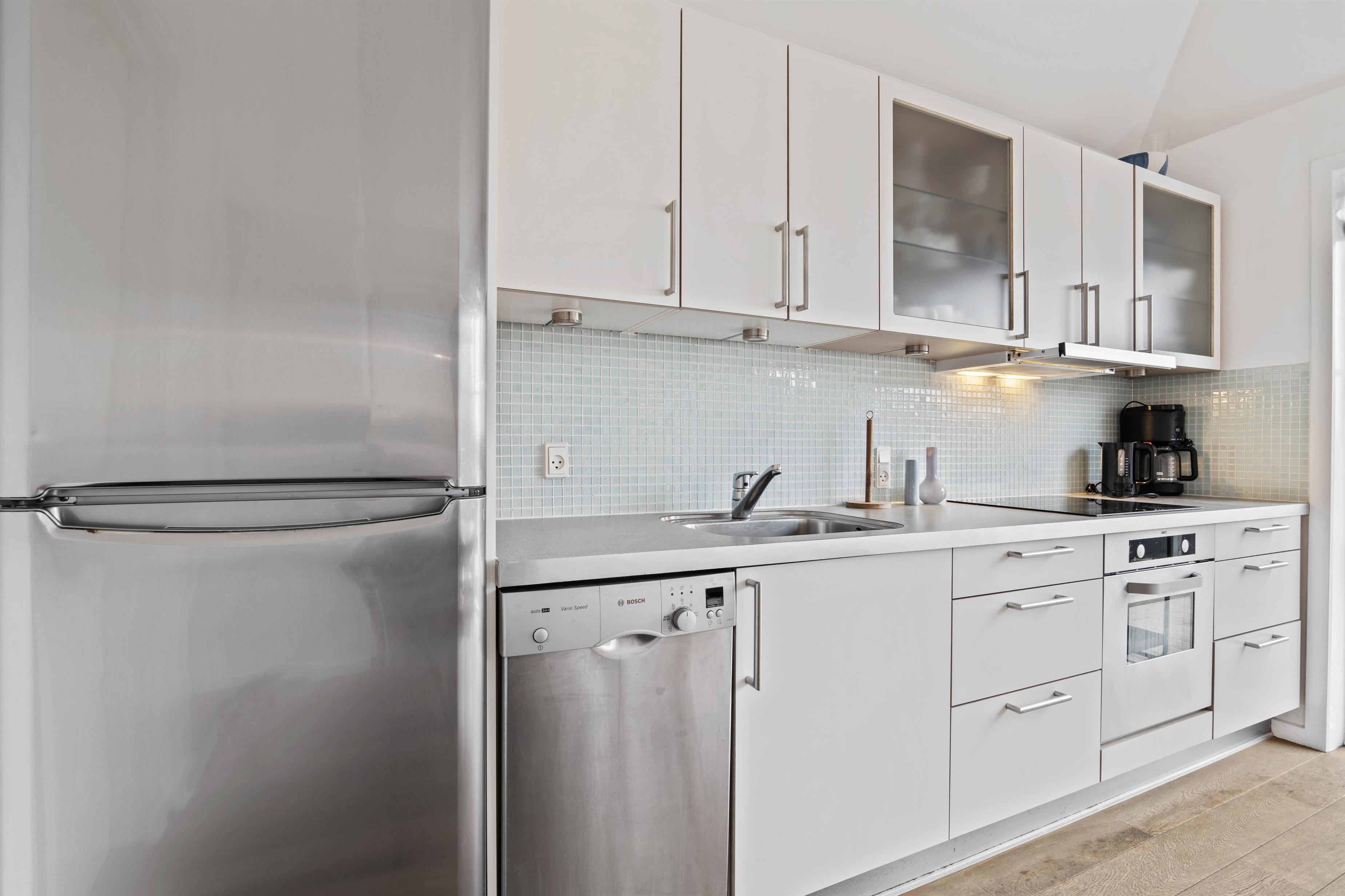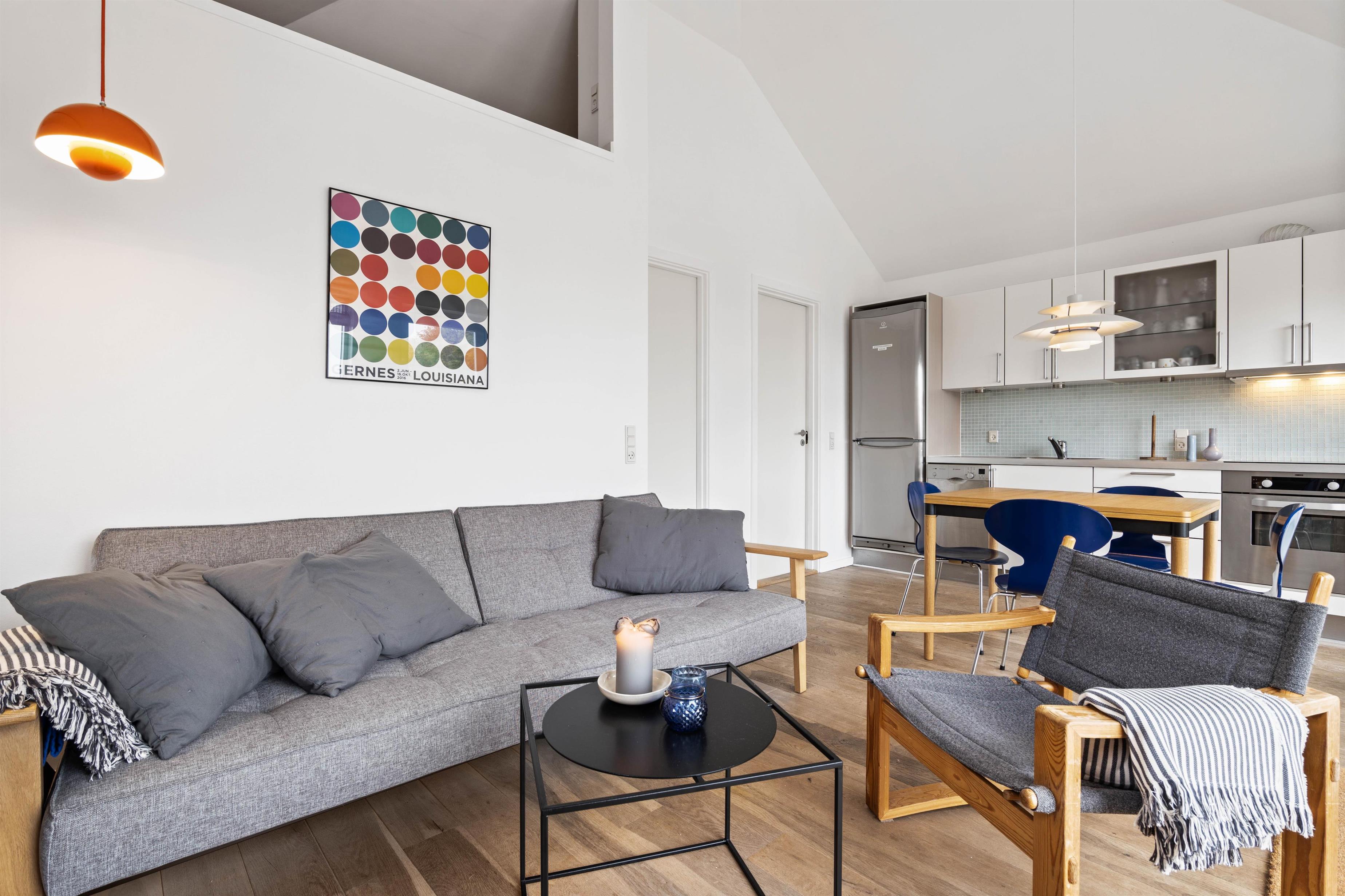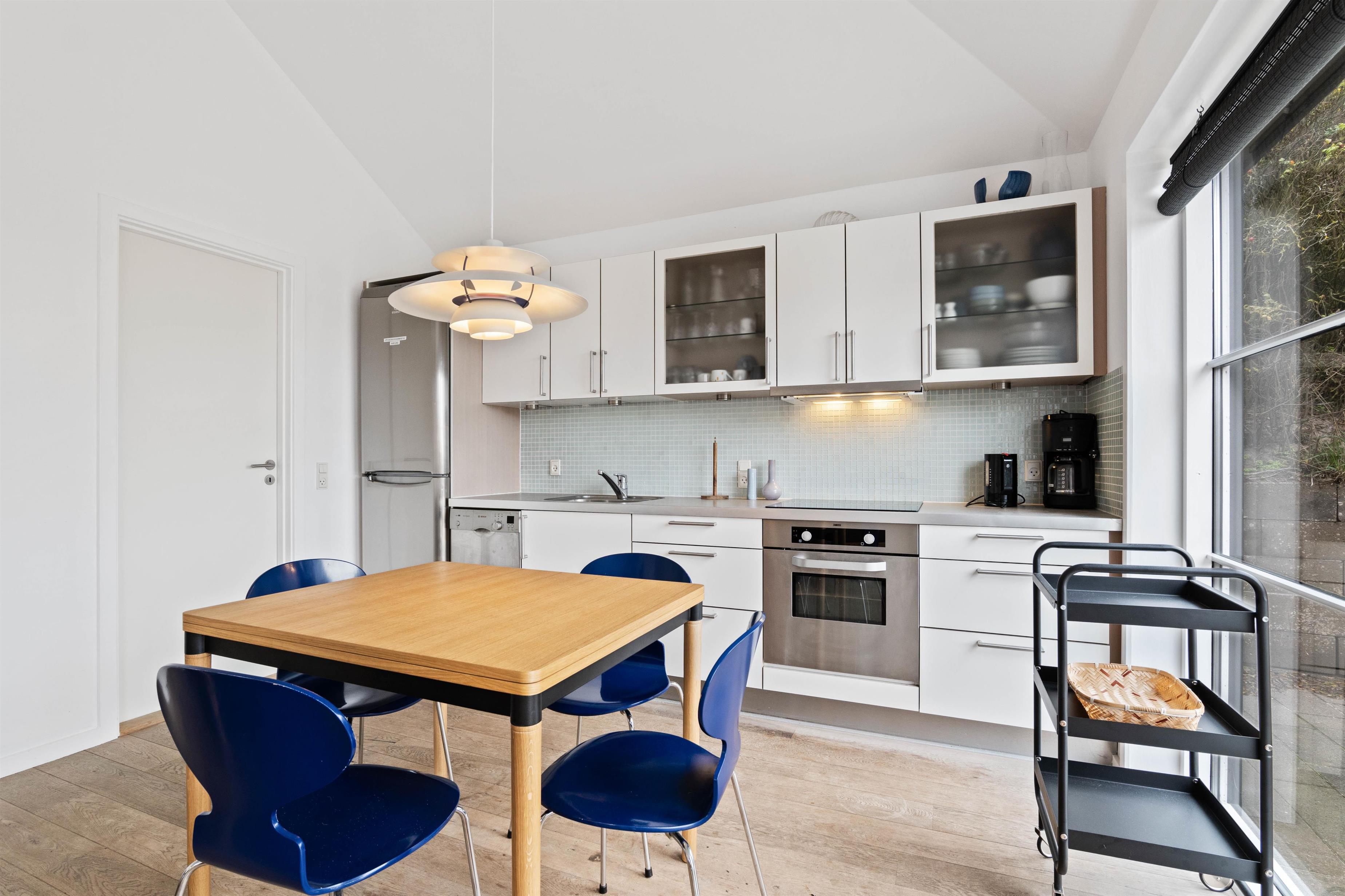 I sommerhuset er der et dejligt og veludstyret køkken, som ligger i åben forbindelse med stuen. Her kan I hjælpes om at tilberede et lækkert måltid mad eller slappe af i sofaen.Udover det skønne åbne køkken-alrum, finder I i dette unikke sommerhus også to hyggelige soverum, der gør at huset nemt kan rumme op til 3 personer. Ejer du en hund, er dette sommerhus lige noget for jer, da der er tilladt med én hund.