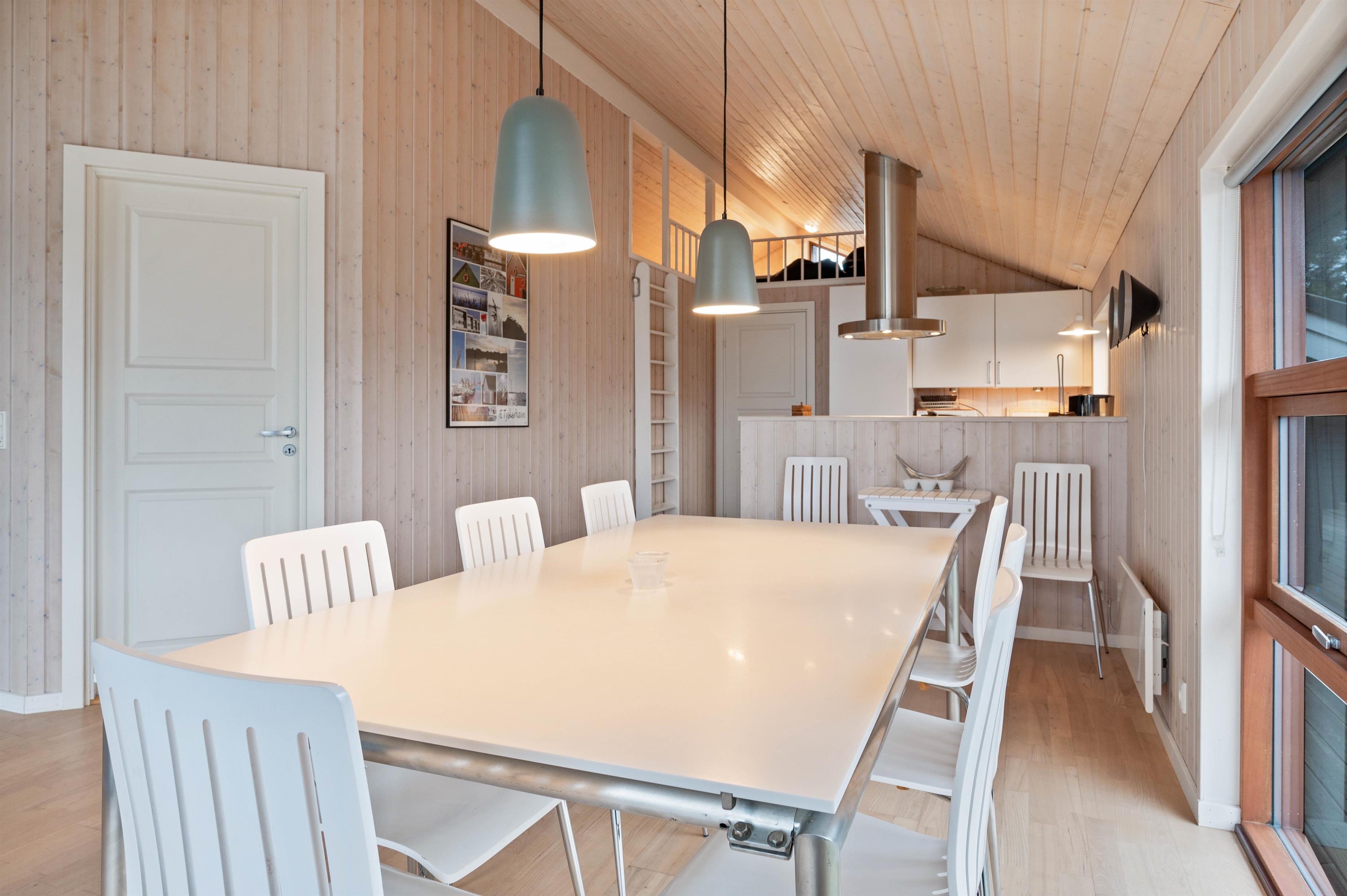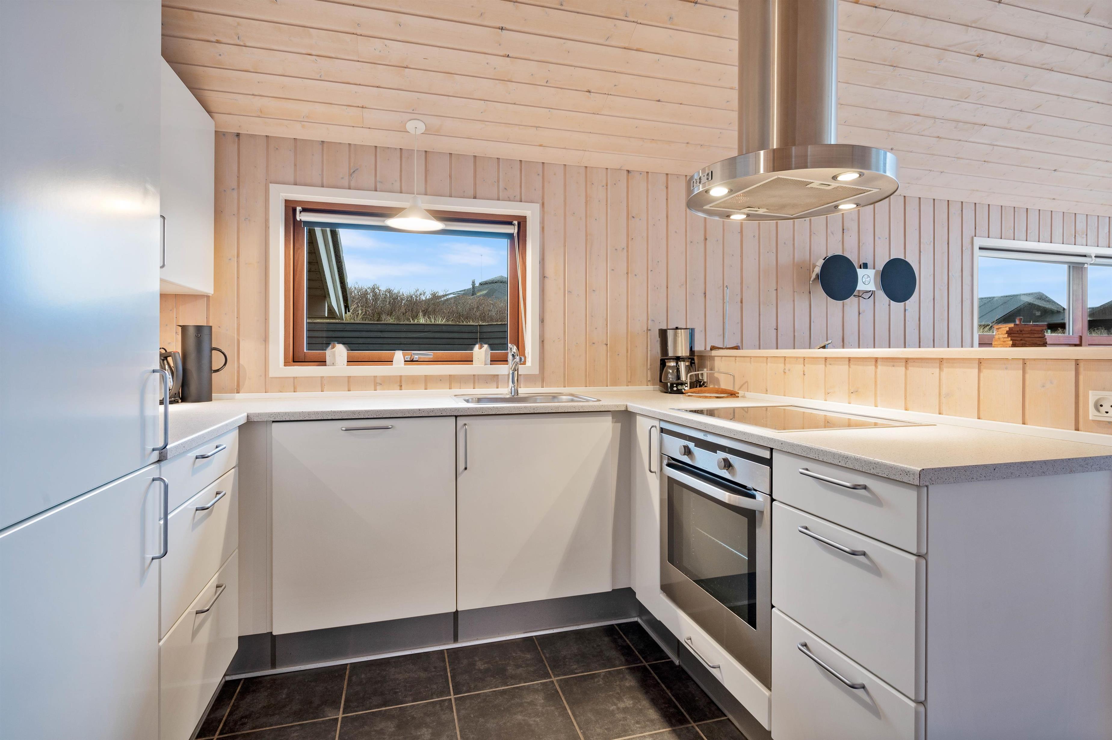 Huset er godt indrettet i afslappende skandinavisk stil, hvor det kombinerede opholdsrum med stue og køkkenafdeling er husets centrum. Køkkenafdelingen er veludrustet og selvfølgelig med mikroovn og opvaskemaskine, der gør køkkenarbejdet til en leg.
