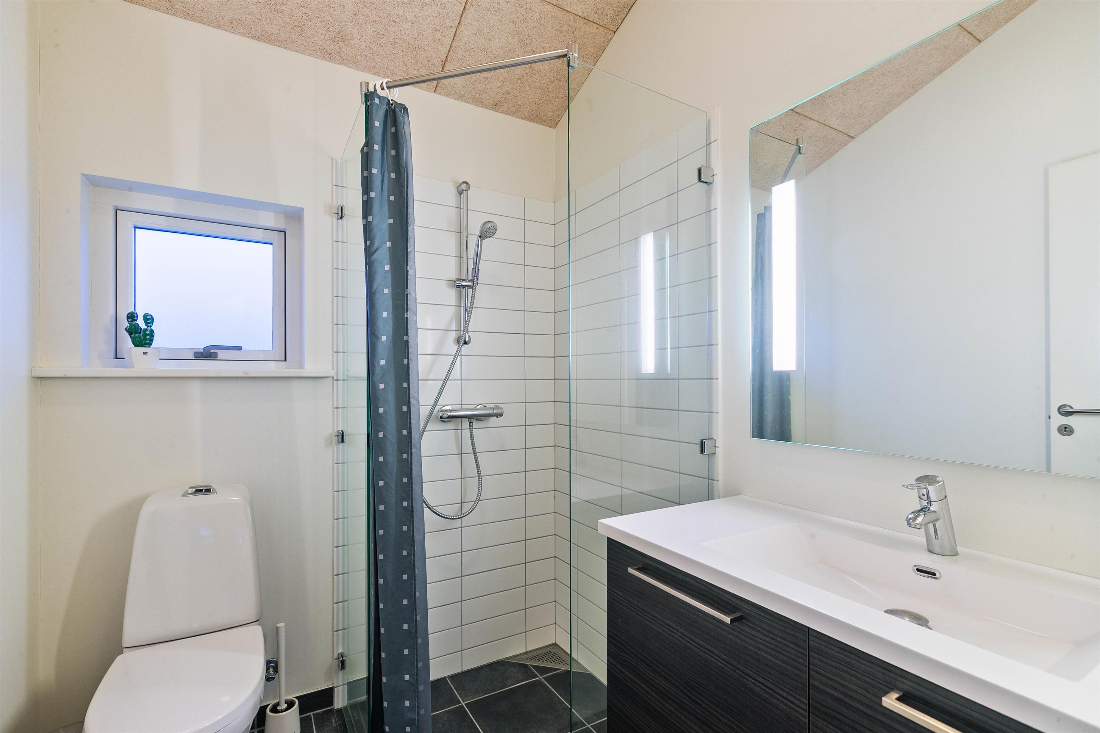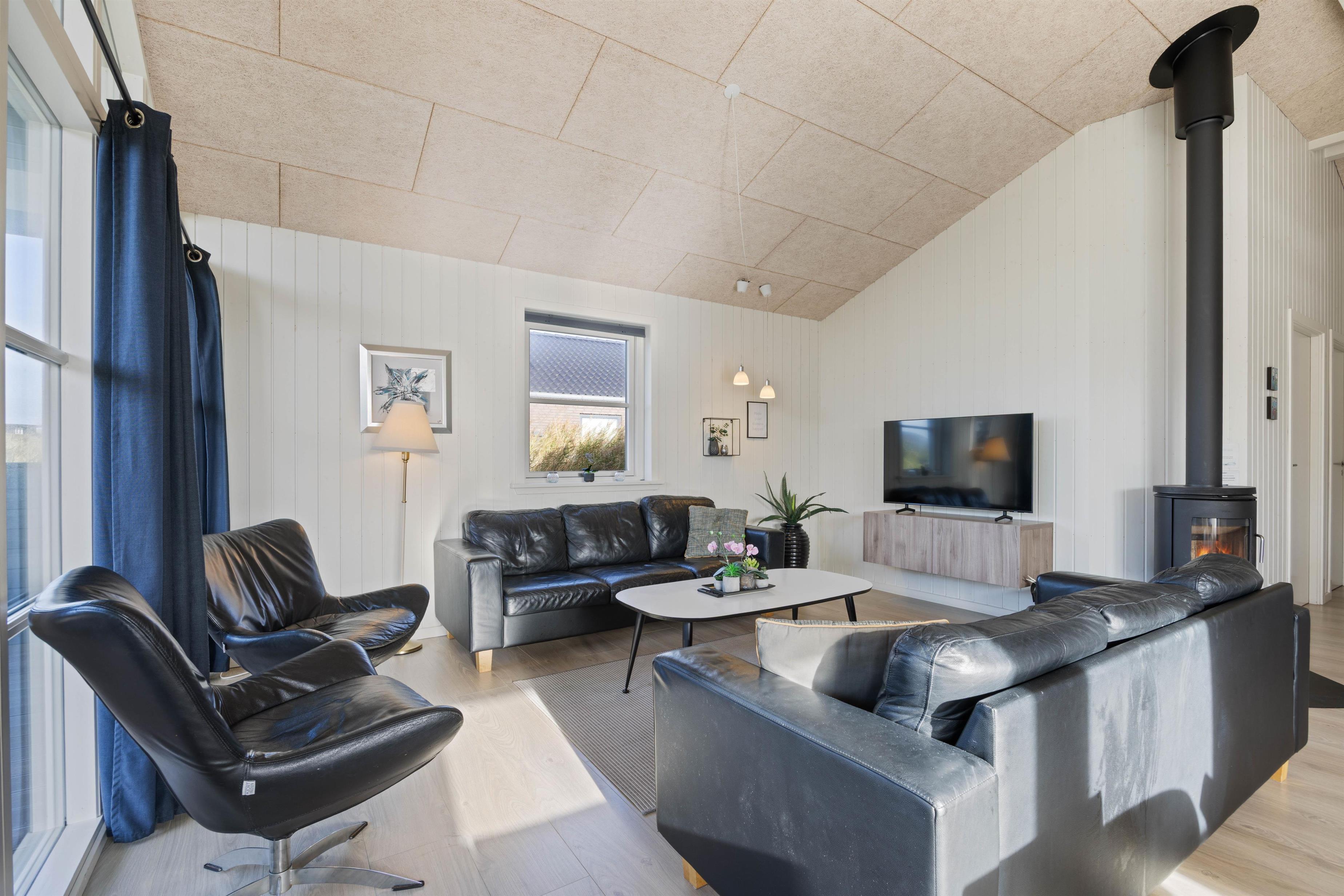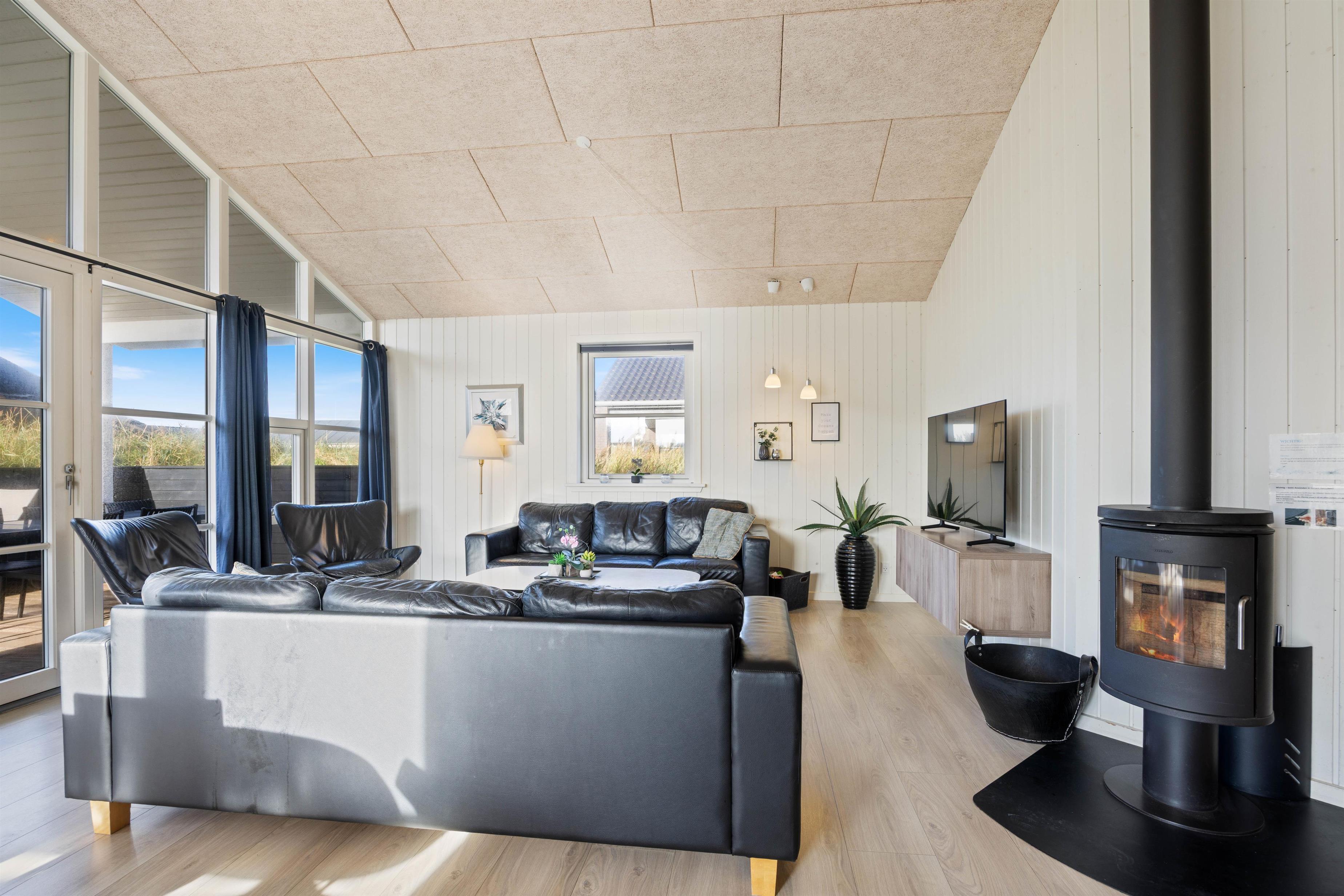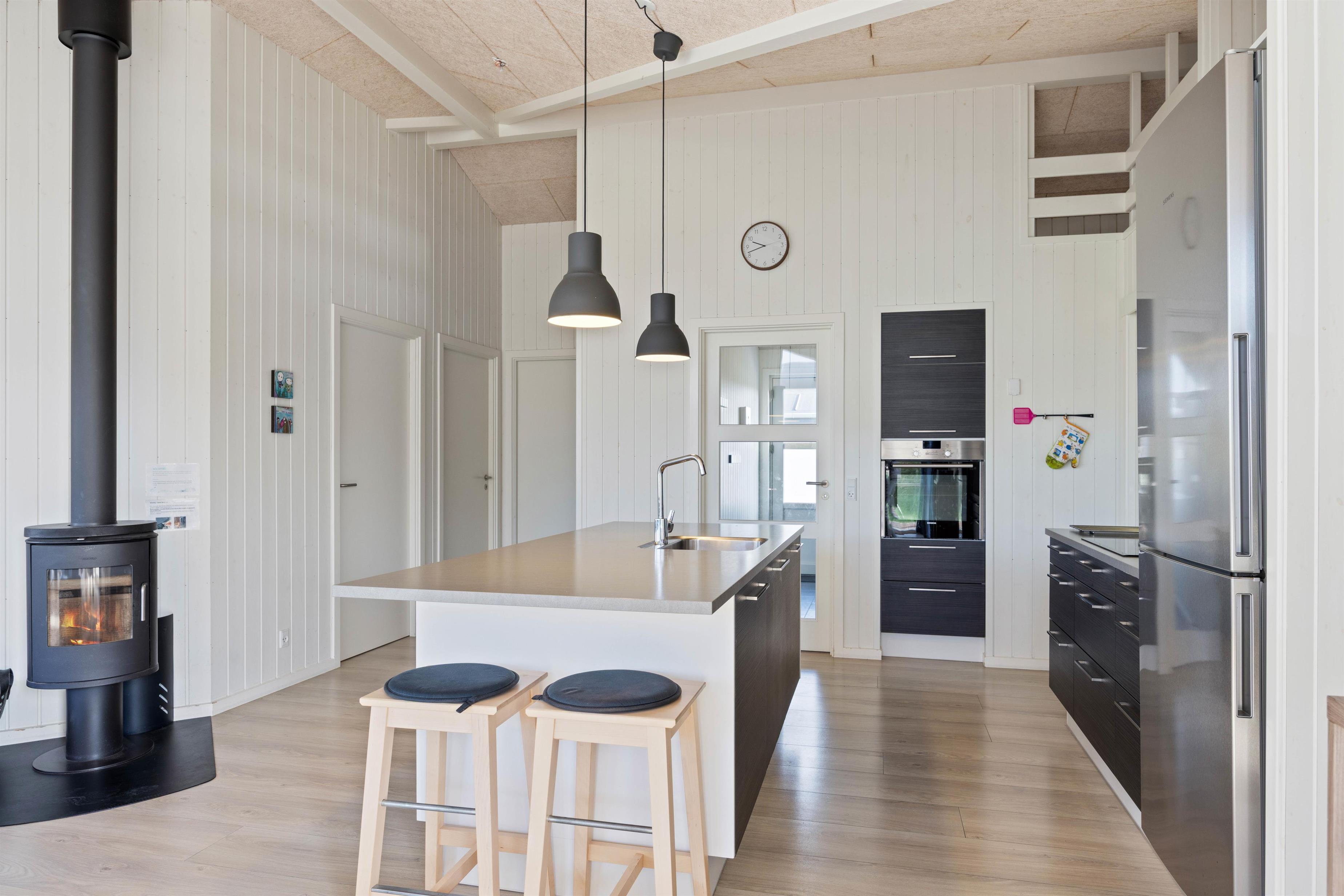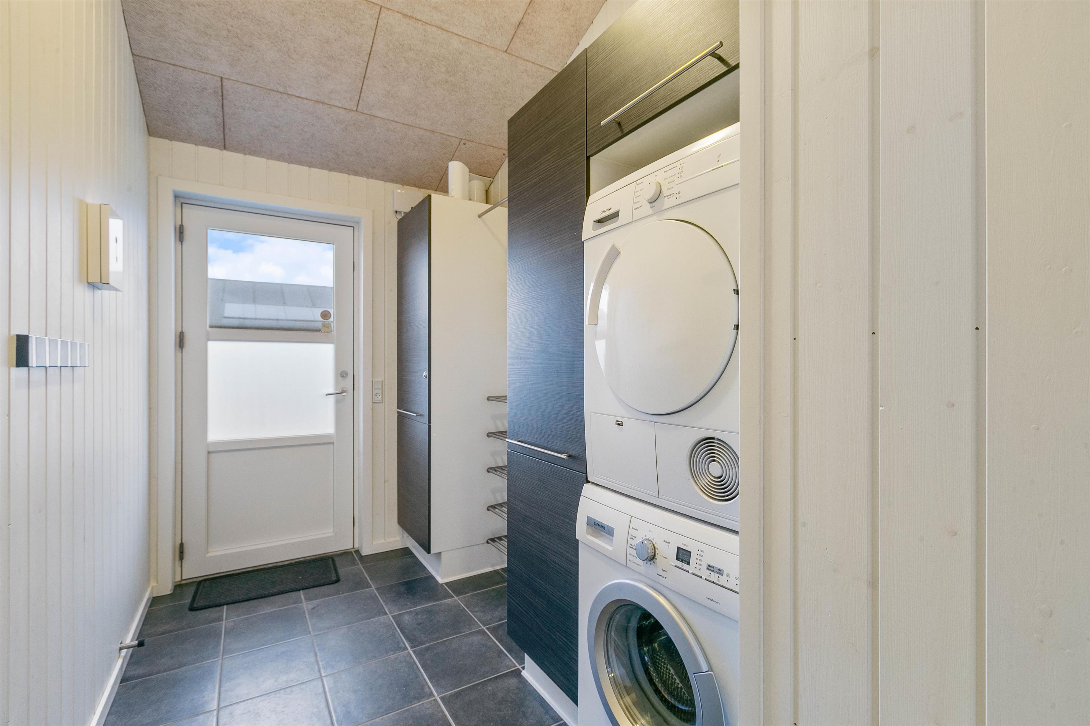 Sommerhuset har to badeværelser. Begge har gulvvarme og en dejlig bruseniche, og der er også sauna i det store badeværelse. Sommerhuset har naturligvis også en vaskemaskine og en tørretumbler. Og i køkkenet er der en opvaskemaskine, en mikroovn og en fryser på 80 L. Stuen er hyggeligt indrettet med et stort SMART-TV, en radio m/CD-afspiller, en brændeovn og gratis trådløst internet Huset er opvarmet ved hjæp af naturgas, som er med til at holde udgifterne til opvarmning lave.