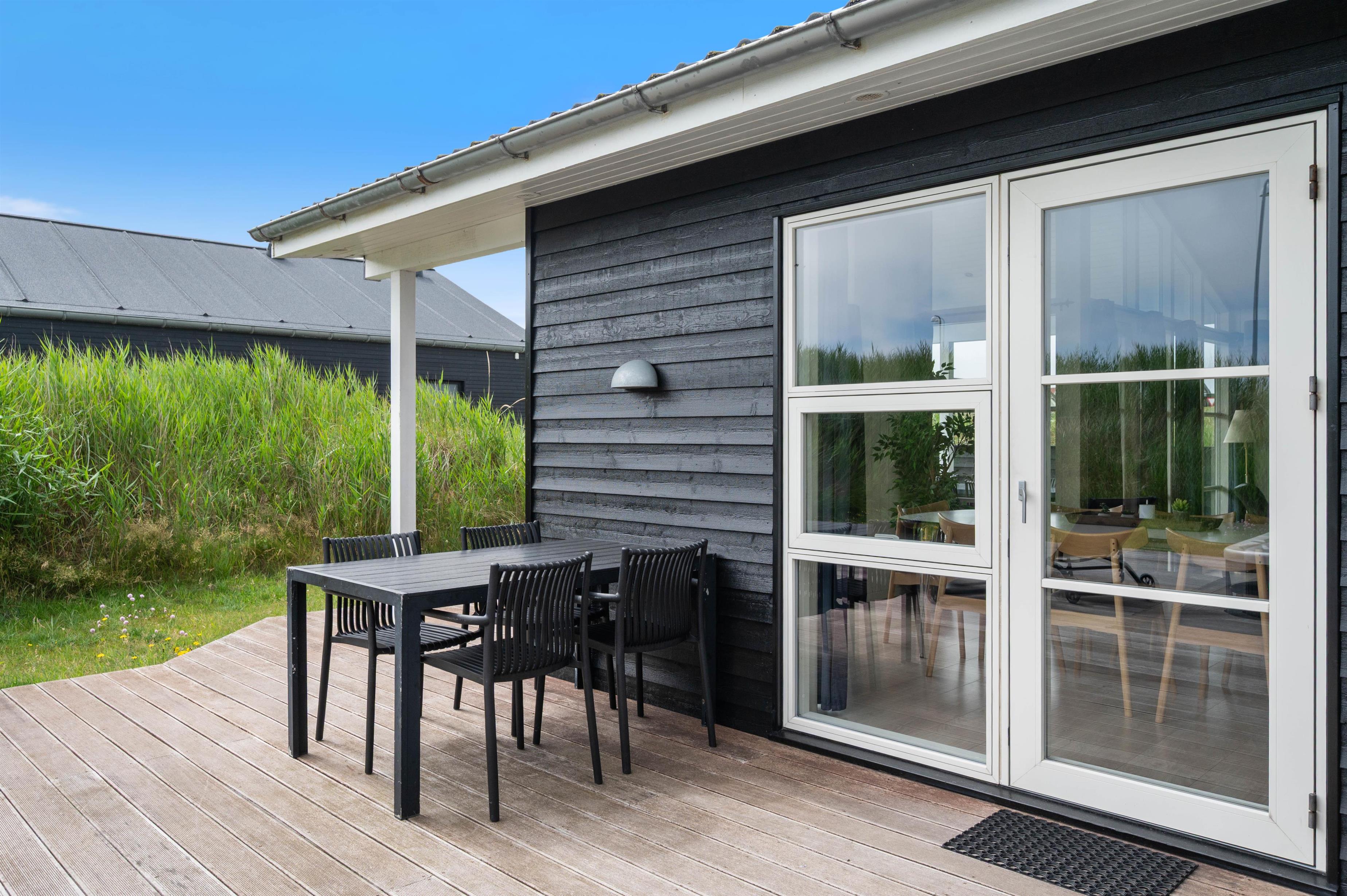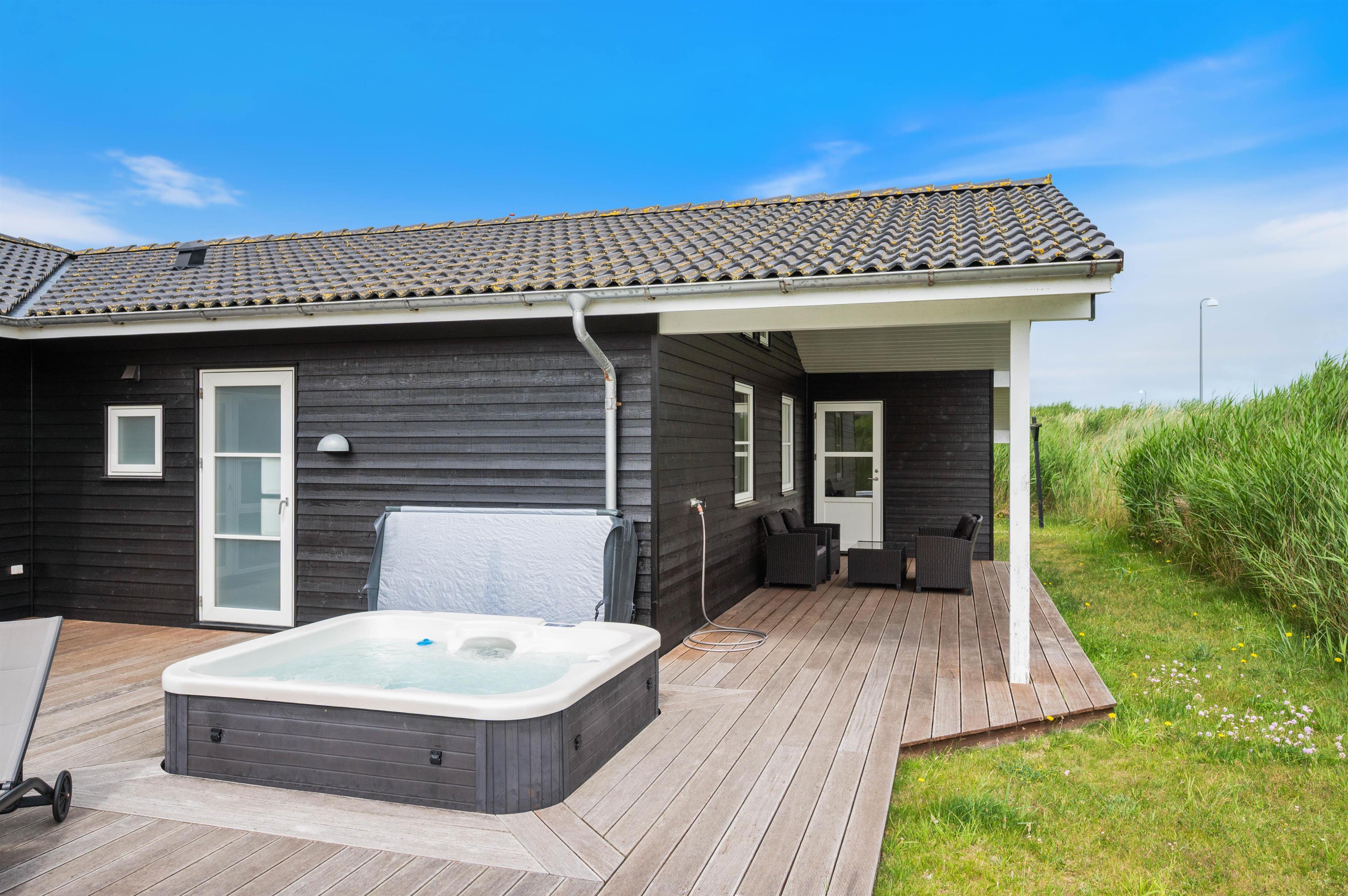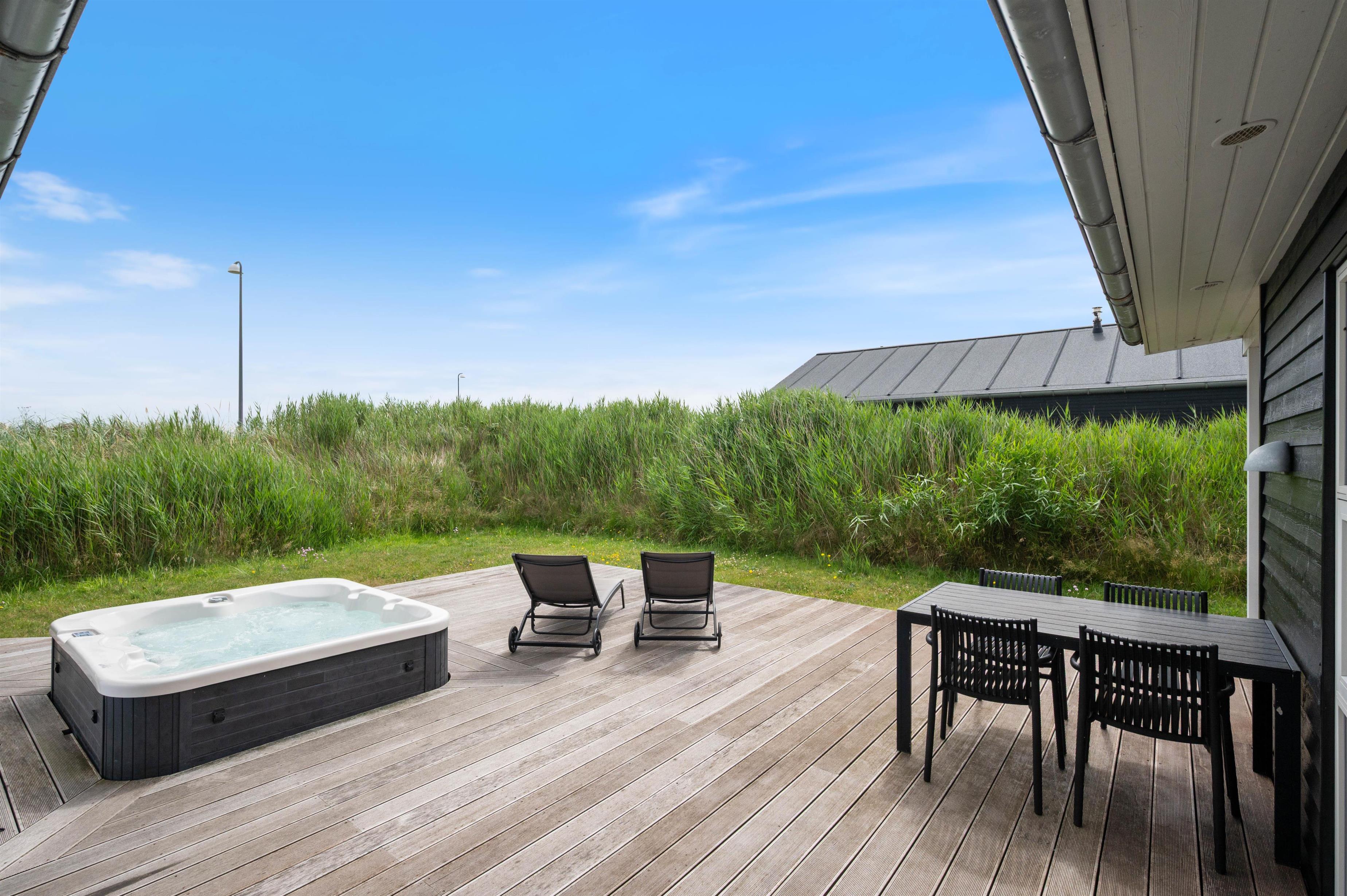 Dette hus har gode terrasser, som strækker sig rundt langs det meste af huset. Den er delvist overdækket, delvis lukket, og delvist afskærmet. Så her er det altid muligt at opholde sig på terrassen og nyde den friske luft og en hyggelig grillaften med familie eller venner. På terrassen er der også en udespa, som er særdeles hyggelig for både børn og voksne hele året rundt. Huset ligger tæt på byens 18-hullers golfbane - kun er 2 km væk fra Lodbergsvej 72.