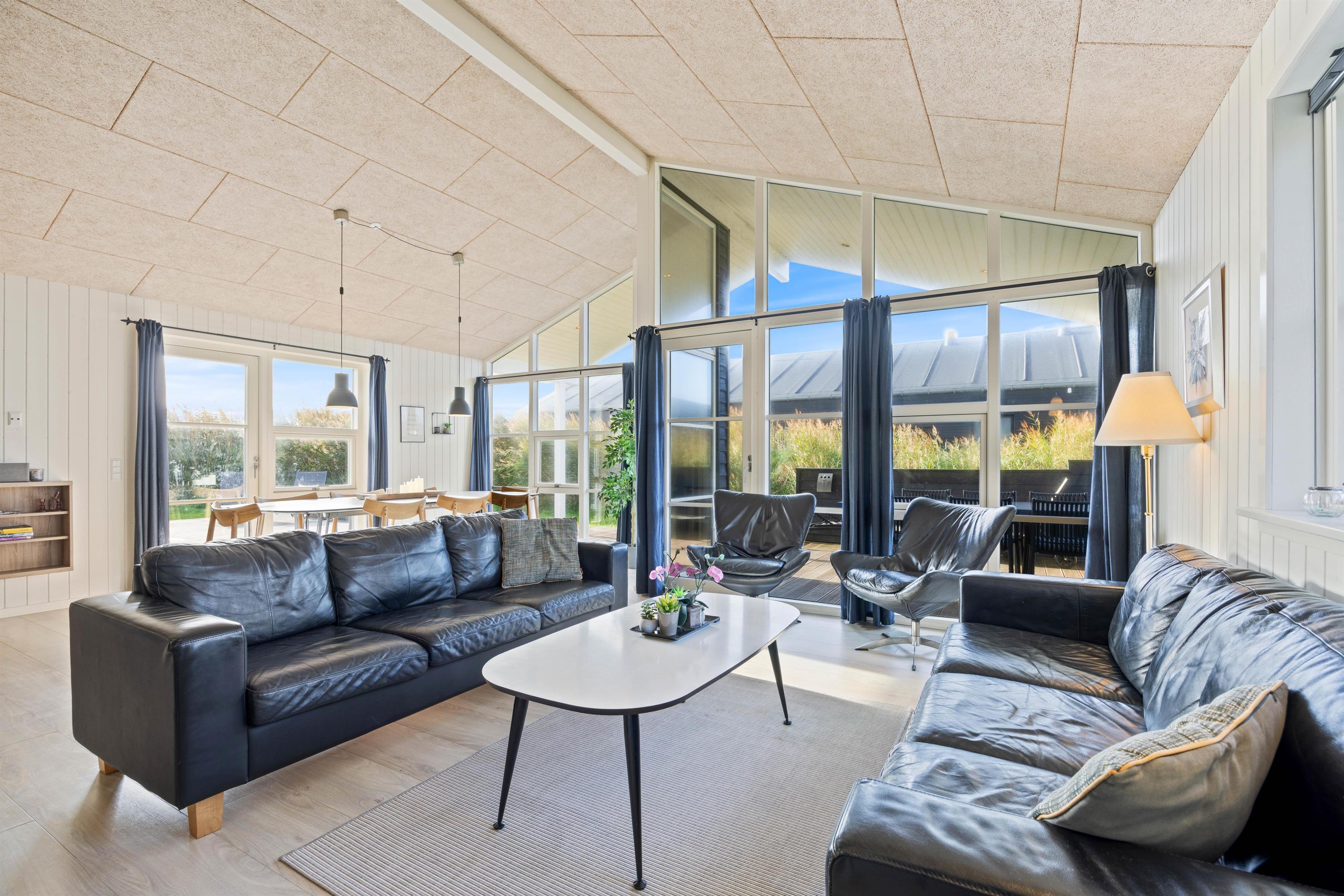 Sommerhuset på Lodbergsvej strækker sig over 125 kvadratmeter. Her er dejligt lyst og er opført i 2013 efter moderne standarder. Loftet går derfor selvfølgelig hele vejen til kip, hvilket er med til at give rummene en god rummelighed og fornemmelse. Der er også tænkt på akoustikken, eftersom man har valgt at opsætte troldtekts lofter i hele huset.
