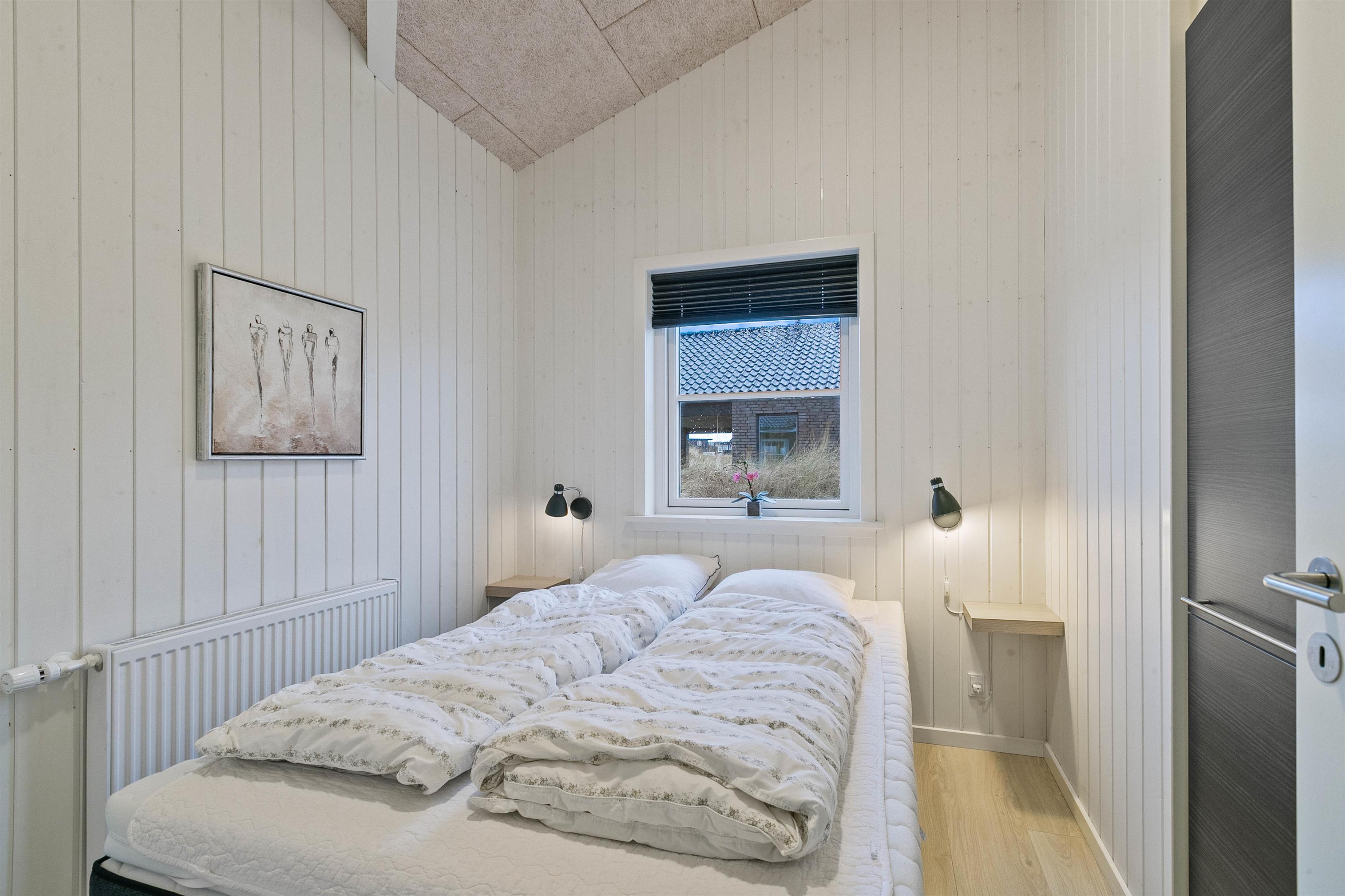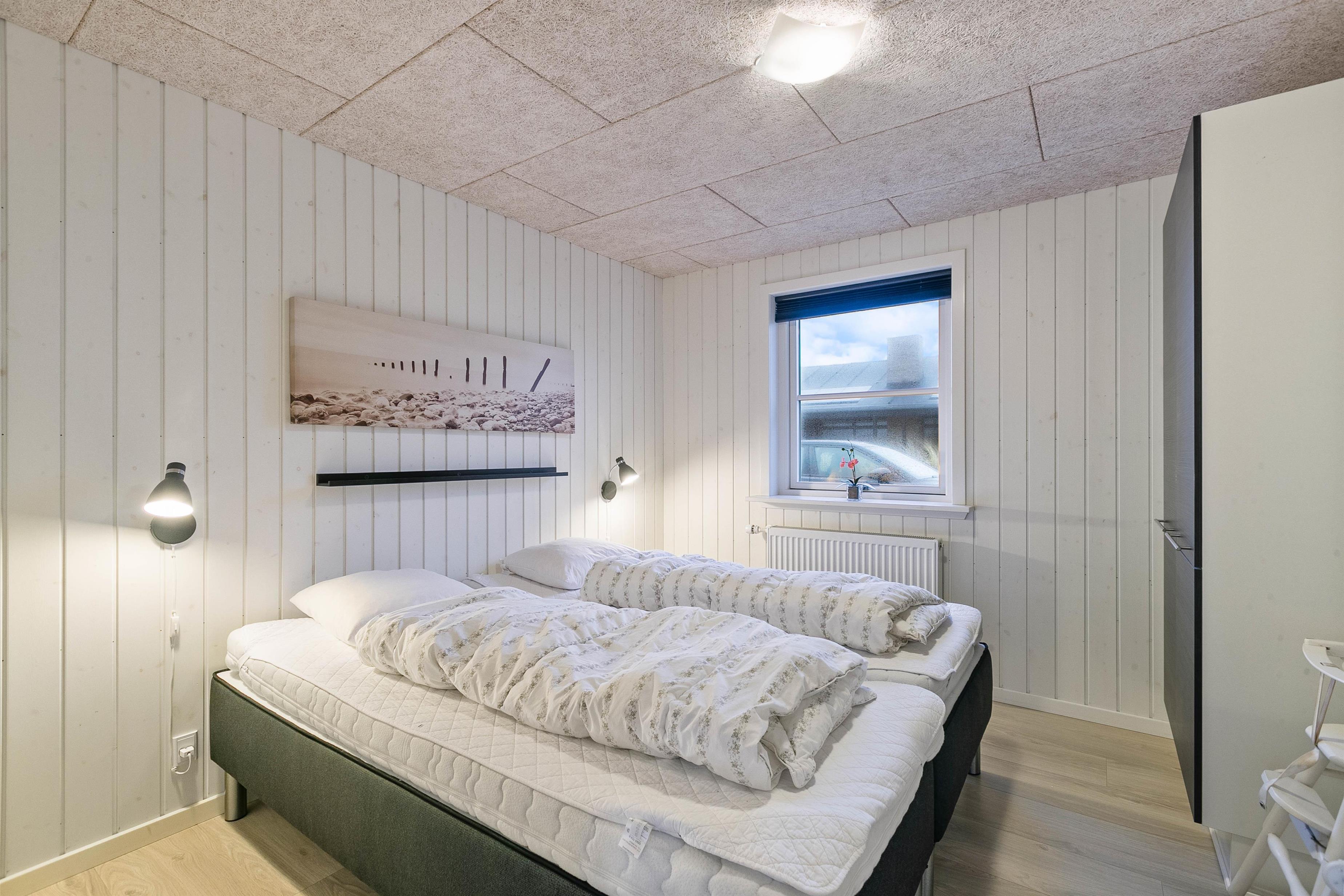 Et rigtigt lækkert sommerhus med en central beliggenhed i Søndervig, tæt på shopping og restauranter, og kun 400 m fra Vesterhavet. Der er fire soveværelser i huset. Tre af værelserne har hver en dobbeltseng, og på det sidste værelse er der en køjeseng. På det store værelse med køjesengene er der et ekstra SMART-TV med DVD-afspiller og Playstation 3 samt et skrivebord til en bærbar PC, så dette værelse er ideelt for børn og unge mennesker. Bemærk venligst, at to af husets sovepladser skal findes på hemsen.