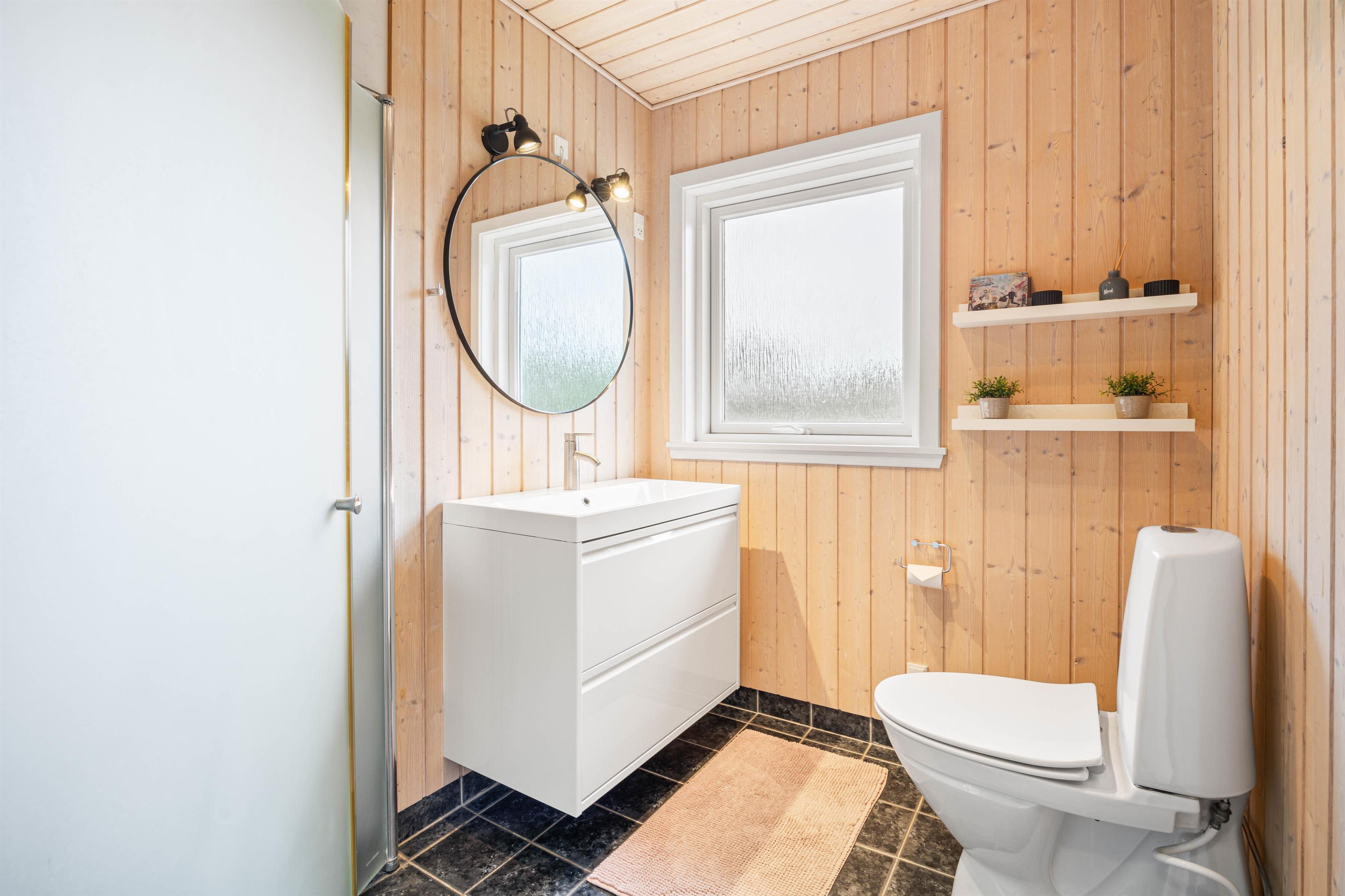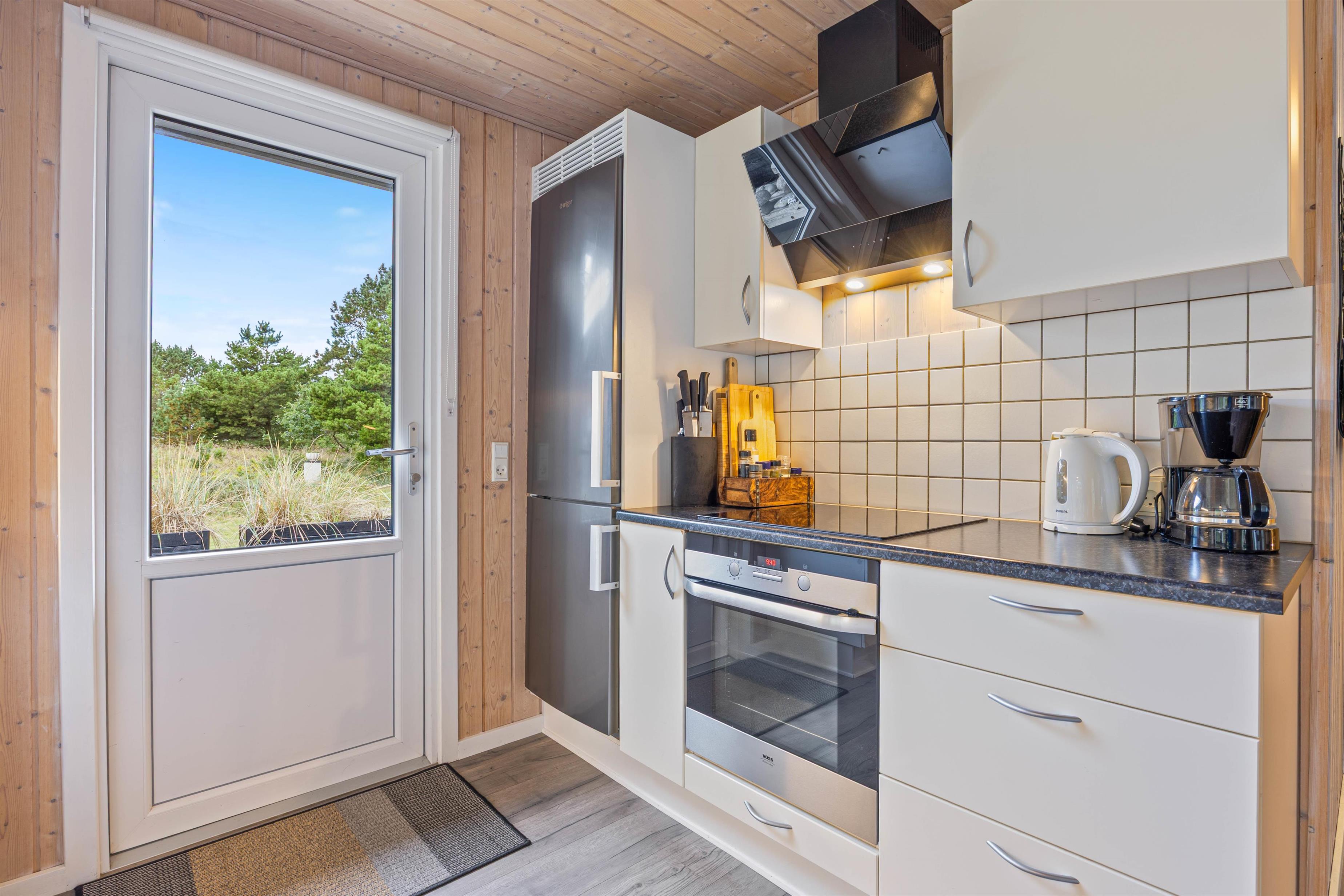 Sommerhuset er løbende blevet renoveret og sidst i 2018, hvilket sikrer moderne faciliteter i stemningsfulde rammer. Her findes der et veludstyret køkken med en opvaskemaskine og en separat fryser på 71 liter, der gør det nemt at tilberede alle jeres feriemåltider. Den rummelige stue er udstyret med en brændeovn, som skaber en hyggelig atmosfære på kølige aftener, og for varme sommerdage sikrer en luft til luft varmepumpe, at indeklimaet altid er behageligt.