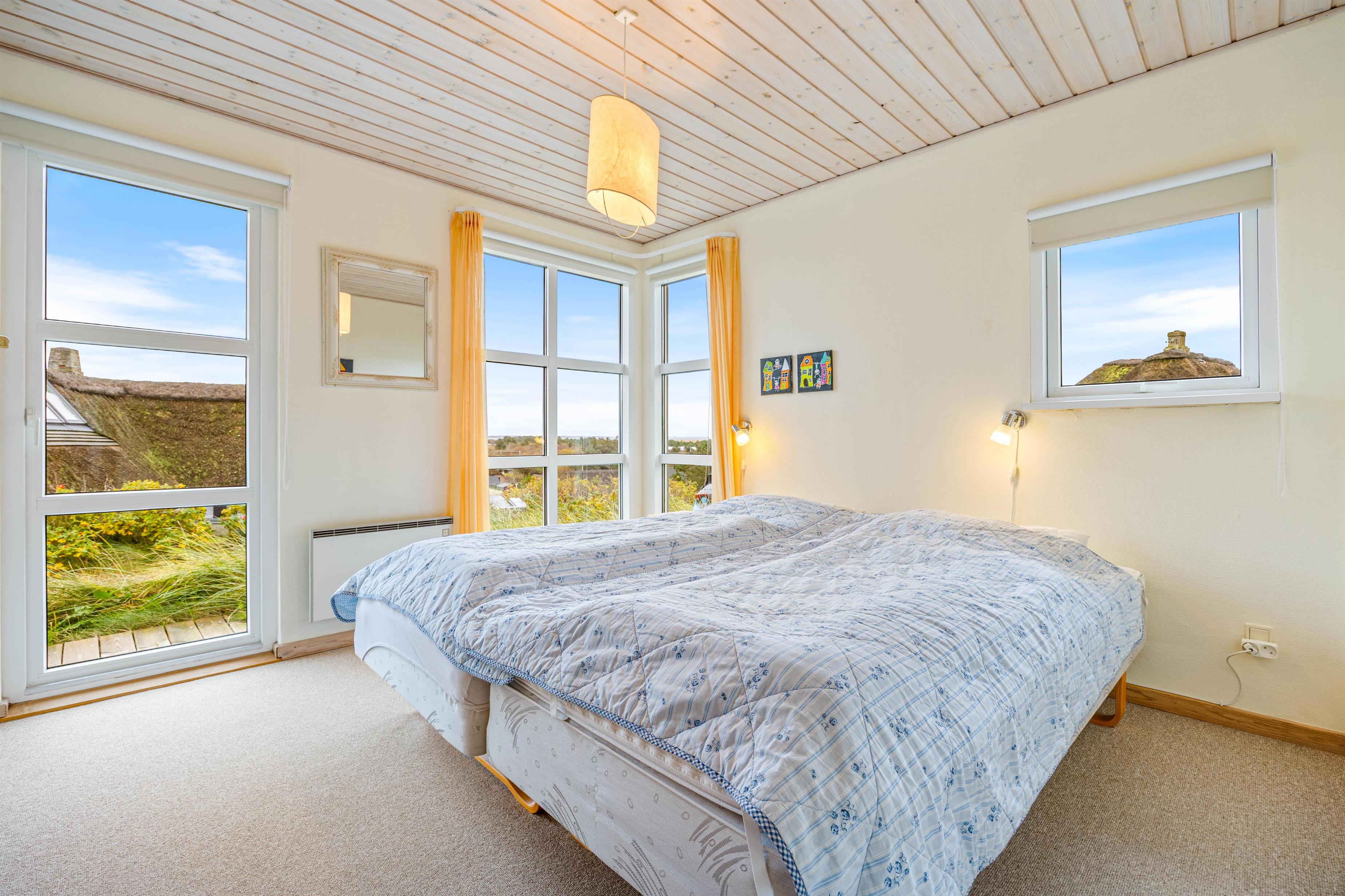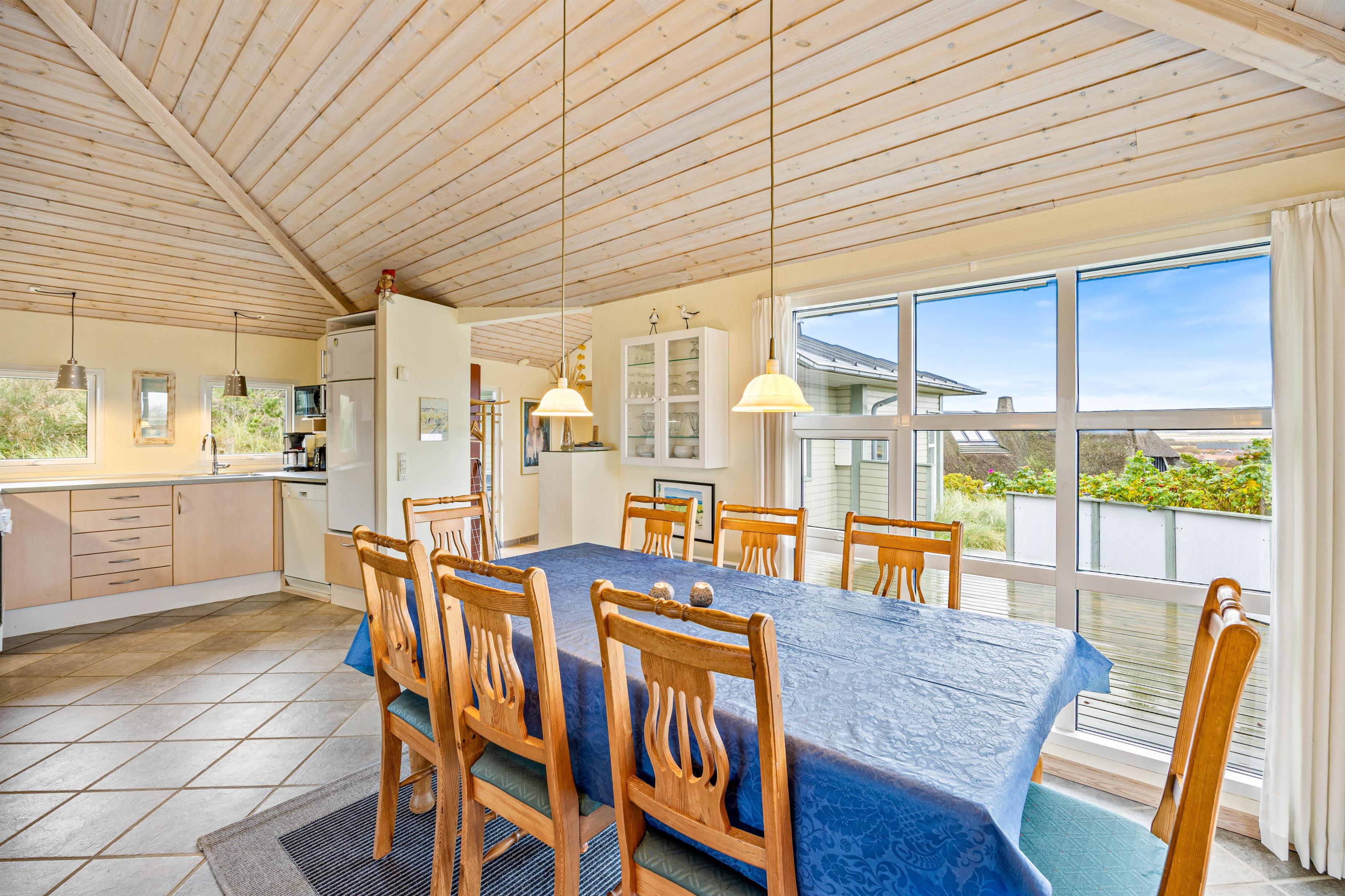 Det hyggelige feriehus på Nordsøvej 206 oser af charme, og I vil hurtigt falde til i den afslappende ferieatmosfære med lyse farver og hyggeligt interiør. Huset råder over i alt 96 kvadratmeter; et åbent køkkenalrum med stue, tre gode soveværelser og to badeværelser. På den store hjørnesofa kan I smide benene opad og slappe af, mens brændeovnen knitrer og vinden suser, og rundt om spisebordet kan hele familien samles til gode feriemiddage og hyggelige kortspil. Der er et par trin i feriehuset, så det er ikke helt plant, og huset har derfor lidt ekstra kant og charme.