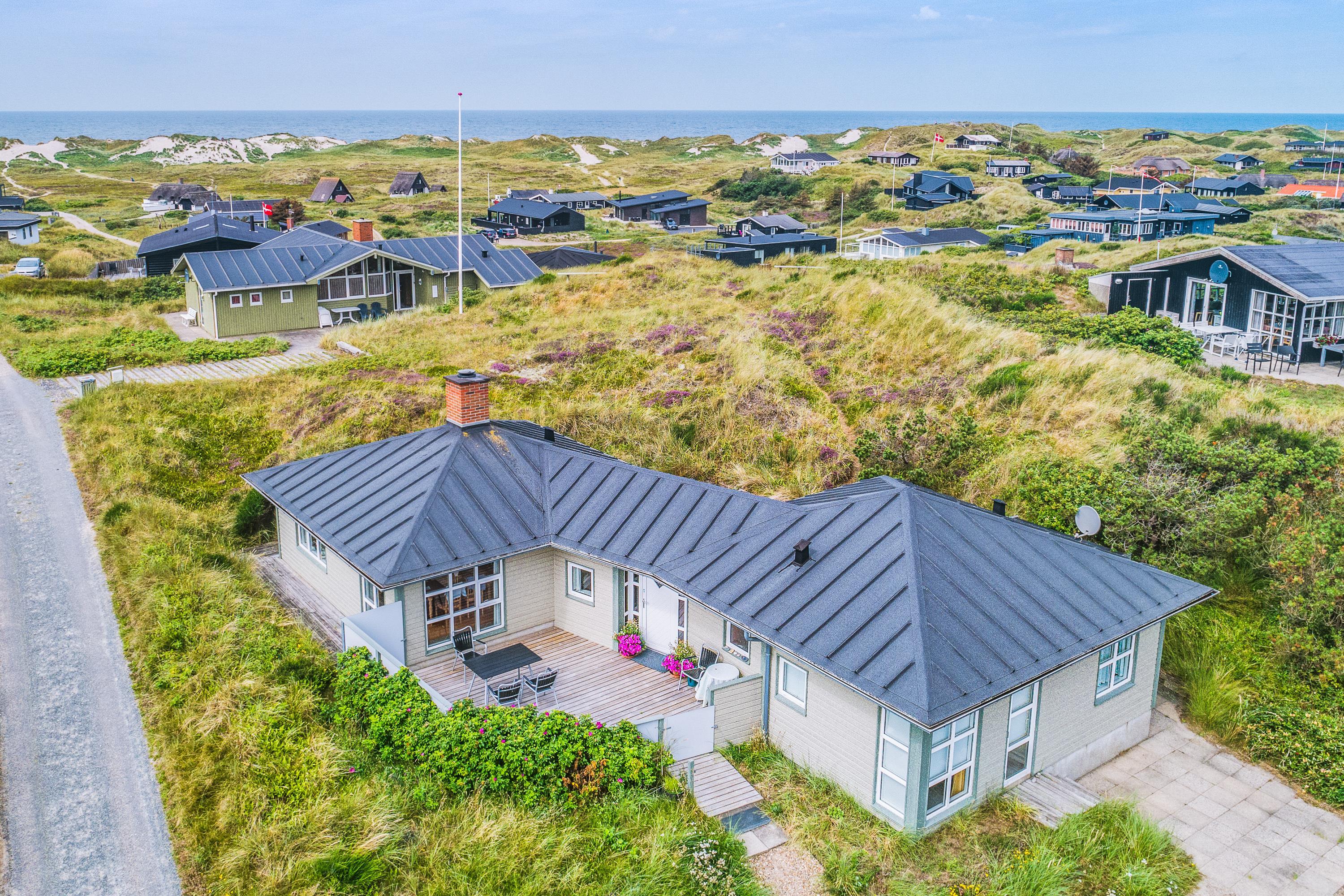 Kun 250 meter fra det brusende Vesterhav ligger dette skønne feriehus til 6 personer. Den lyse og charmerende indretning (med lækkert spabad!) vil straks byde jer velkommen, I får to gode lukkede terrasser - og den flotteste udsigt til både havet og fjorden. Dette sommerhus en unik kombination af komfort, bekvemmelighed og naturskønhed og kan rumme op til seks personer.