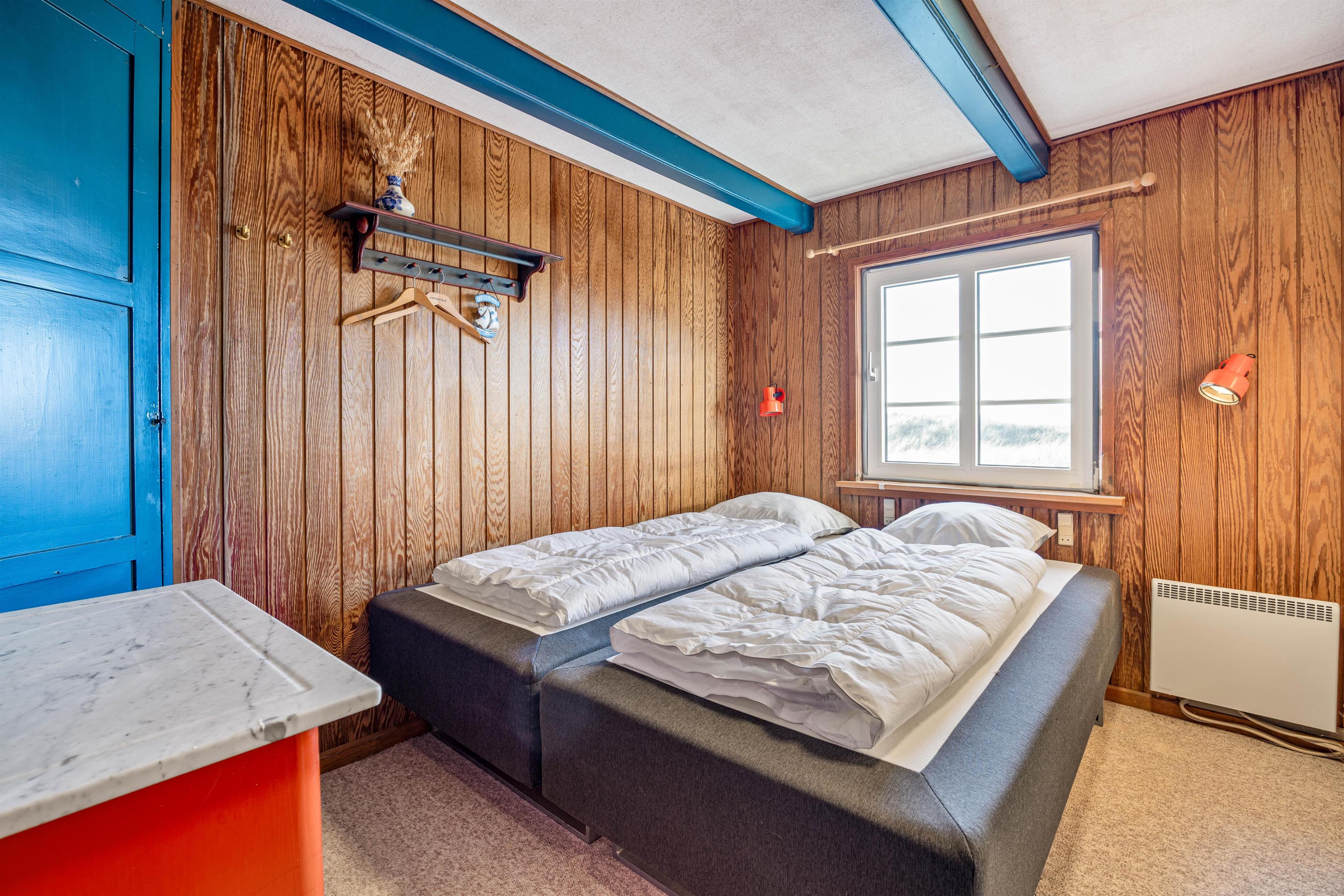De 73 kvadratmeter blev opført i 1936, og er indrettet med 2 soveværelser med enkeltsenge. I det ældre, men funkionelle køkken kan I nyde den fantastiske udsigt ud over klitterne, imens I sidder og nyder et godt måltid mad. Til jeres madlavning er der en bordovn til rådighed, og derefter kan opvaskemaskinen klare opvasken for jer.