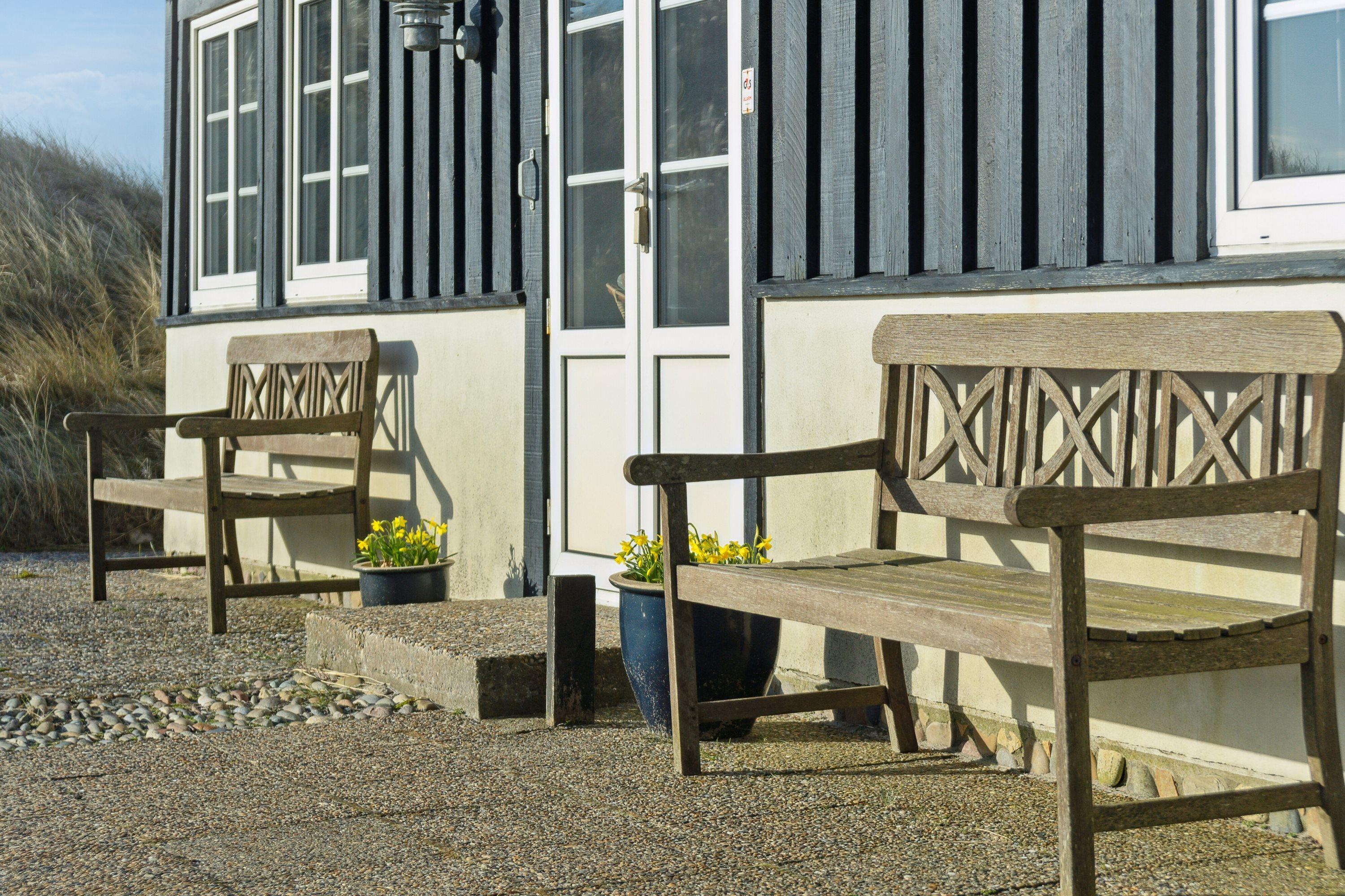 Den afskærmede terrasse med udsigt over badebyen Søndervig er perfekt til at nyde eftermiddagskaffen på. På den vestvendte terrasse er der en fantastisk panoramaudsigt over klitterne. Her kan I også se lidt af det brusende Vesterhav, imens I nyder et lækker måltid mad, der er tilberedt over gasgrillen.