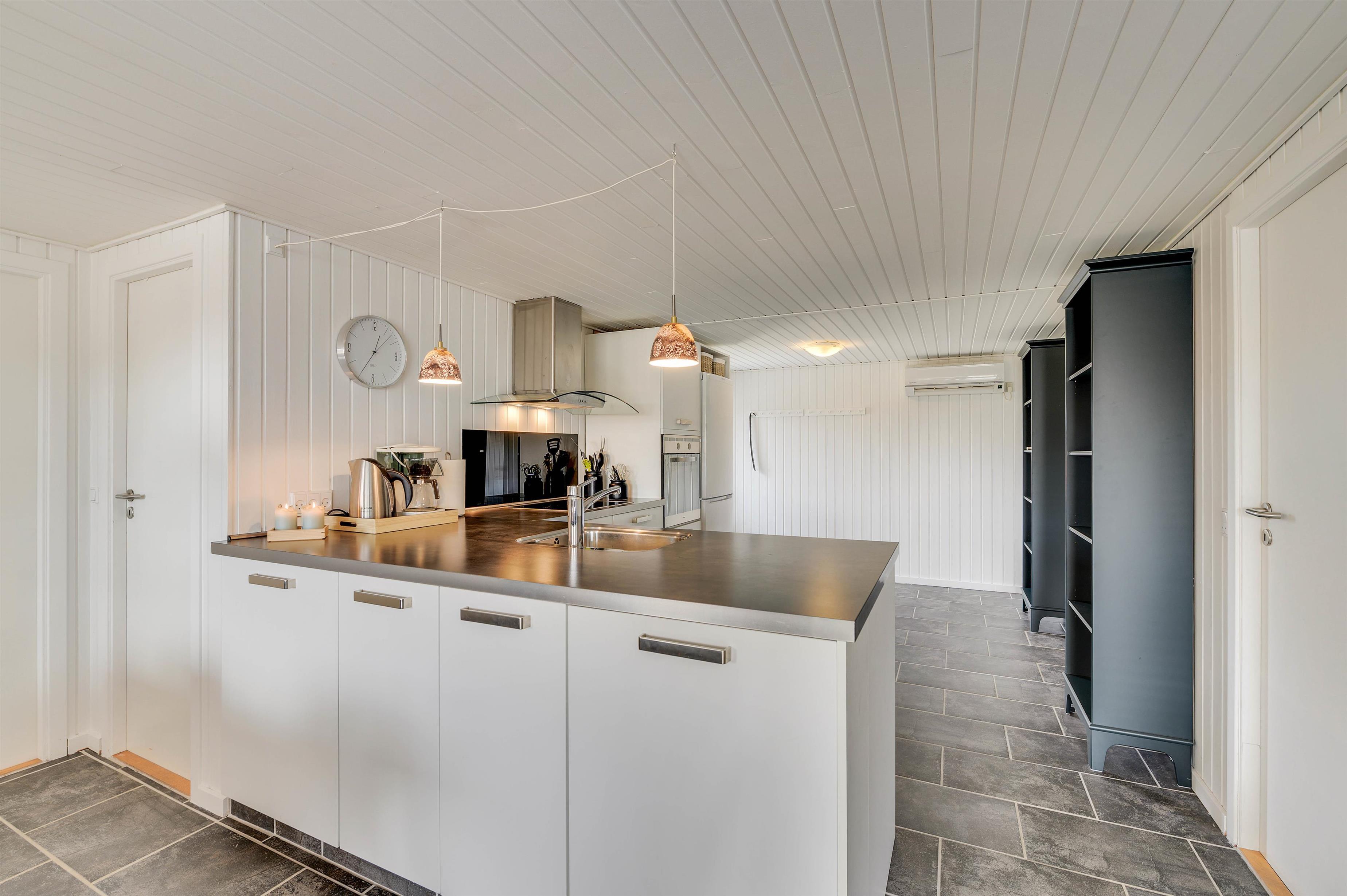 Indretningen rummer desuden gode praktiske faciliteter i form af opvaskemaskine i køkkenet, vaskemaskine og tørretumbler samt en hurtig og stabil internetforbindelse. Her er der tænkt på alt, hvad I har brug for på en afslappende sommerhusferie.