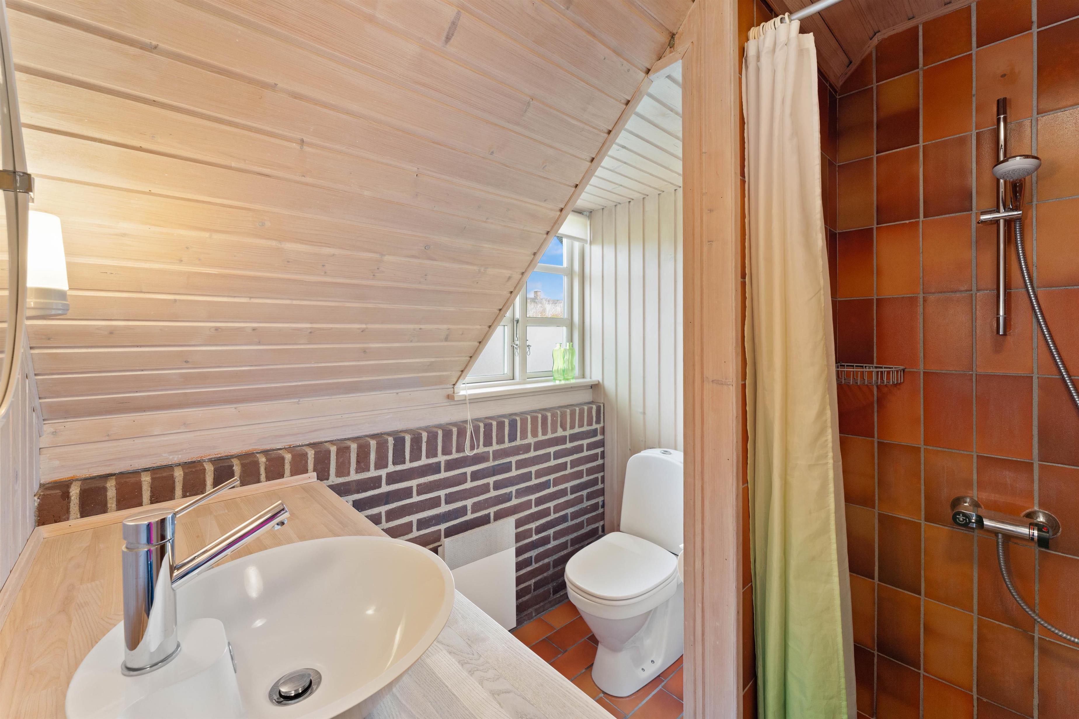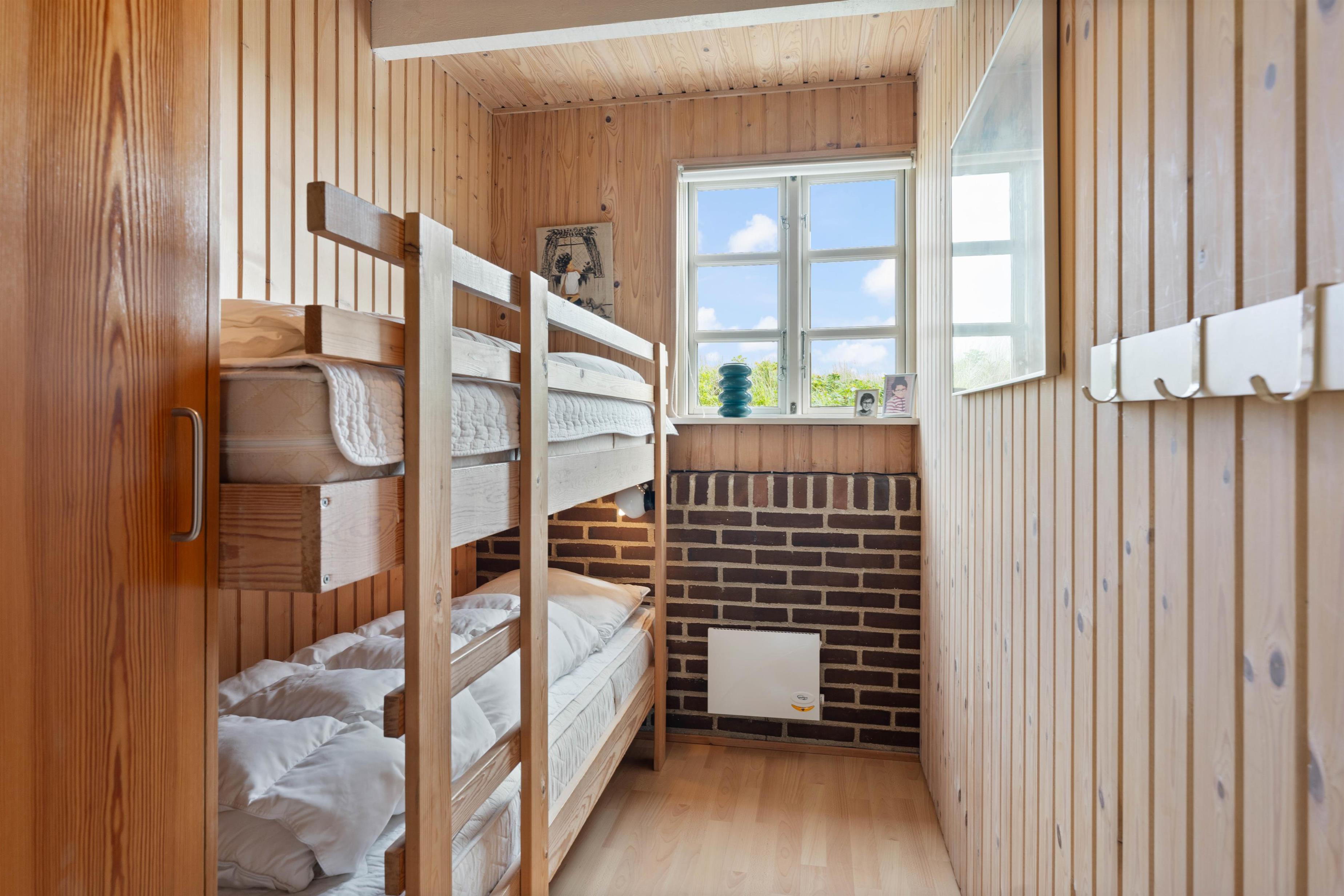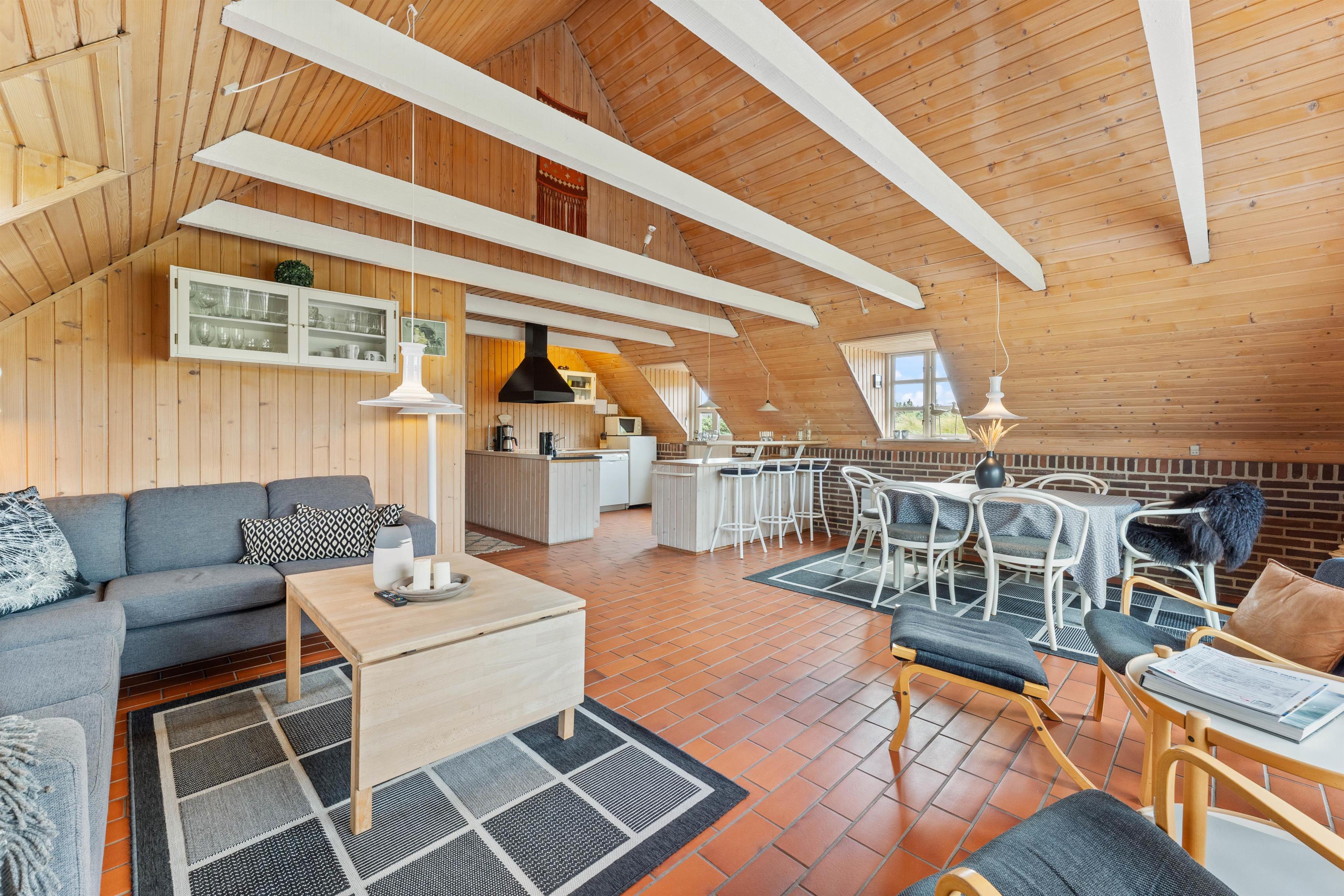 De træbeklædte vægge og lofter, der går til kip, skaber en hyggelig atmosfære i indretningen. Samtidig giver de synlige loftsbjælker en følelse af rum og plads omkring jer. Feriehuset er yderligere udstyret med blandt andet fladskærms-TV og opvaskemaskine, så I slipper for at tage opvasken, og I i stedet kan nyde en god film eller serie på husets fladskærm.