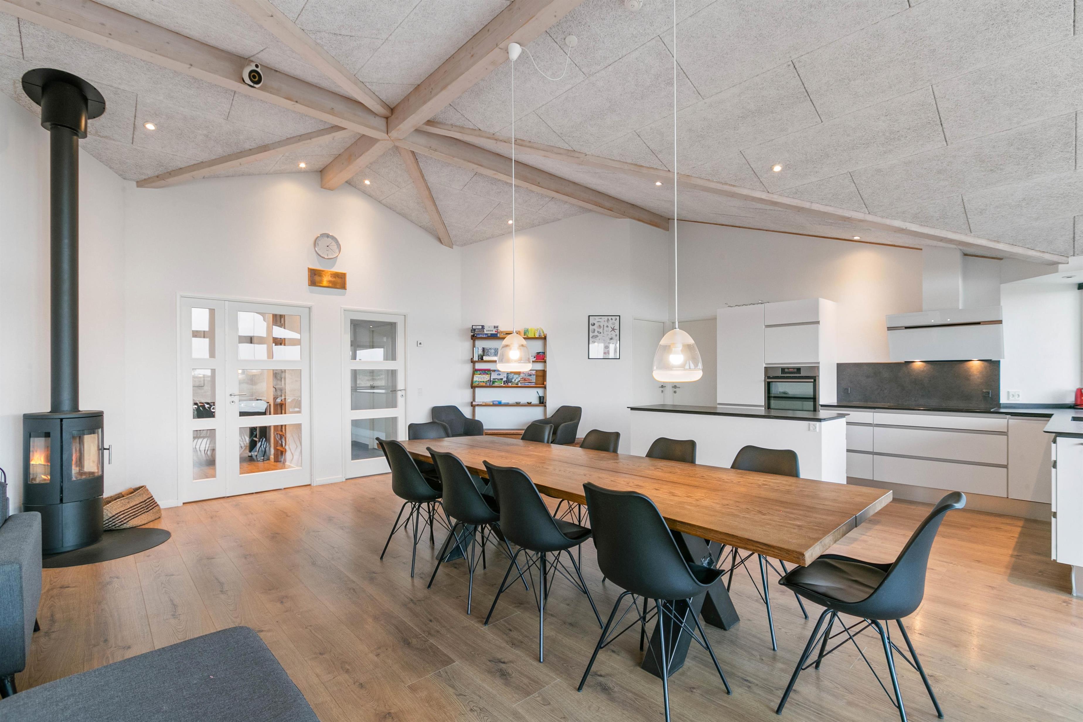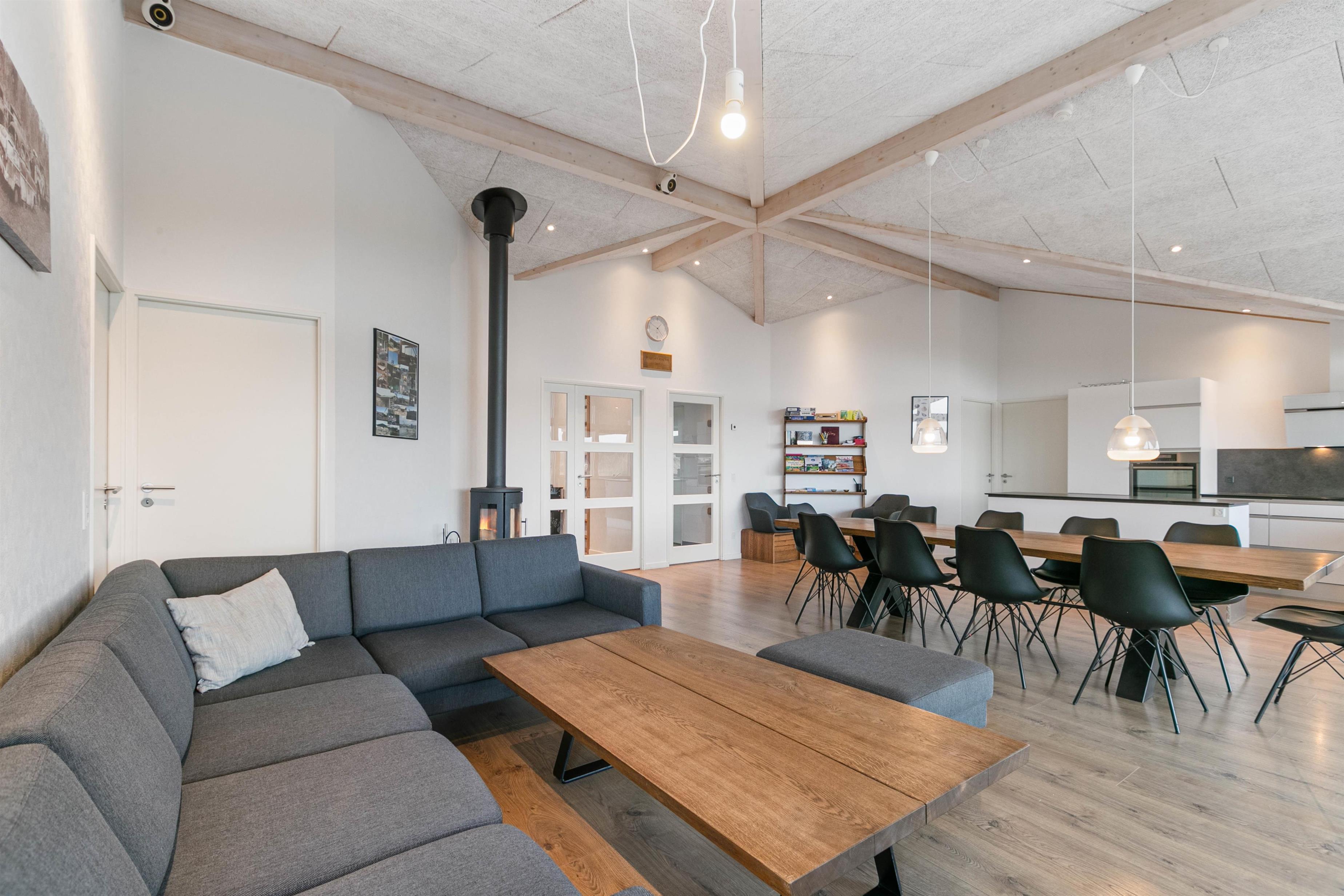 For totale afslapningsmuligheder kan I nyde den indbyggede sauna samt et tømmespa, som er perfekt til at løsne op for spændinger efter en dag med aktiviteter. Om aftenen kan I samles omkring brændeovnen og nyde varmen og hyggen.