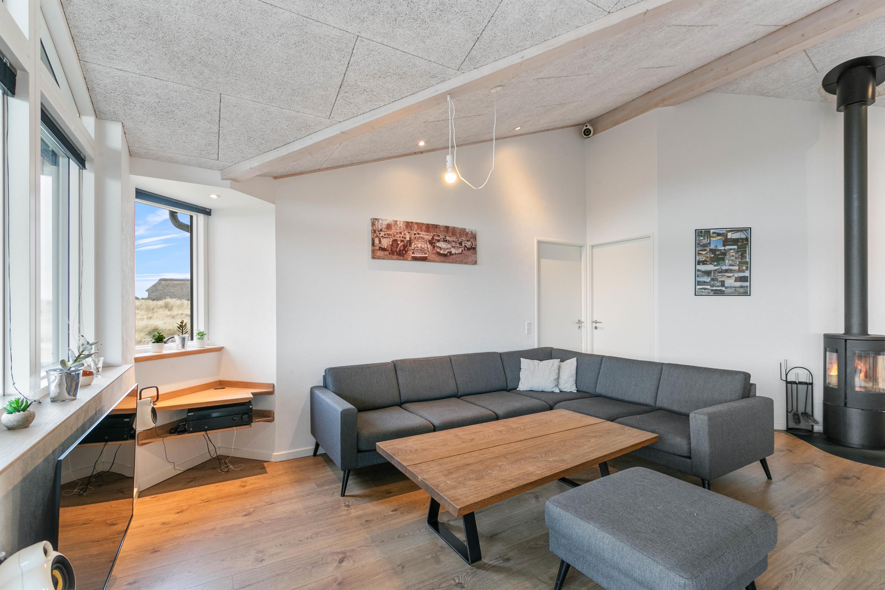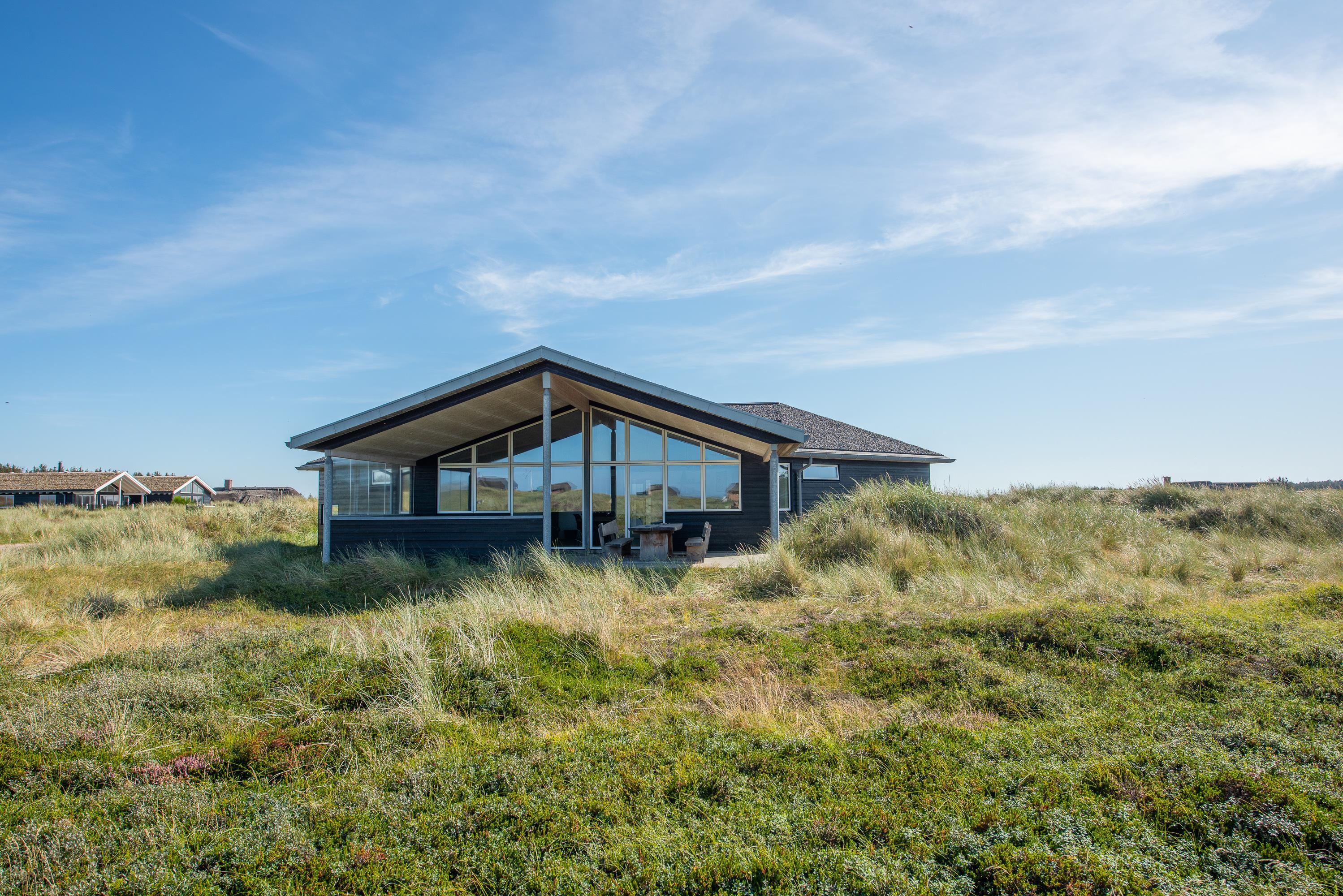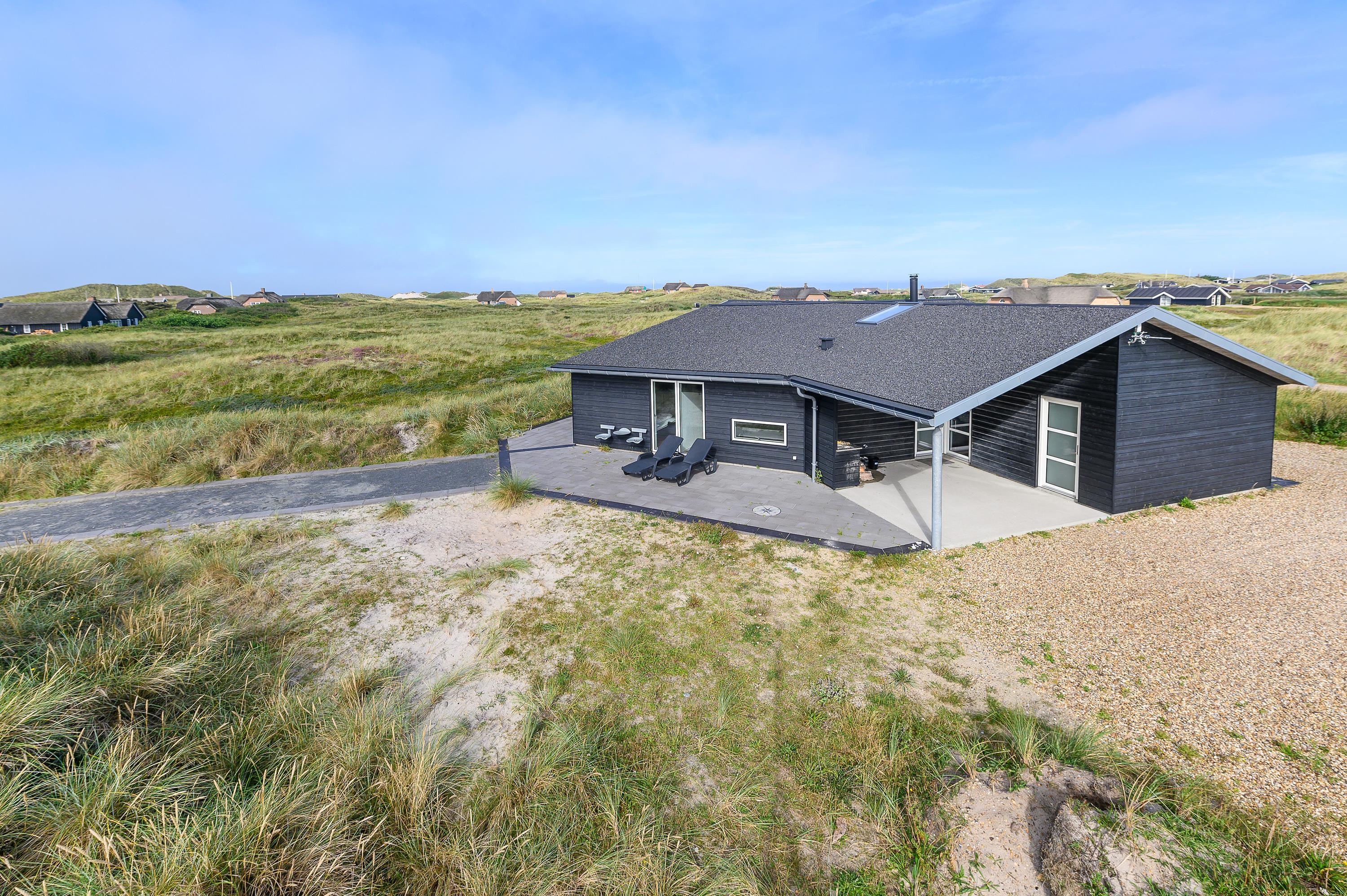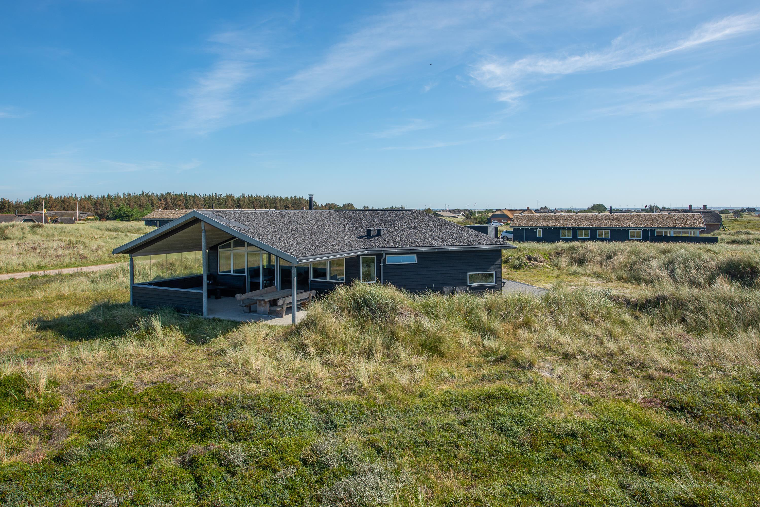 Dette rummelige feriehus ligger på en skøn 4000 m2 stor klitgrund bare 500 m fra stranden og Vesterhavet. Feriehuset byder på god plads til op til 8 personer, der her kan forkæle sig selv og hinanden med aktivitetsrum, spa, sauna samt en flot udsigt over det smukke klitlandskab mod sydvest. Huset er opført i gode materialer og det indeholder alle moderne bekvemmeligheder, man kan ønske sig - samt selvfølgelig den knitrende brændeovn, der sørger for den helt rigtige feriestemning.
