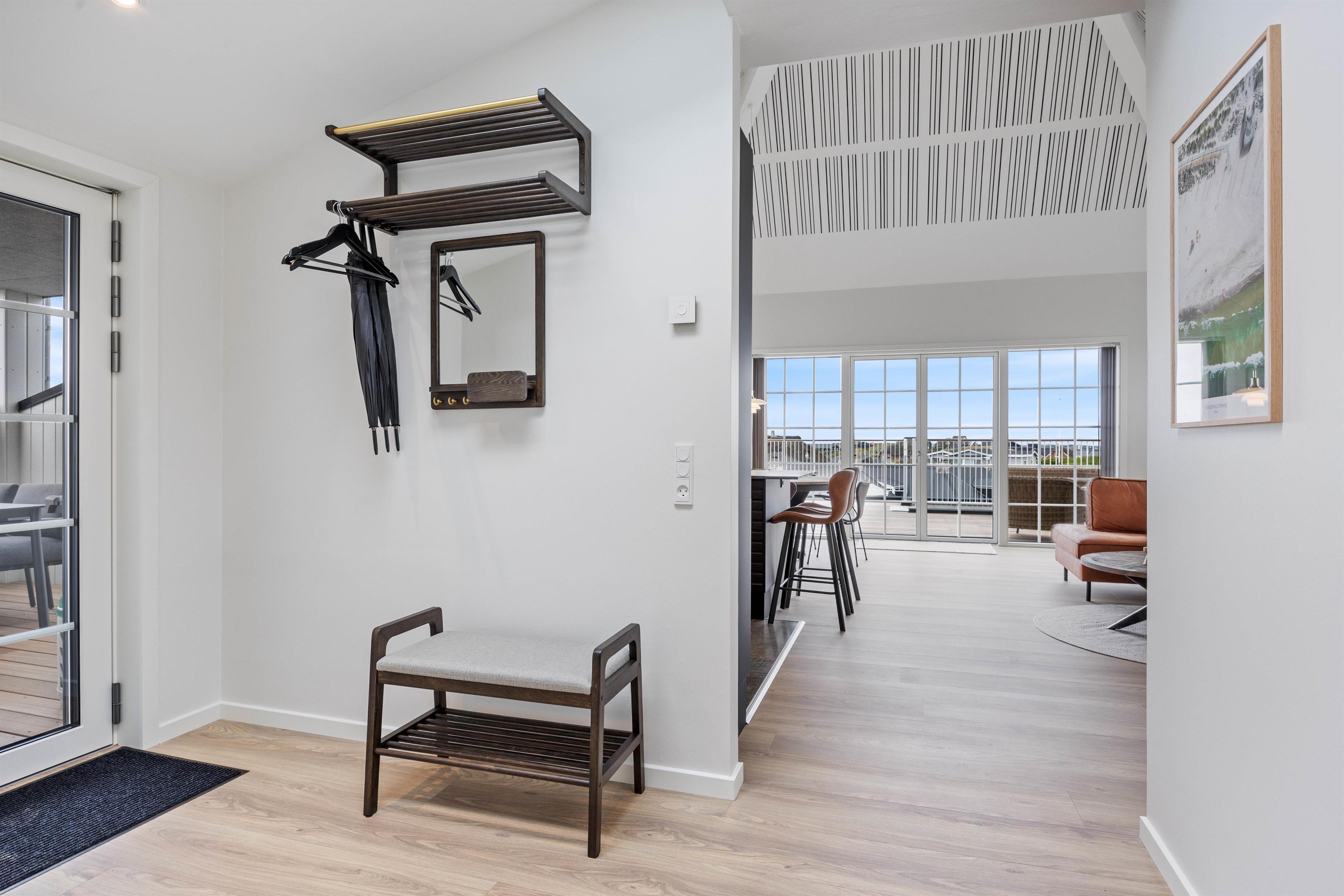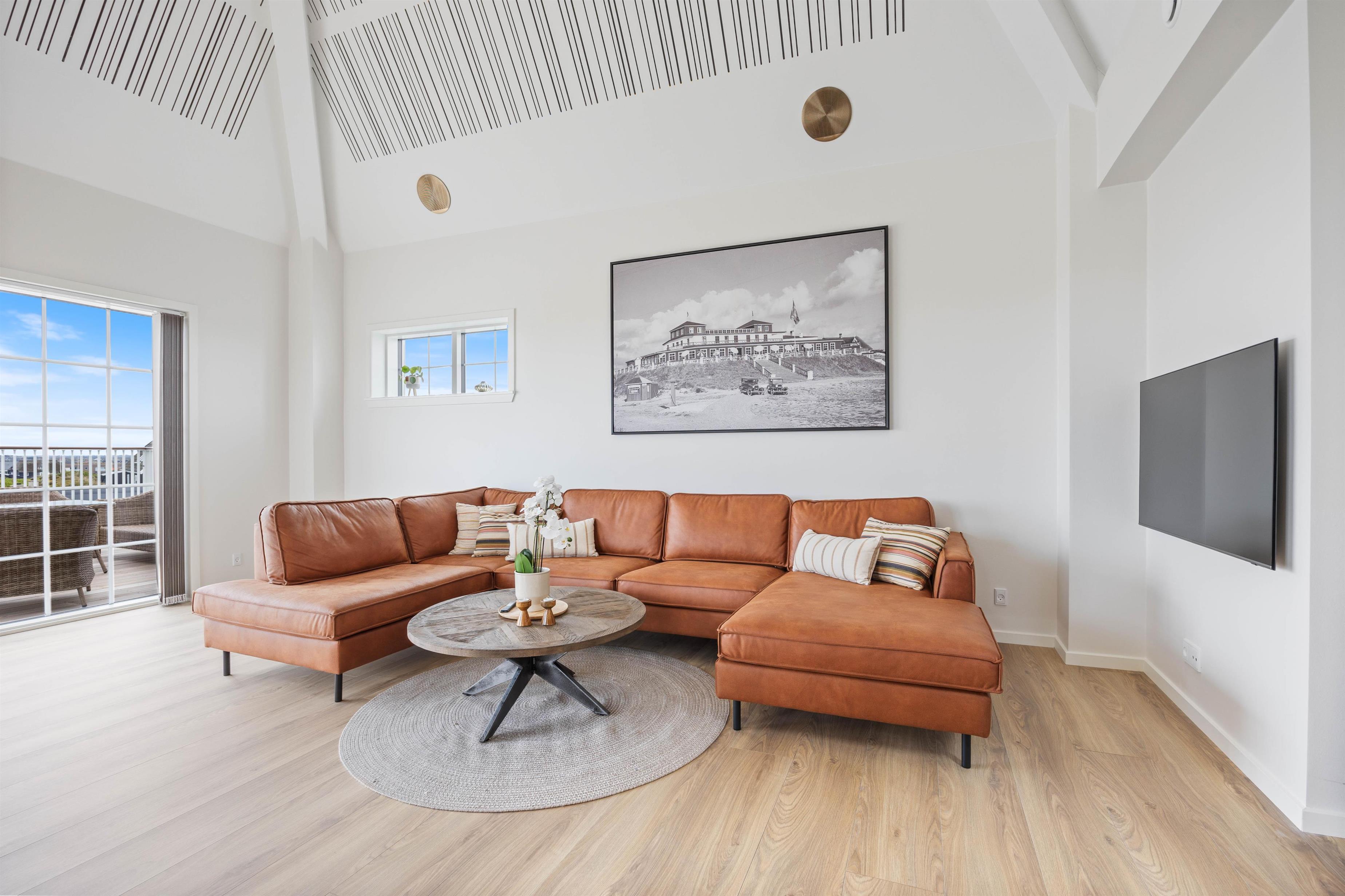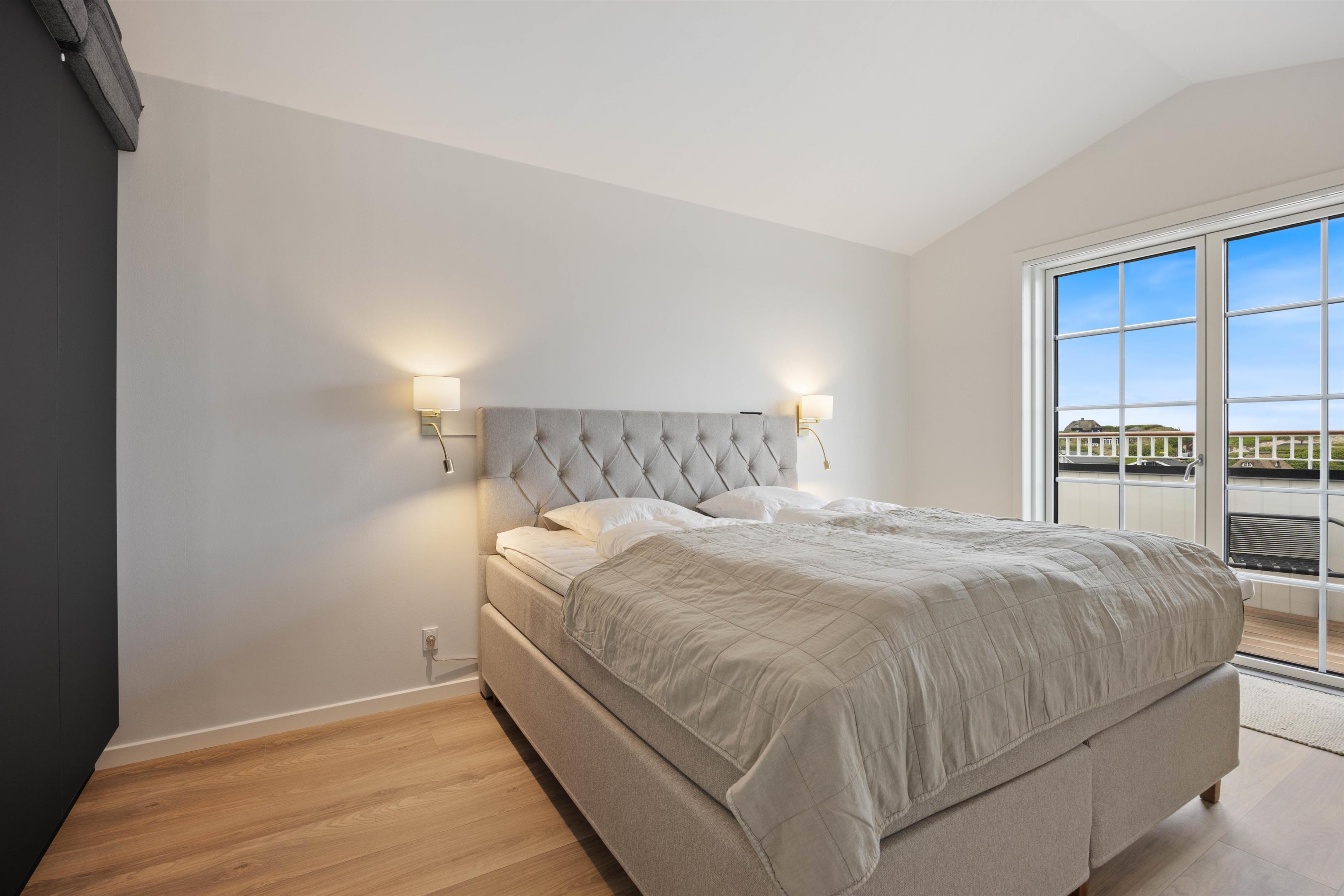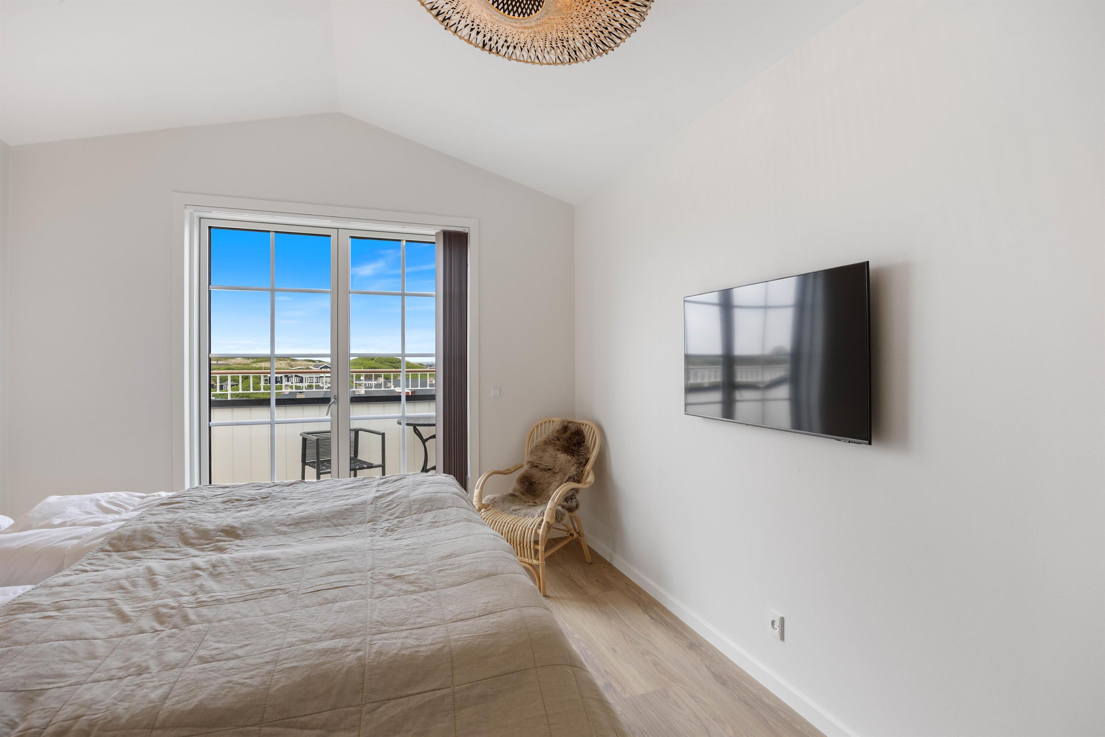 På den afskærmede tagterrasse på 212 m2 kan I hygge jer, selv når vejret ikke viser sig fra sin bedste side. Om I vil nyde et måltid mad, solbade eller tage et spil kort, så kan denne tagterrasse garantere jer de mest fantastiske rammer. Uanset vind og vejr, kan I finde et skønt sted at sidde og samles udendørs, mens I har den mest fantastiske udsigt ud over Vesterhavet og klitlandskabet. I kan bogstaveligt talt smage saltet fra Nordsøen, så tæt er I på vandet. Fra ferielejligheden kan I se både Vesterhavet, Søndervig by samt Ringkøbing Fjord med alle kitesurferne.