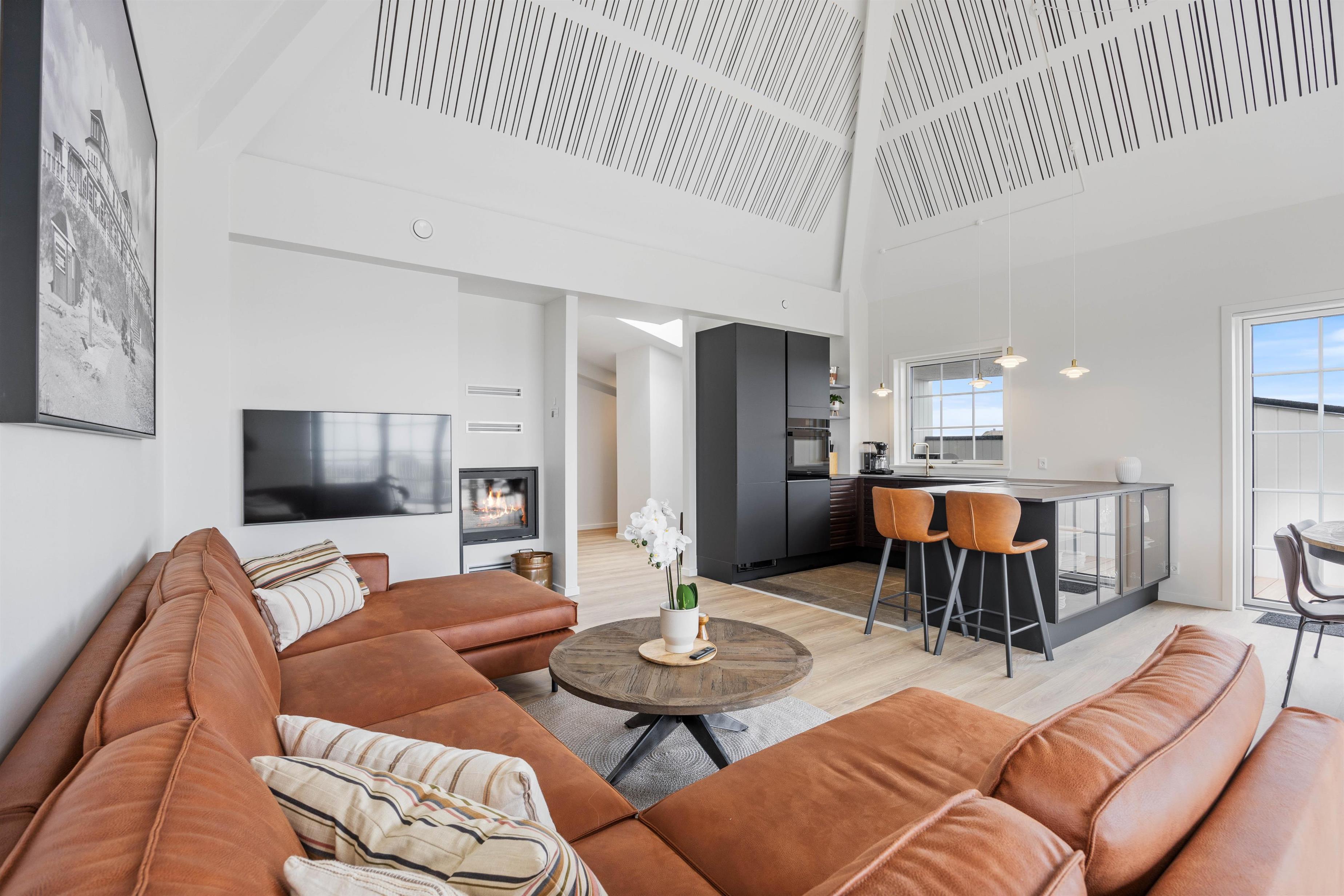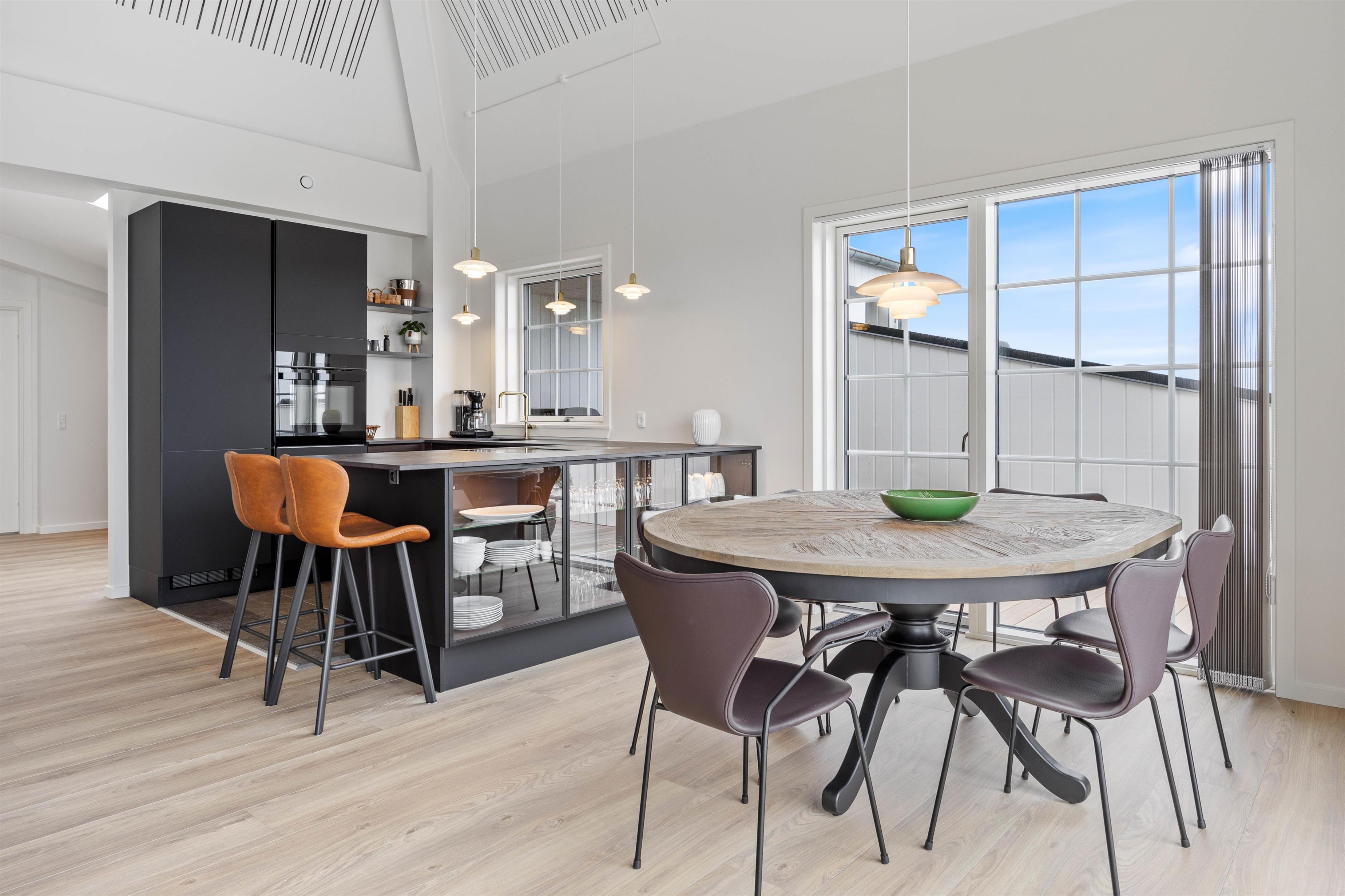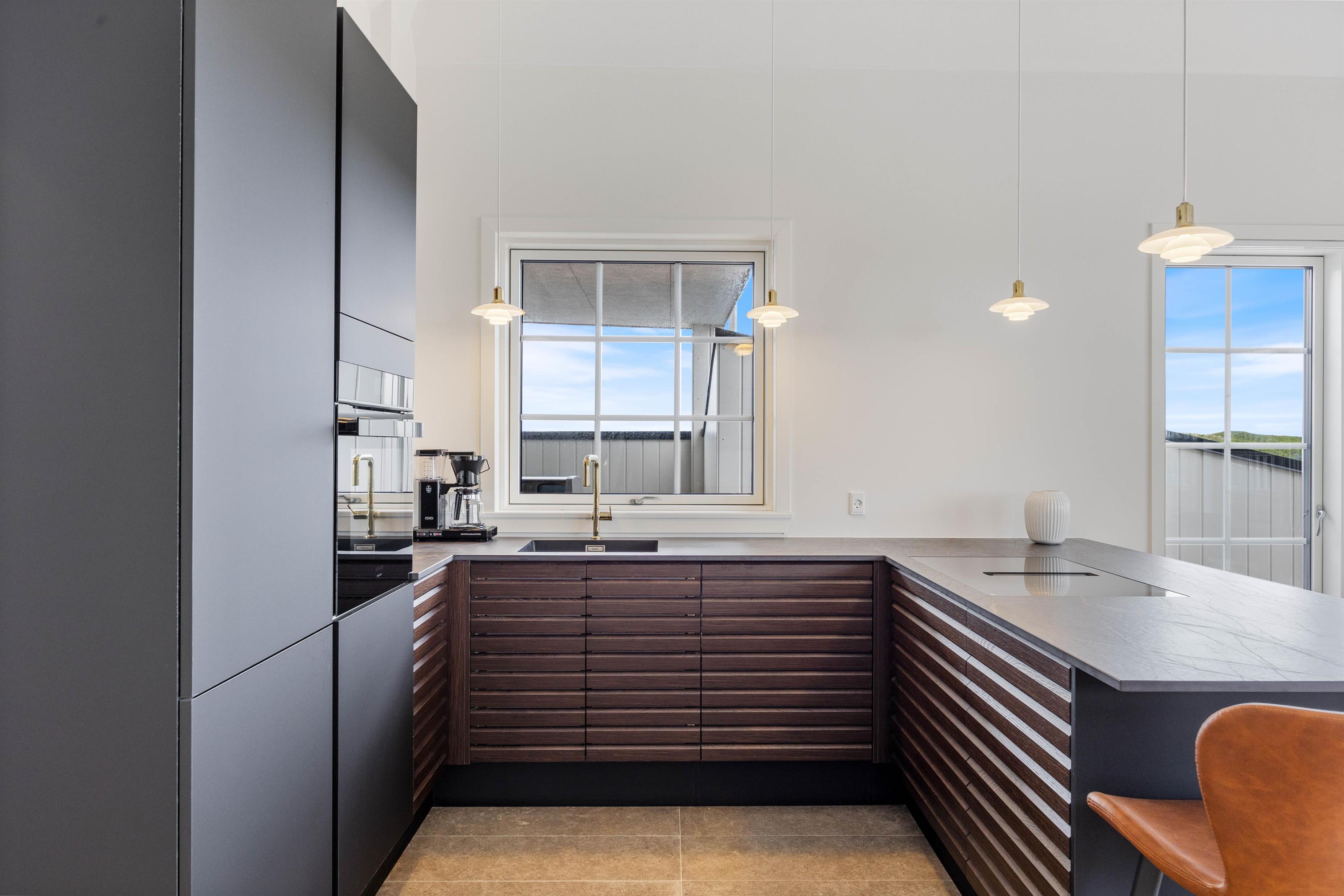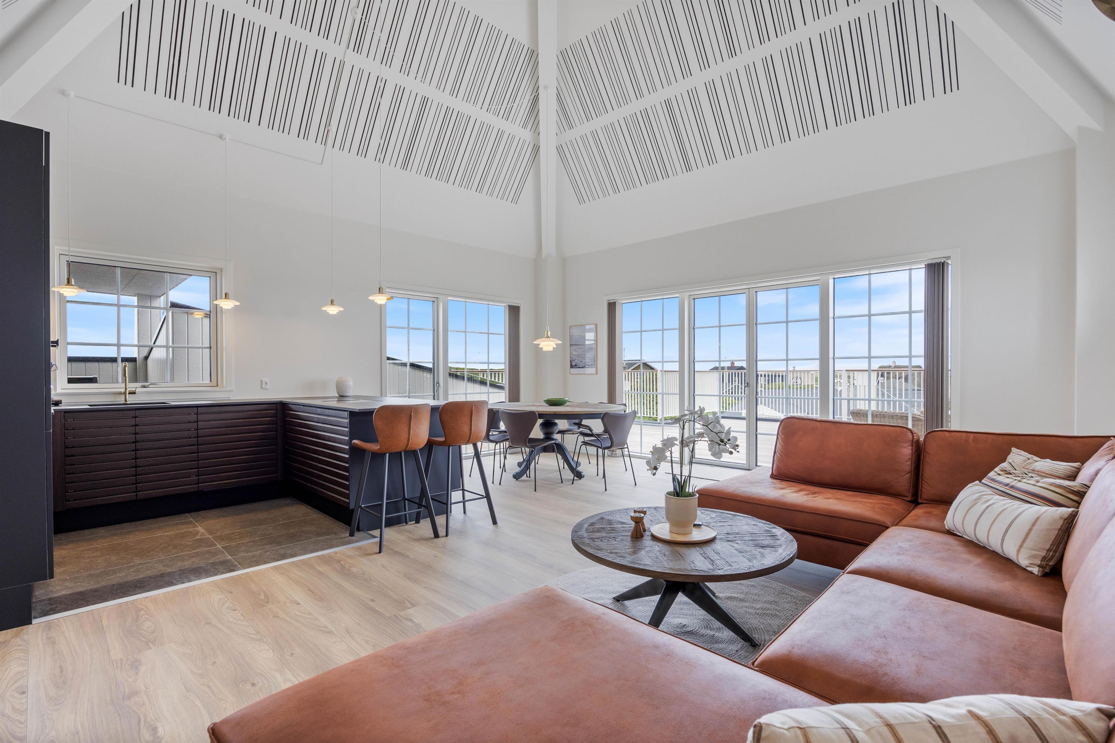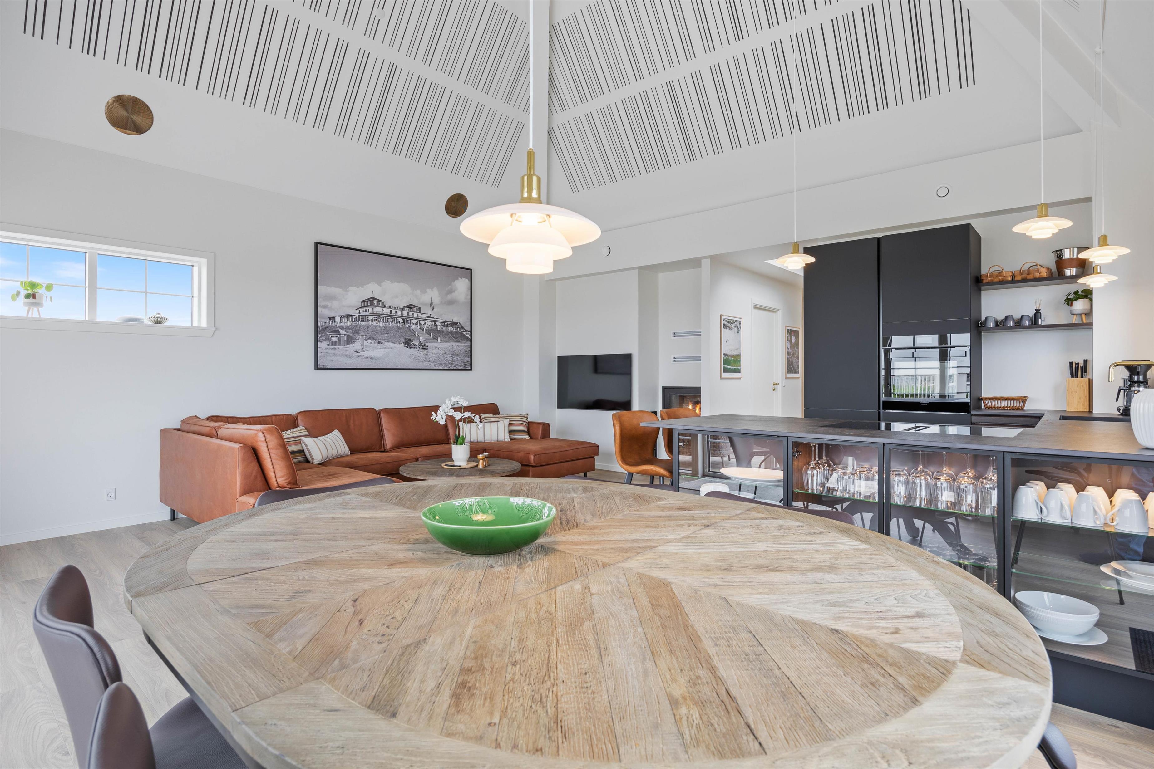 Denne moderne og elegante ferielejlighed venter på jer i hjertet af Søndervig. I det åbne, veludstyrede køkken bliver madlavningen let som en leg og smager ekstra godt, når den nydes ved den skønne spiseplads, hvorfra I også kan nyde udsigten til havet og klitterne.