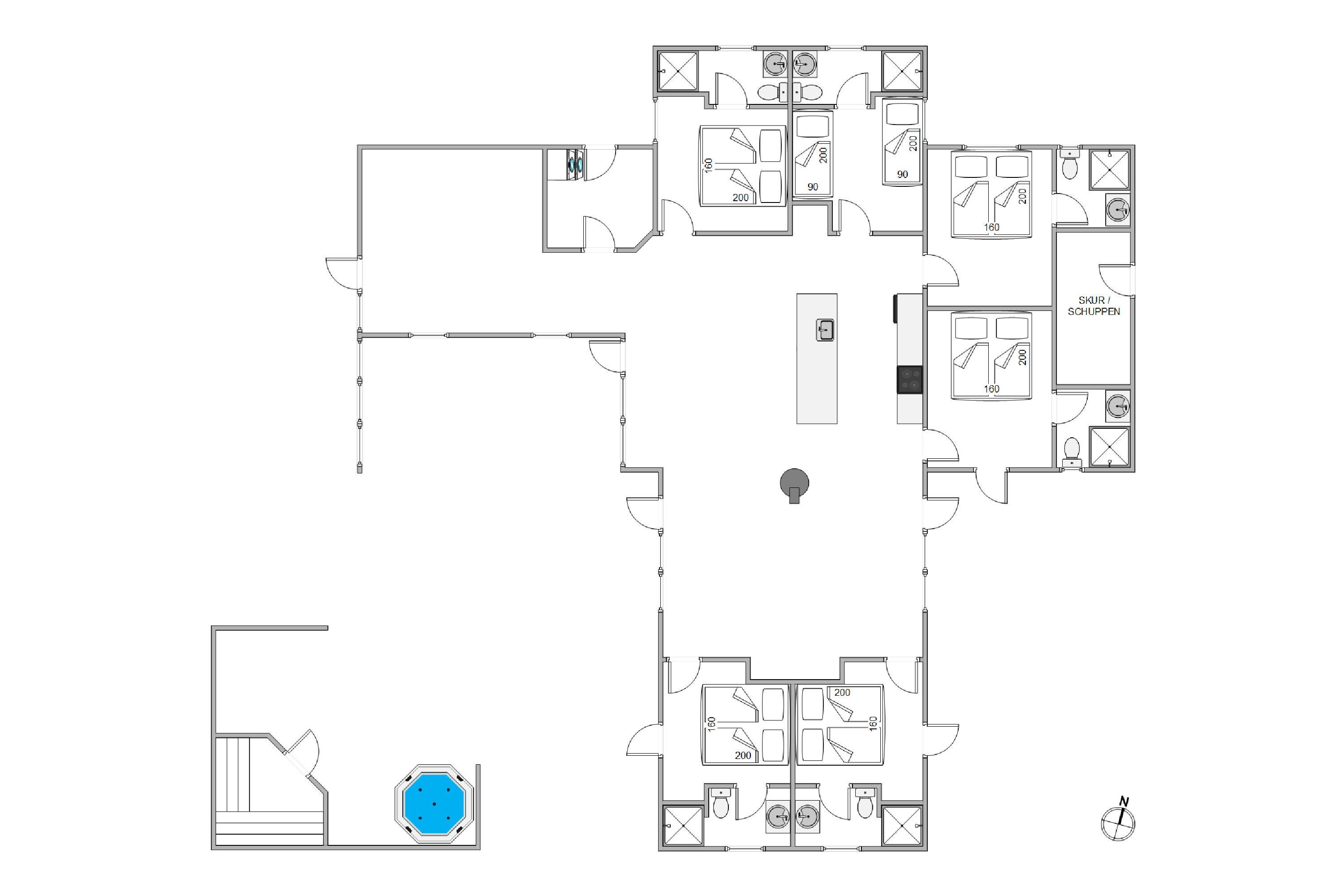 De mange praktiske faciliteter og den gode planløsning i dette sommerhus på Harbo Stages Vej 17 er med til at sikre, at I med garanti vil føle jer hjemme og få en dejlig ferie. Sommerhuset kan huse op til 12 gæster, der kan fordele sig på 6 dejlige værelser. Som noget helt særligt, har alle værelser deres eget private badeværelse, hvilket sikrer et højt komfortniveau.
