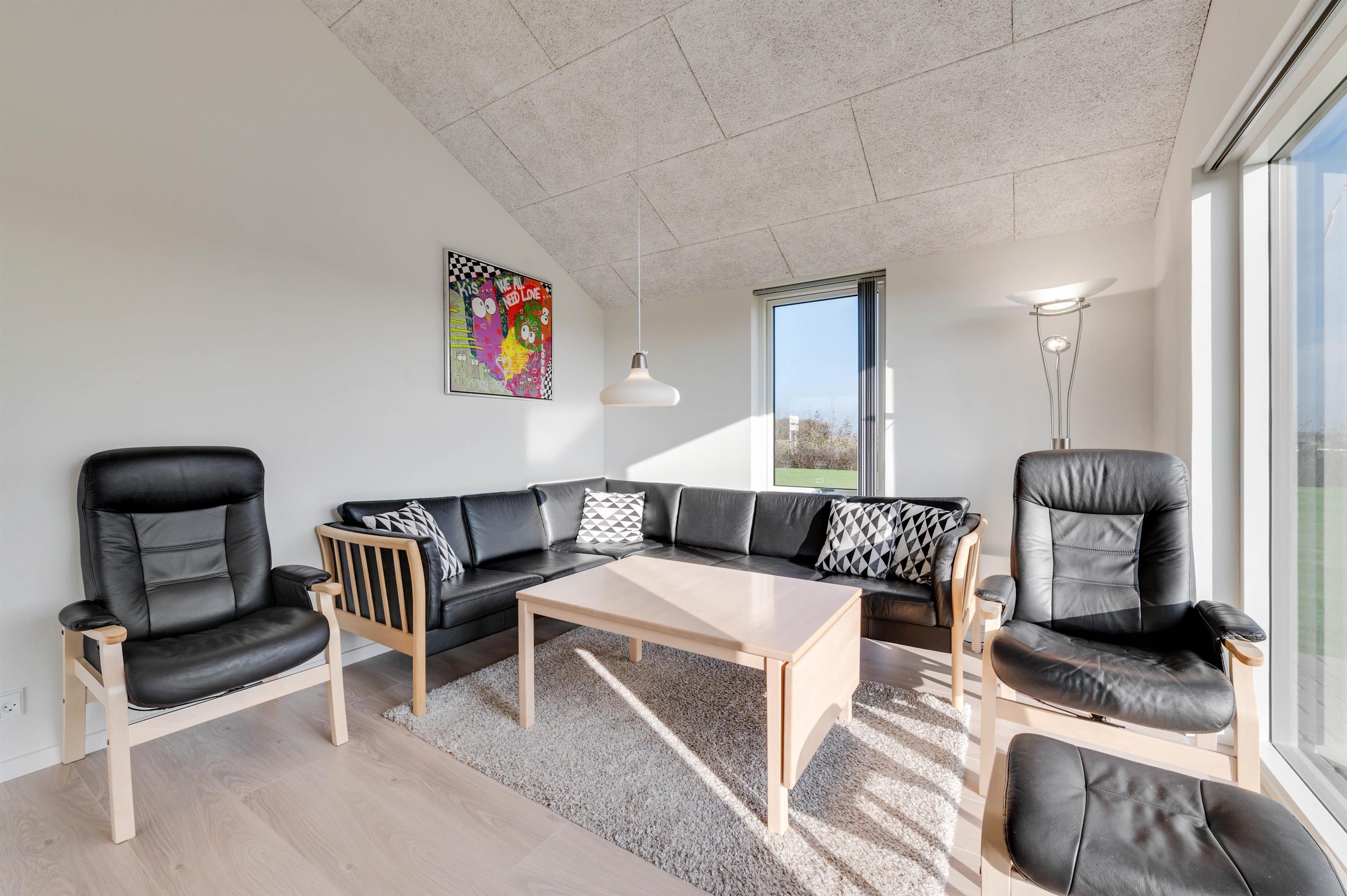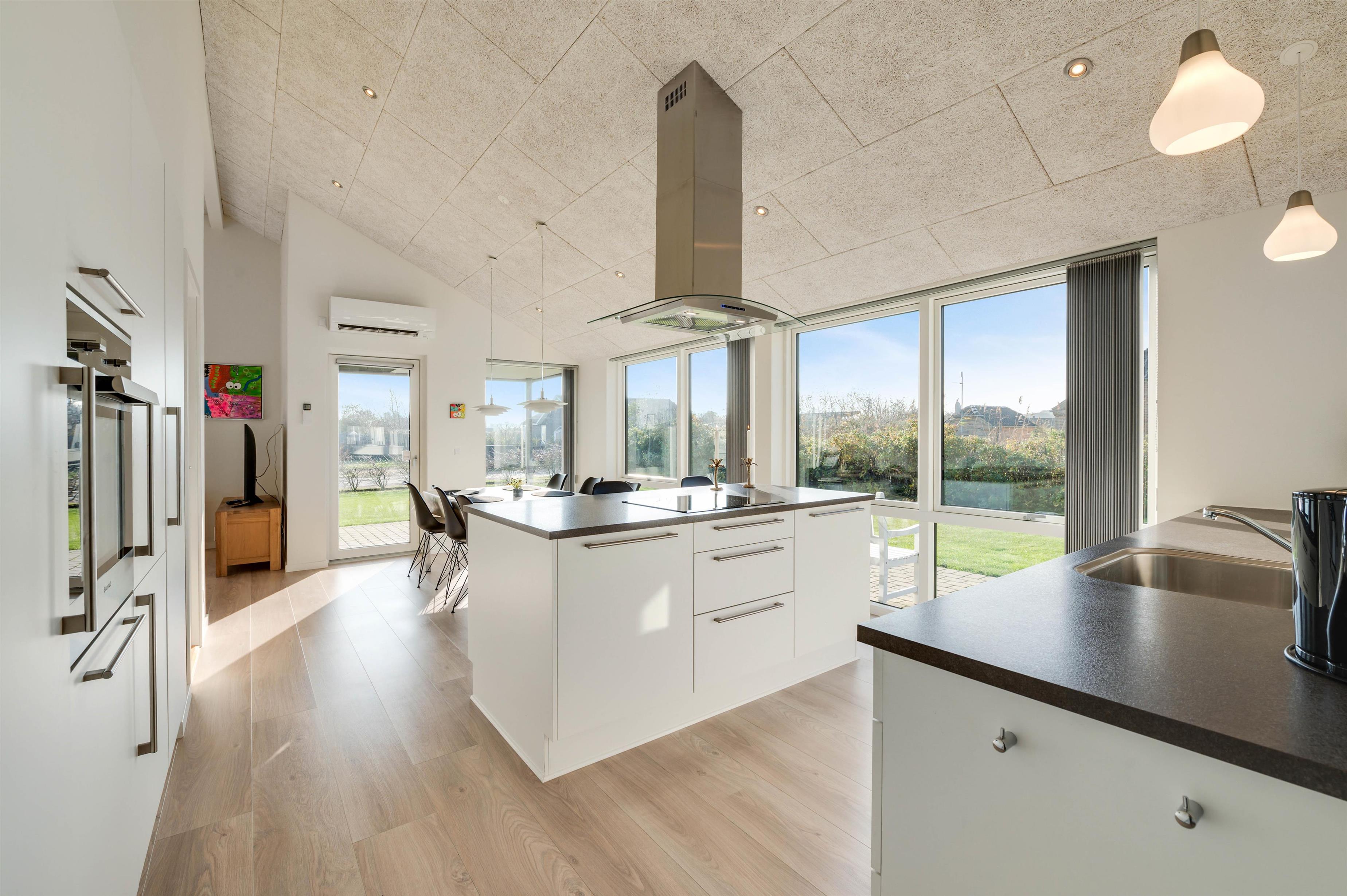 Hjerterummet i ferieboligen er den åbne og lyse stue med integreret køkken. De store vinduespartier tillader en masse lys at strømme ind i boligen og allerede fra morgenstunden af, kan I nyde solens stråler gennem vinduerne.
