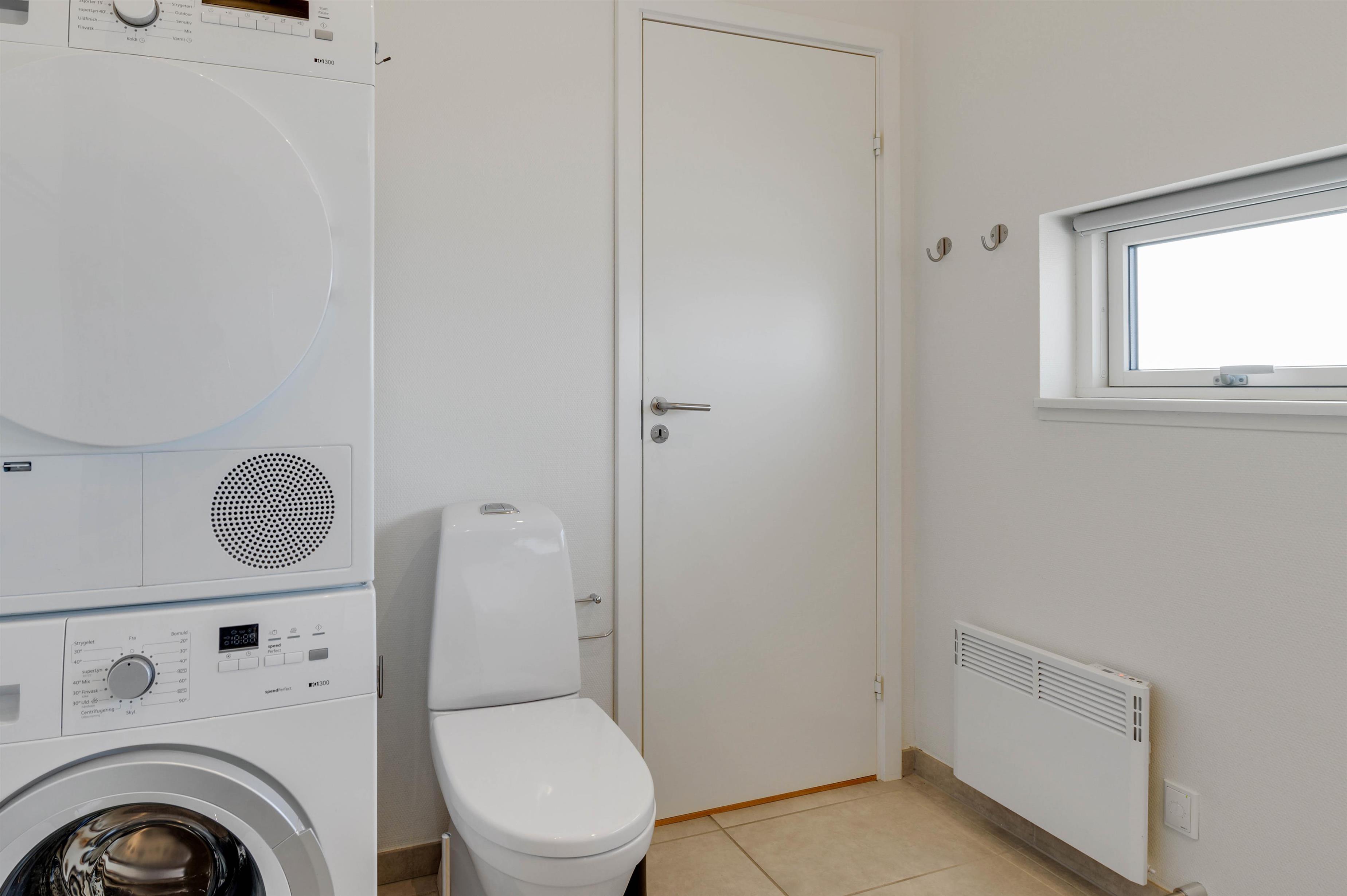 Om aftenen indbyder spisebordet til hygge og kogeøen til fælles madlavning, imens I lytter til tonerne fra Bluetooth højtaleren, som også er at finde i feriehuset. I behøver ikke spekulere på, hvem der tager opvasken - det klarer opvaskeren. Derudover findes også både vaskemaskine og tørretumbler i feriehuset på Harbo Stages Vej 3. Dermed behøver I kun at tænke på at finde jeres yndlingstøj frem til ferien.