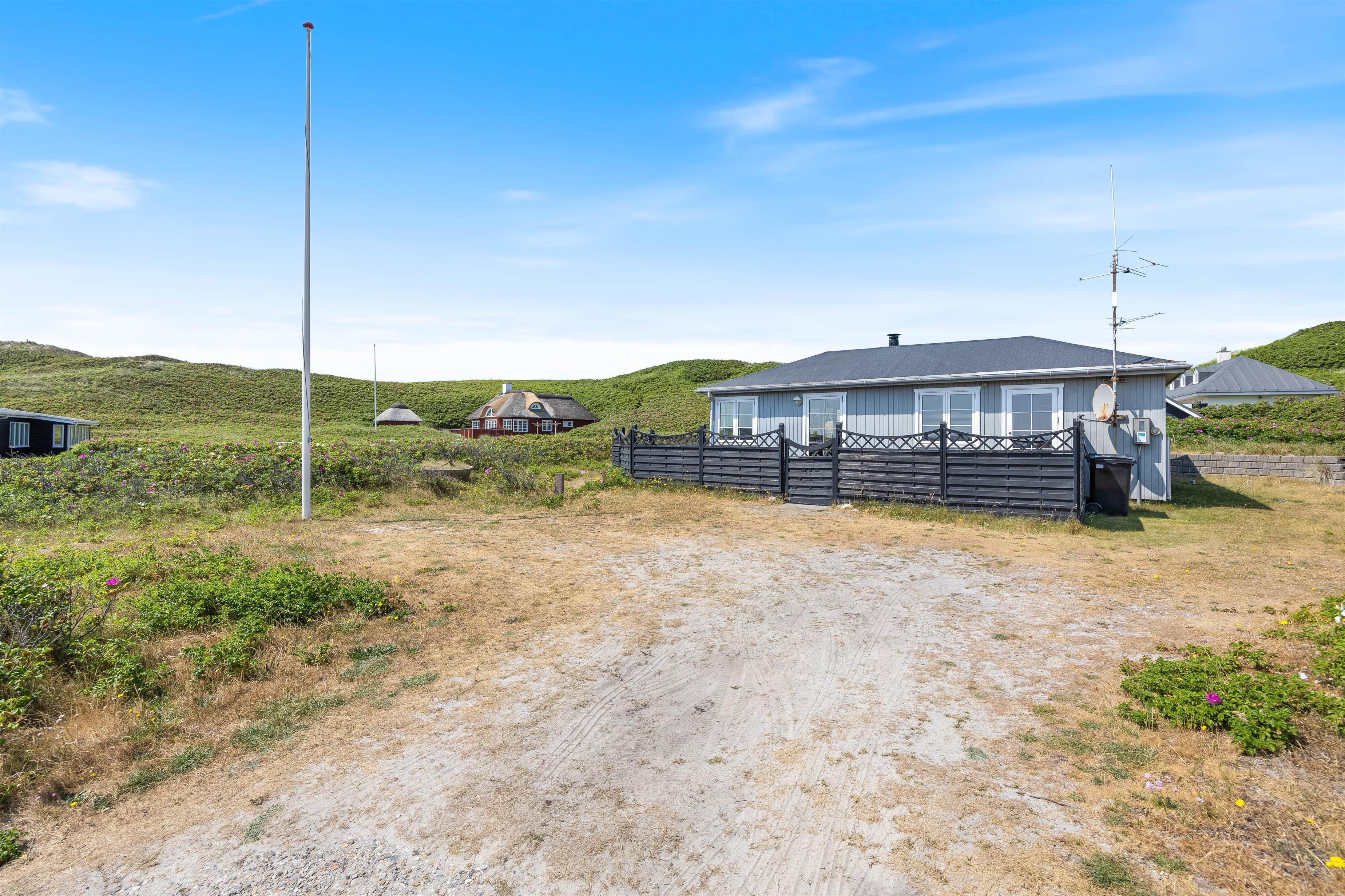 Rundt om sommerhuset er der en lukket terrasse, så hunden frit kan gå udenfor uden at kunne løbe væk. Der er både havemøbler og grill til rådighed, så I kan tilberede et dejligt måltid mad og nyde det gode vejr, når solen skinner. Her på terrassen kan solen nydes hele dagen, og sommerhuset ligger så tæt på Vesterhavet, at havets brusen kan høres i baggrunden.