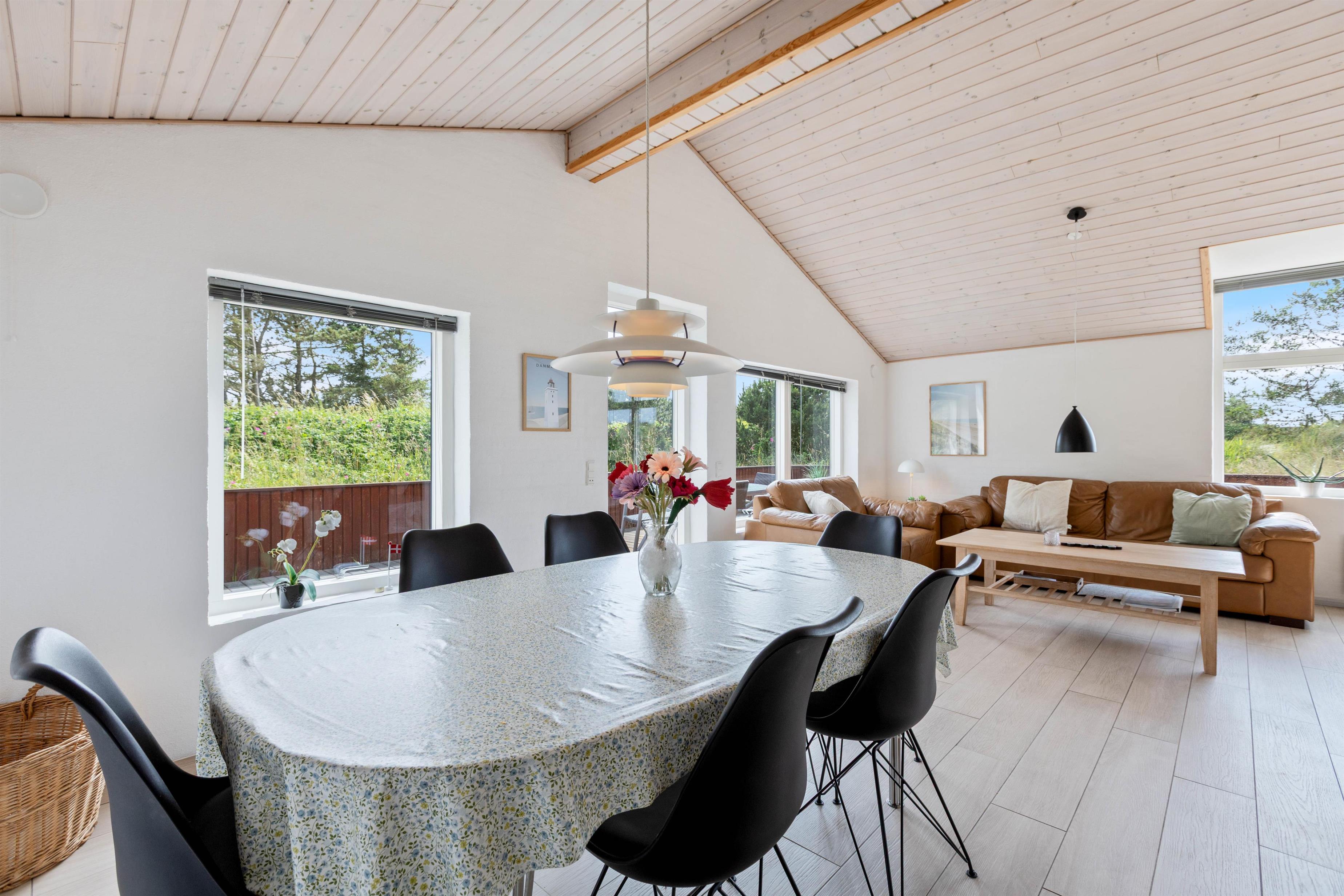 Sommerhuset er rigtig godt egnet til familier med børn, og familiens hund er selvfølgelig også velkommen. Sommerhusets gode størrelse, de moderne faciliteter og brændeovnen indbyder til ren hygge og afslapning med familien – især efter en dejlig gåtur til Vesterhavet. På husets naturgrund mod øst kan børnene hygge sig på gyngestativet og lege i sandkassen.