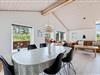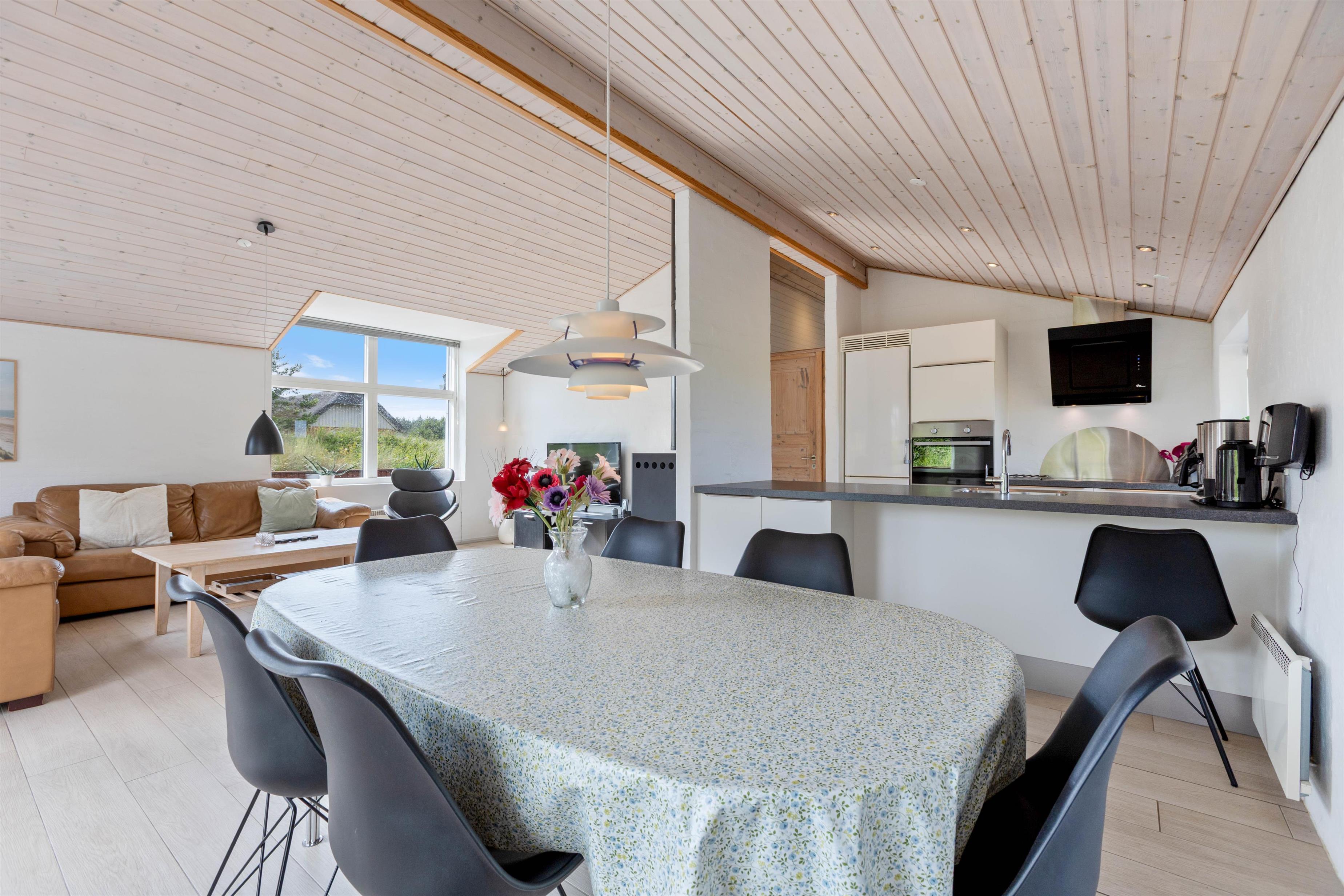 Midt i sommerhuset finder I det store køkken-alrum, hvor der virkelige er sat nogle gode rammer, for at I kan have en fantastisk ferie. Loftet til kip giver hele rummet en god rummelighed og rumfornemmelse, og samtidig med en brændeovn er placeret midt i rummet, kan I med fordel tænde op i denne, og bare nyde den fantastiske varme og hygge som den spreder. I stuen er der også et fladskærms-tv, hvortil der er en google Chromecast, der sikrer at I kan føle jer endnu mere hjemme, for den tillader jer at se lige hvad I ønsker, når I ønsker det.