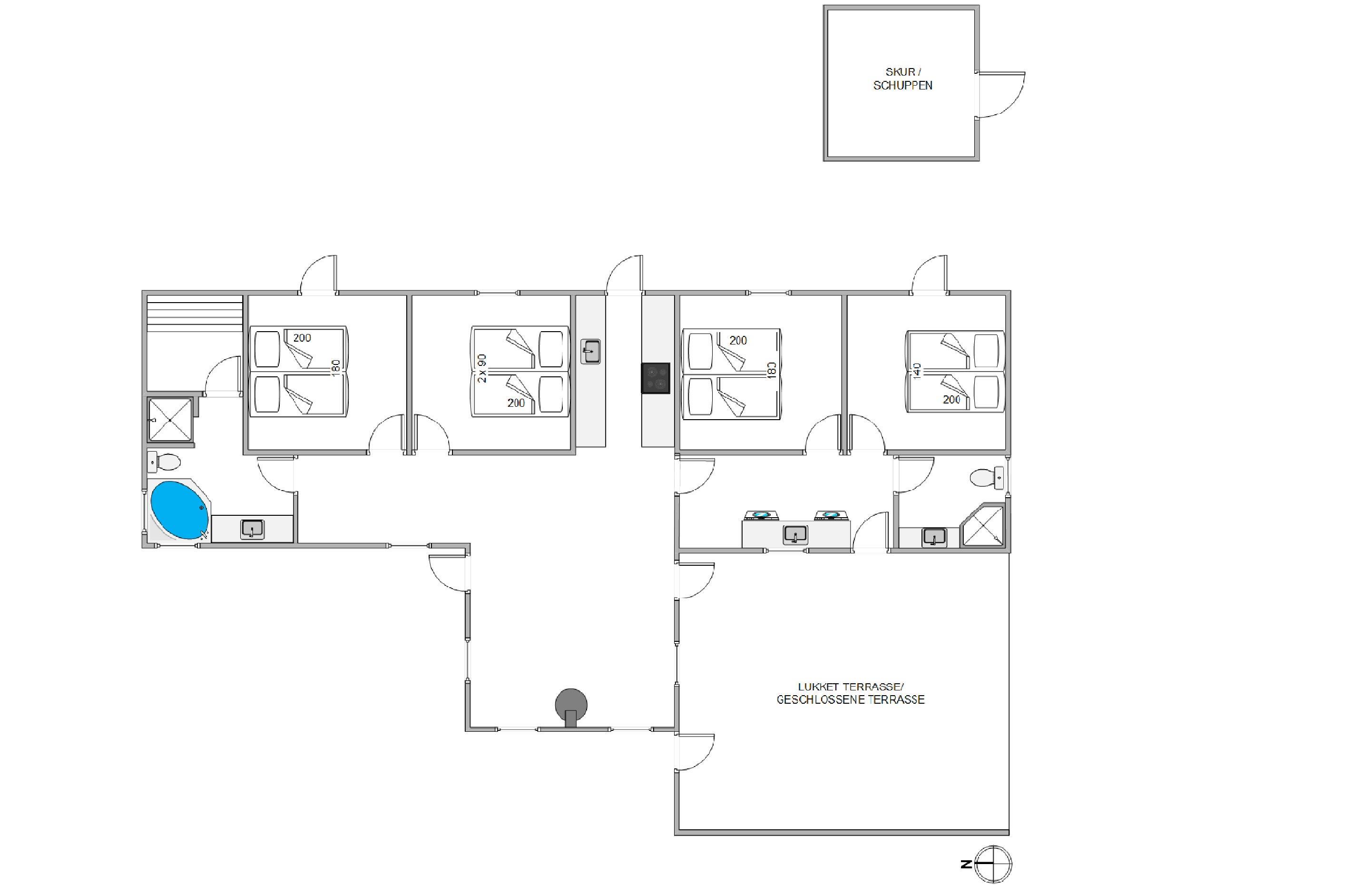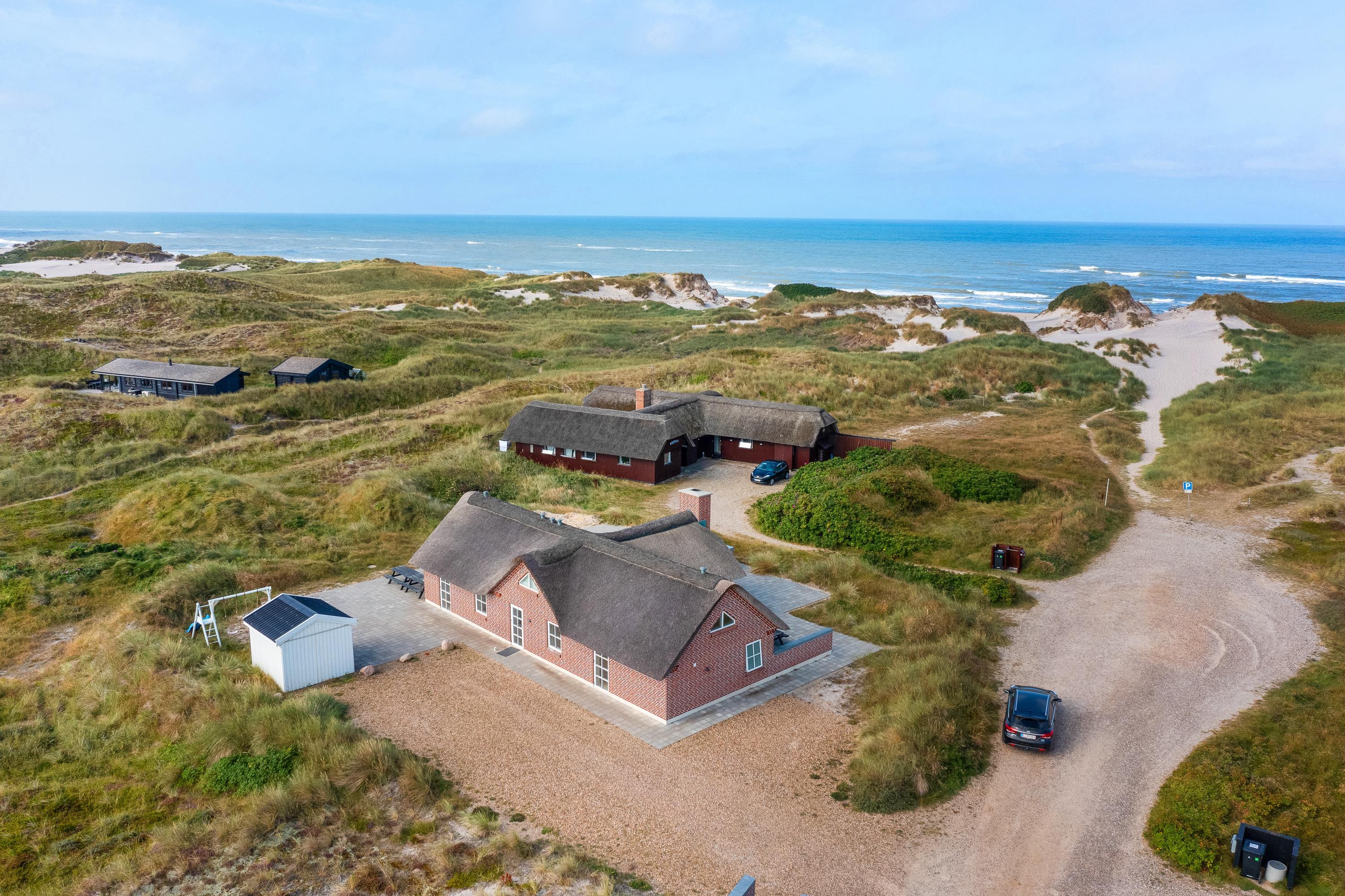 Huset er omgivet af gode terrasser mod både øst, syd og vest. Det betyder også, at uanset tidspunkt på dagen kan I finde en solrig plet, hvor I kan slå jer ned og nyde lyden af Vesterhavets brusende bølger i baggrinden. Der er naturligvis sørget for både liggestole, havemøbler og grill, så I virkelig slappe af og nyde sommeren med grillhygge og solbadning.