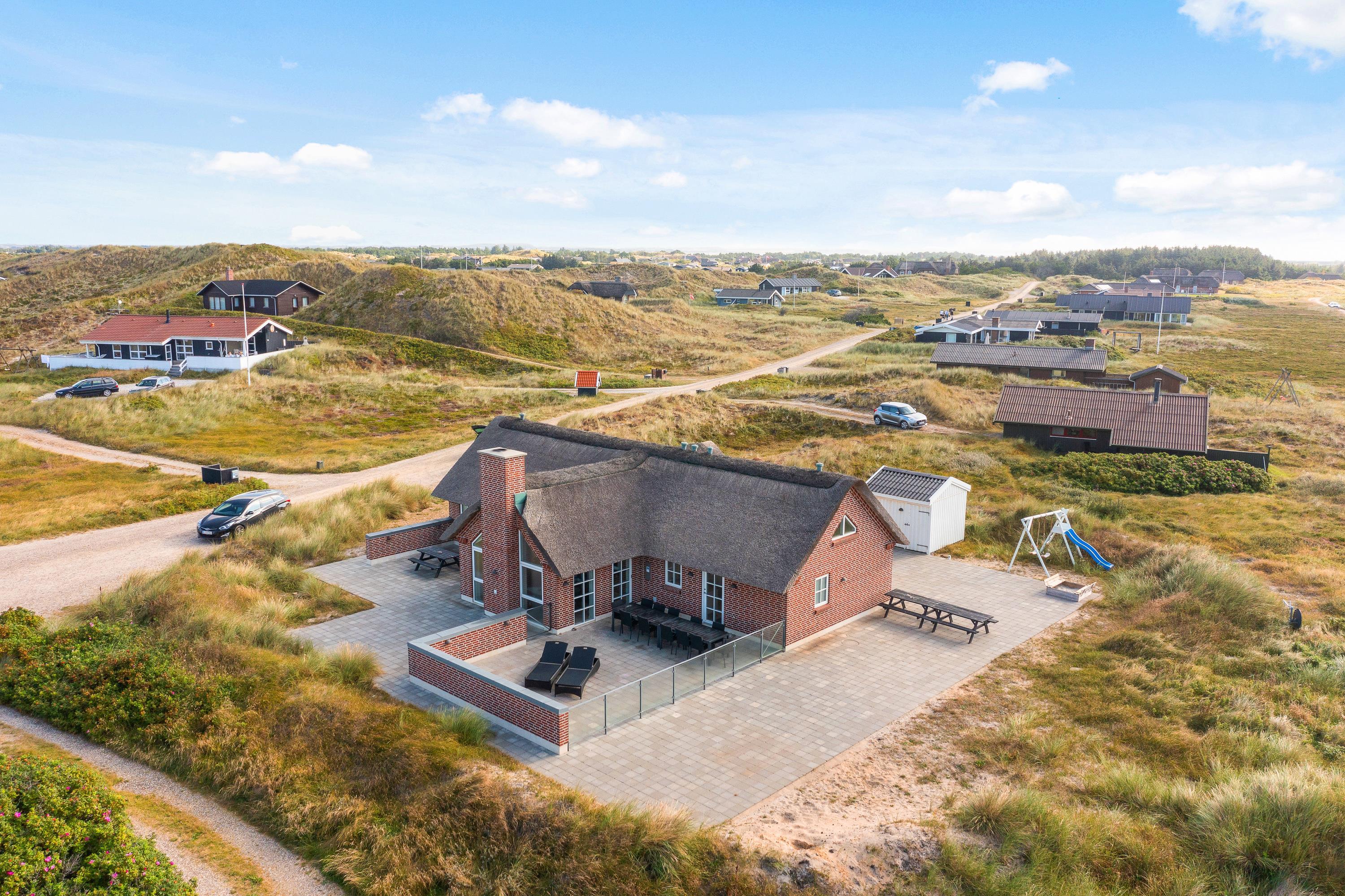 På Jens Jensens Vej 65 i Søndervig – blot 150 meter fra klitter og strand – ligger dette lækre feriehus i sten og med stråtag. Det otte personers sommerhus ligger på en ugeneret beliggenhed for enden af en stille og rolig vej. Her får I den perfekte ramme for ferien, hvis I værdsætter komfort og velvære.