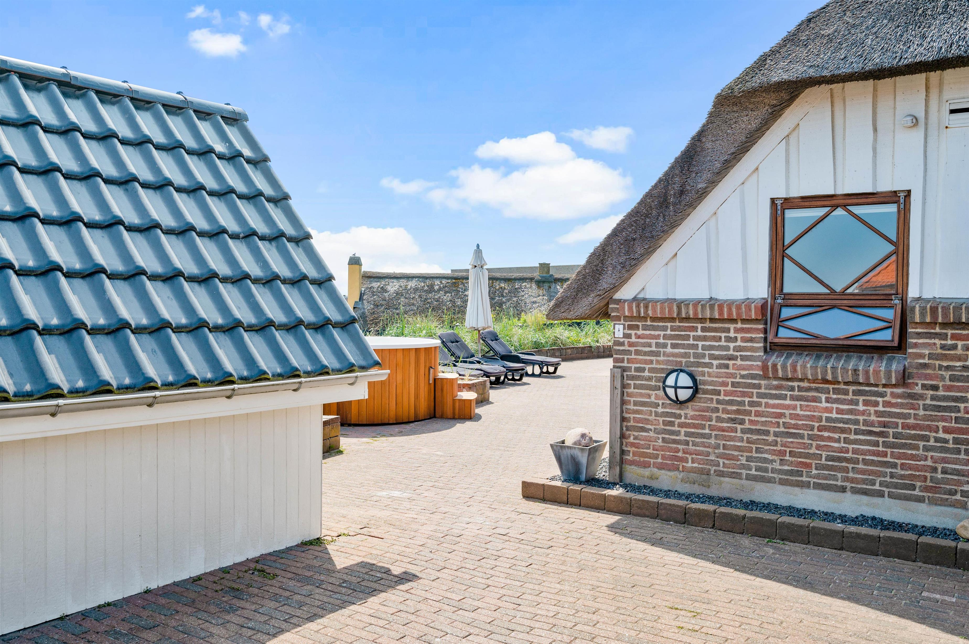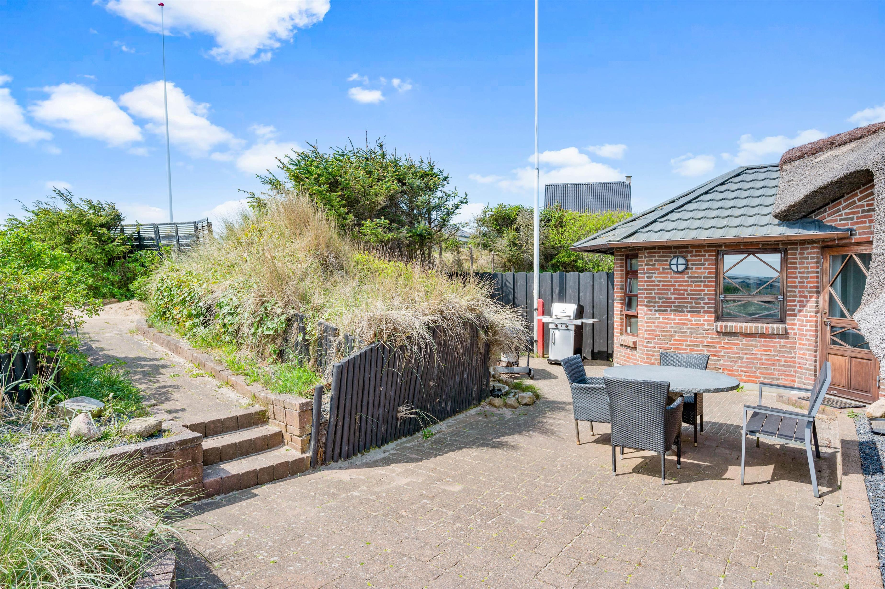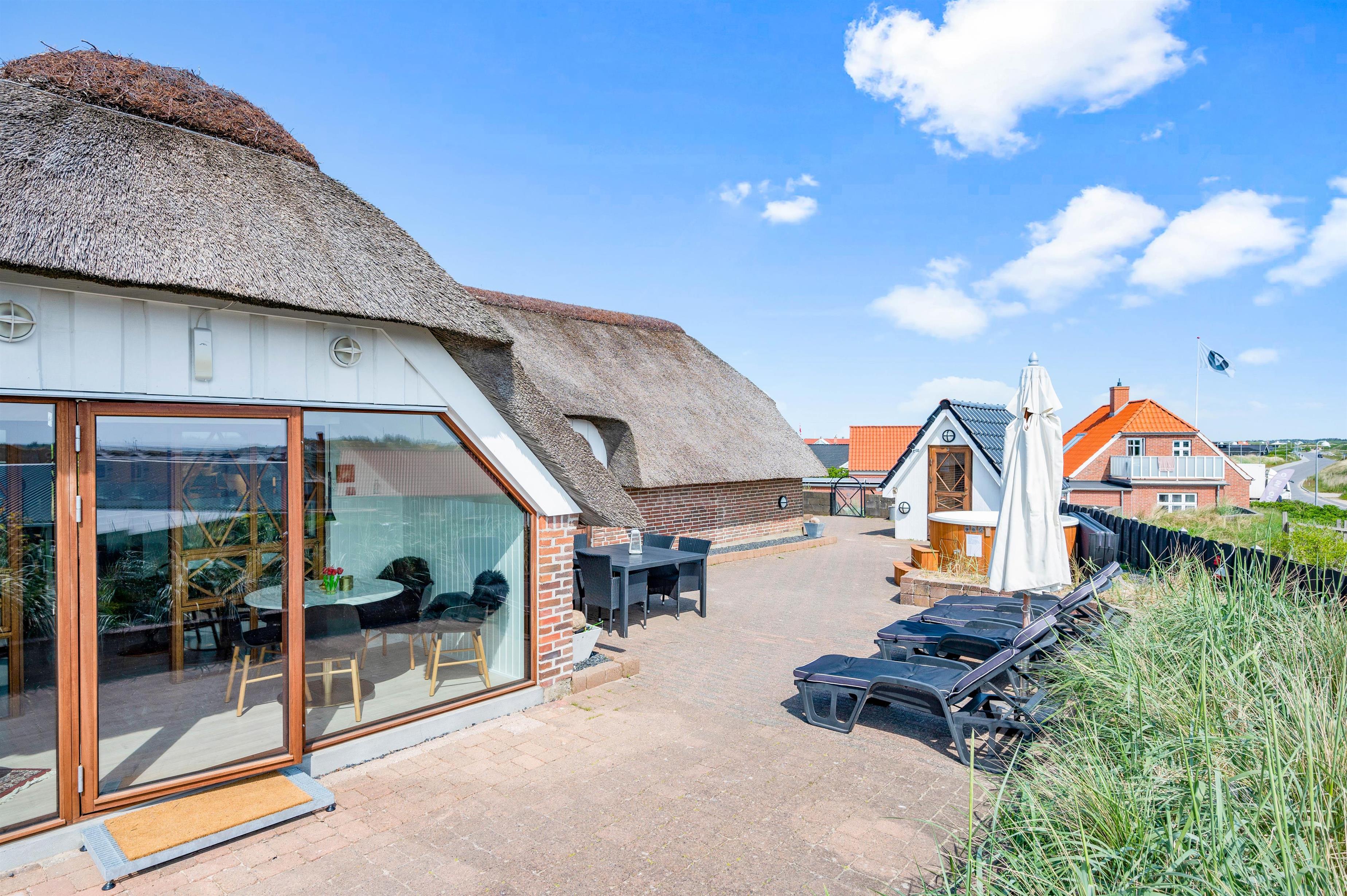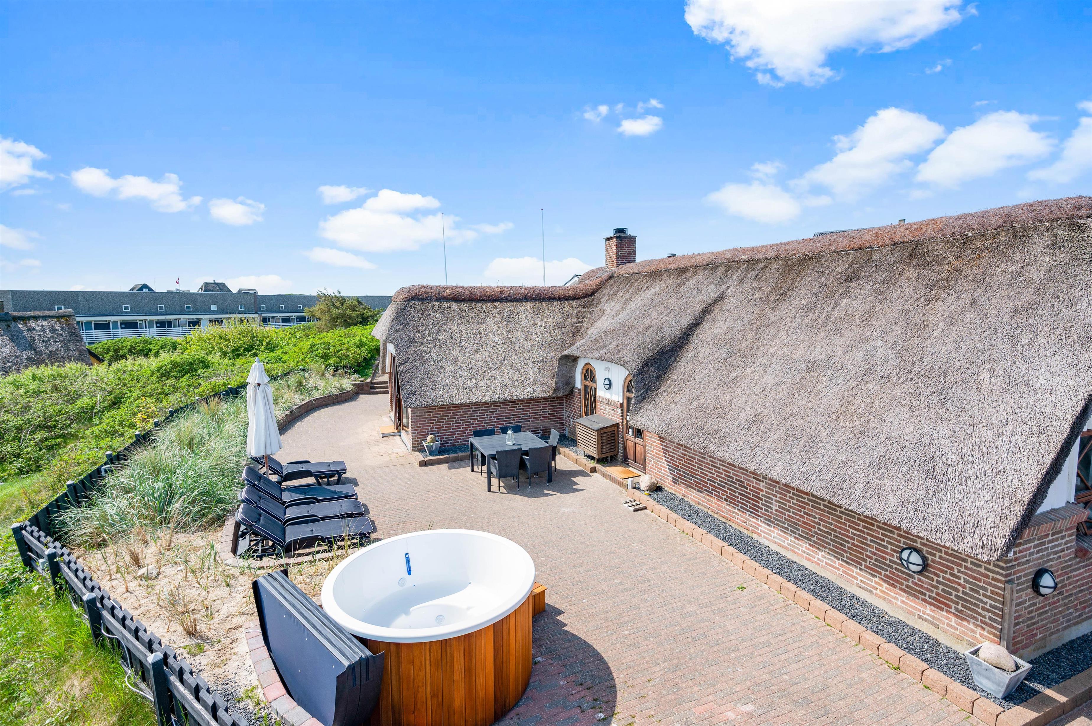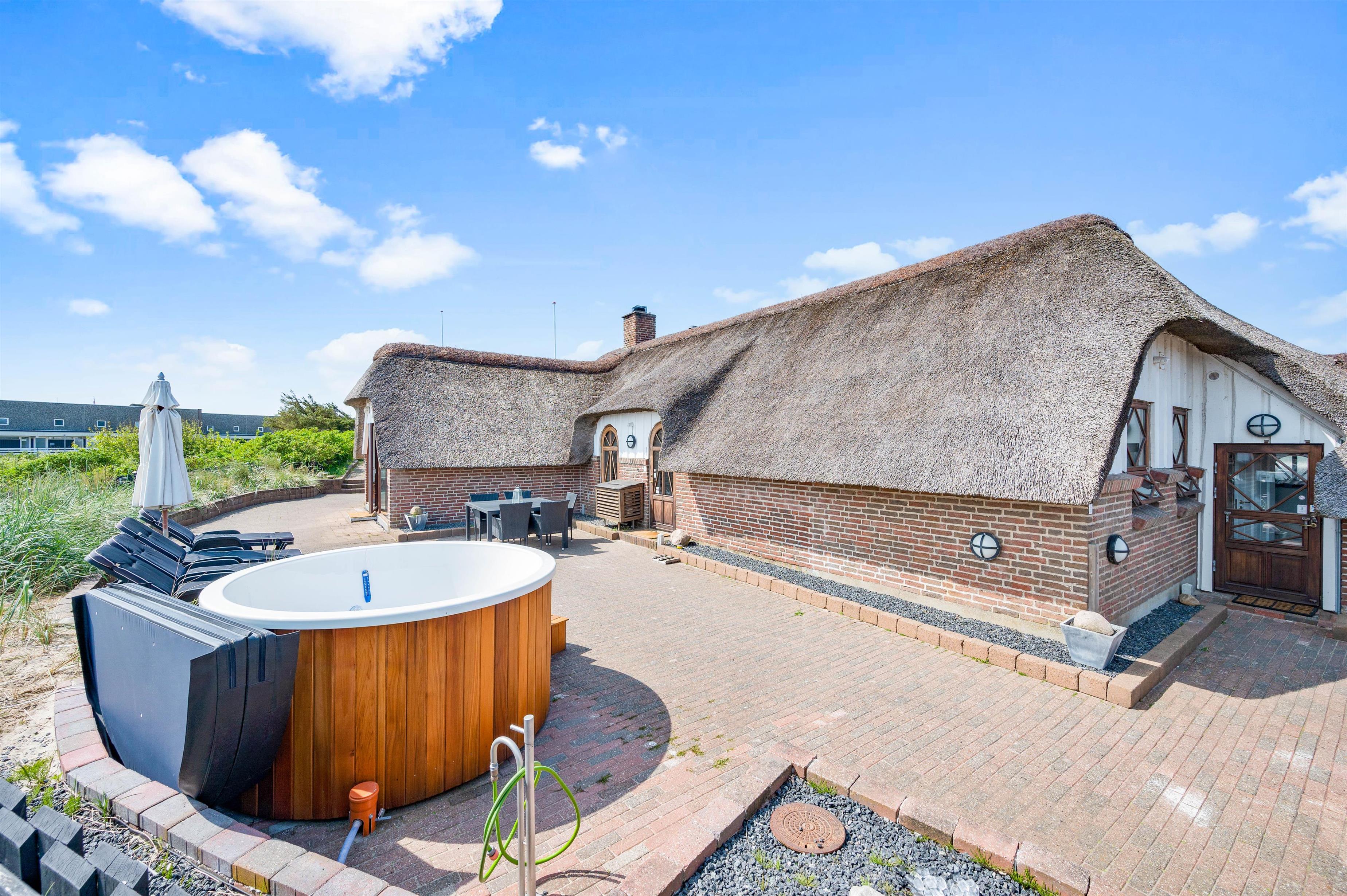 De lune ferieaftener kan I også tilbringe på terrassen, hvor I kan tænde op i grillen og stege nogle lækre bøffer, som I kan nyde med et godt glas vin til. Mens I sidder på terrassen, kan I høre lyden af bølgernes brusen i baggrunden. Ude på terrassen finder I også det elektriske vildmarksbad. her kan I sidde og slappe af, mens I lader tankerne flyde.