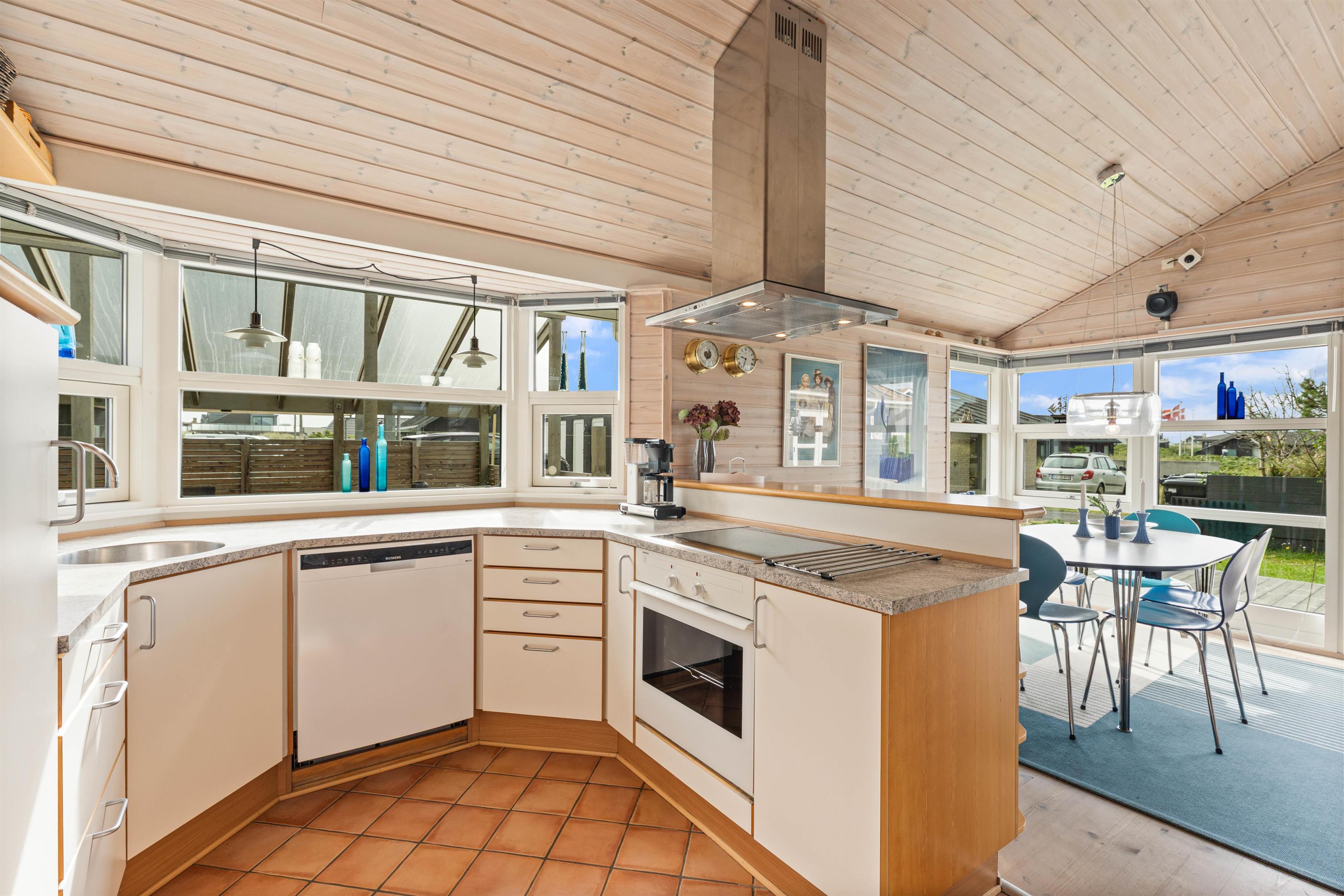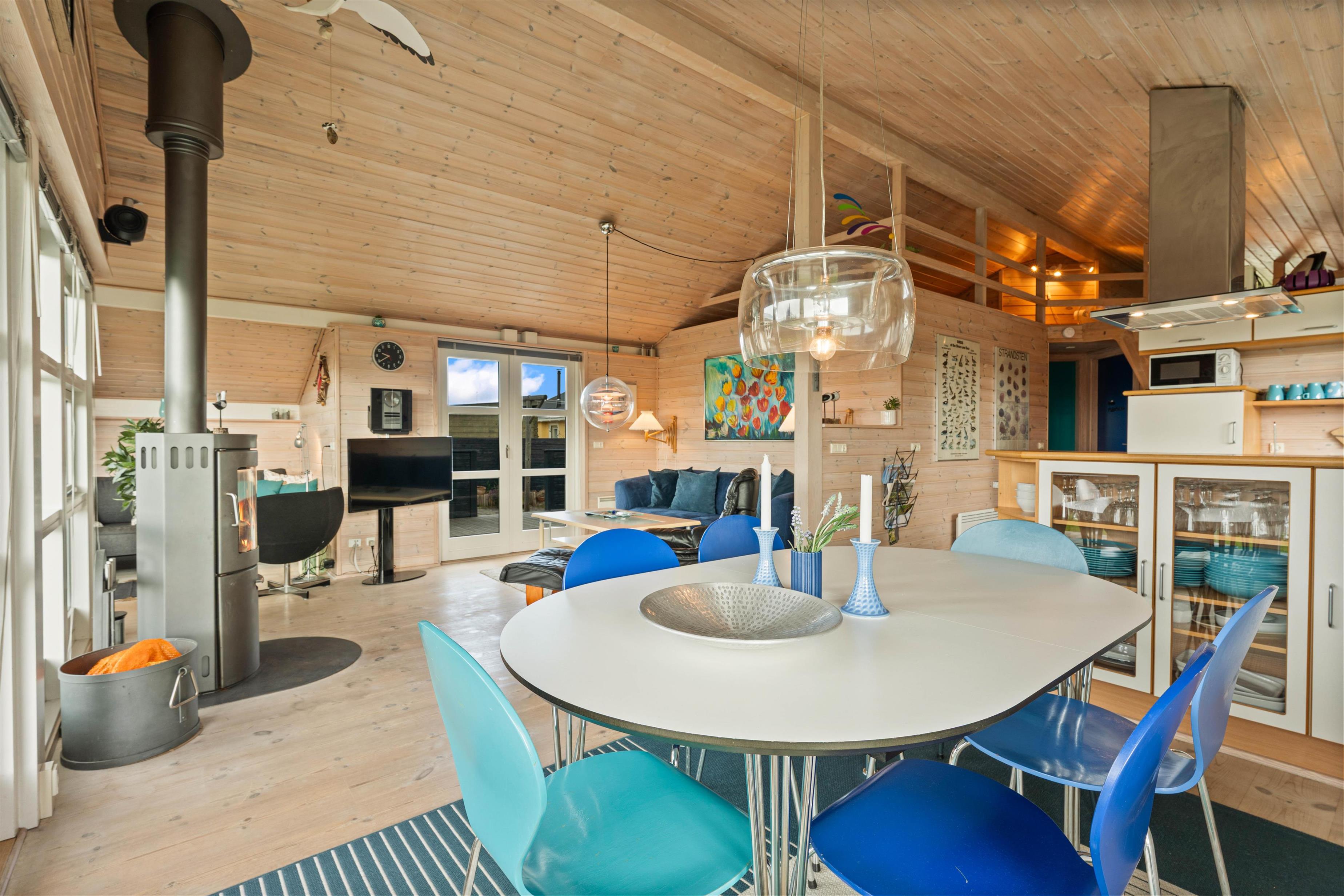 Afslapning, hygge og tid til hinanden – i dette dejlige sommerhus på Sletten 22 finder I rammerne til en skøn ferie. Her er mulighed for rigtigt at koble af med både sauna og spa i det store wellness-badeværelse. I stuen kan I hygge med familien foran brændeovnen og børnene vil elske at samles til højtlæsning i den hyggelige alkove. Praktiske detaljer som vaskemaskine, tørretumbler, opvaskemaskine og en central beliggenhed til strand og indkøb afrunder billedet.