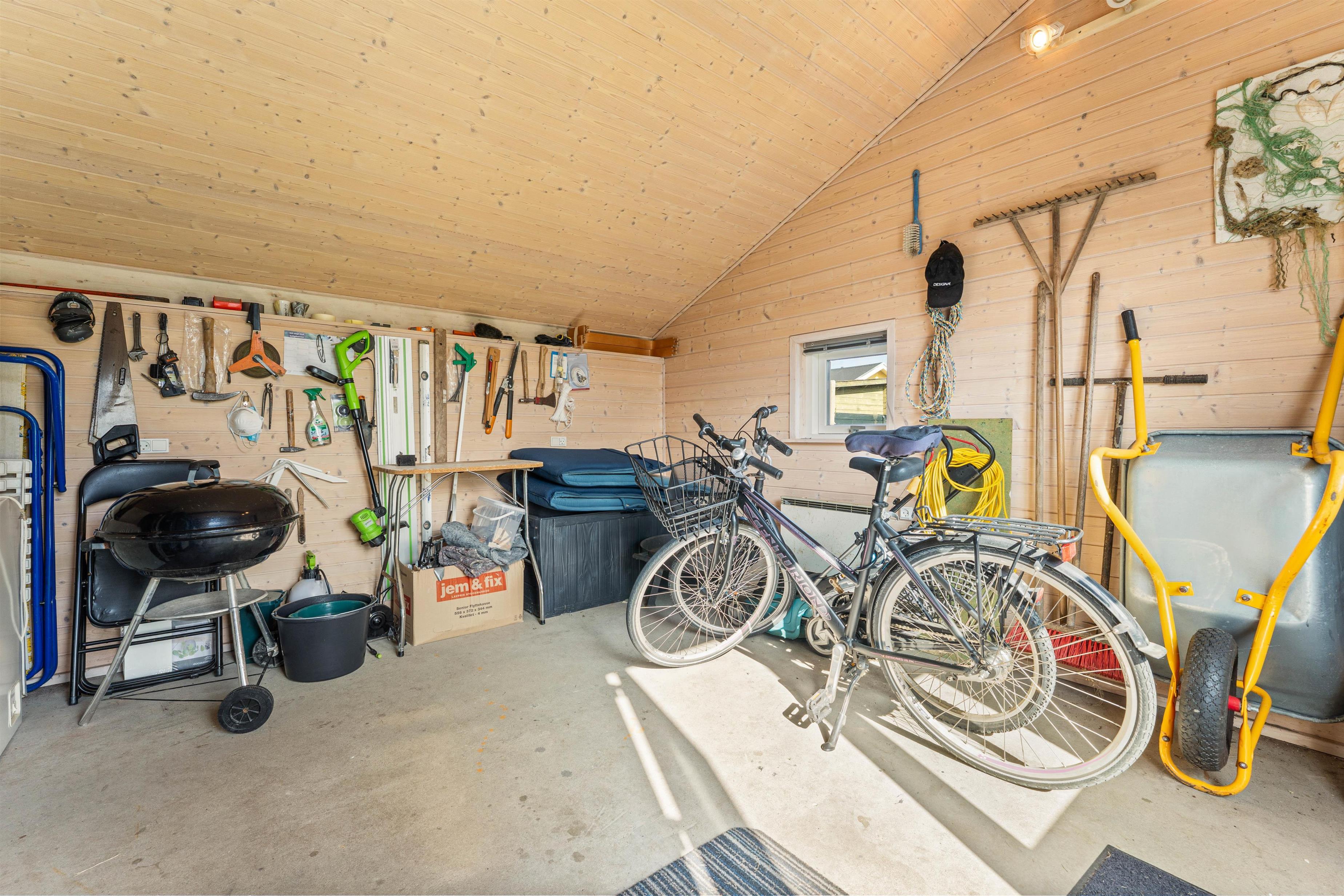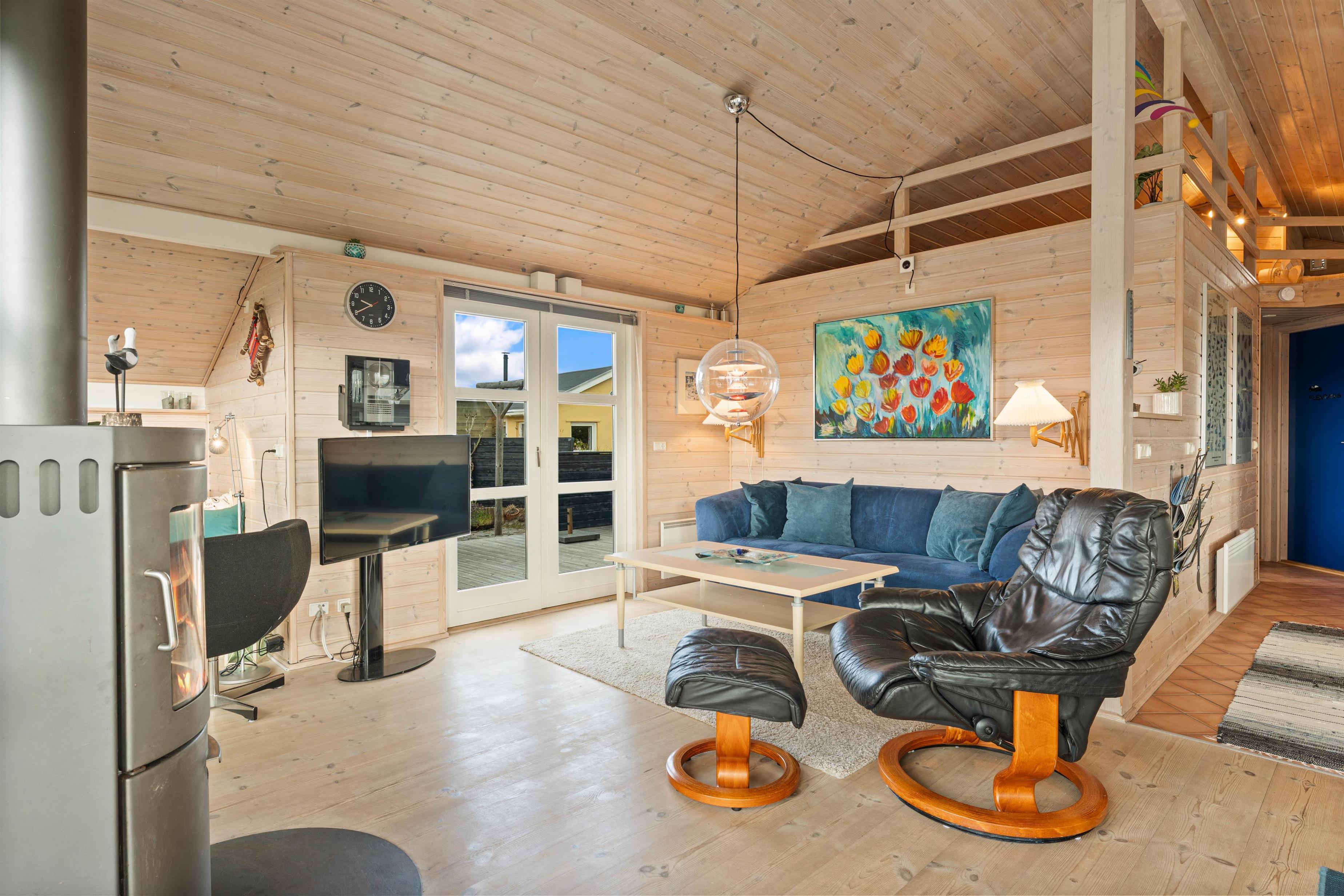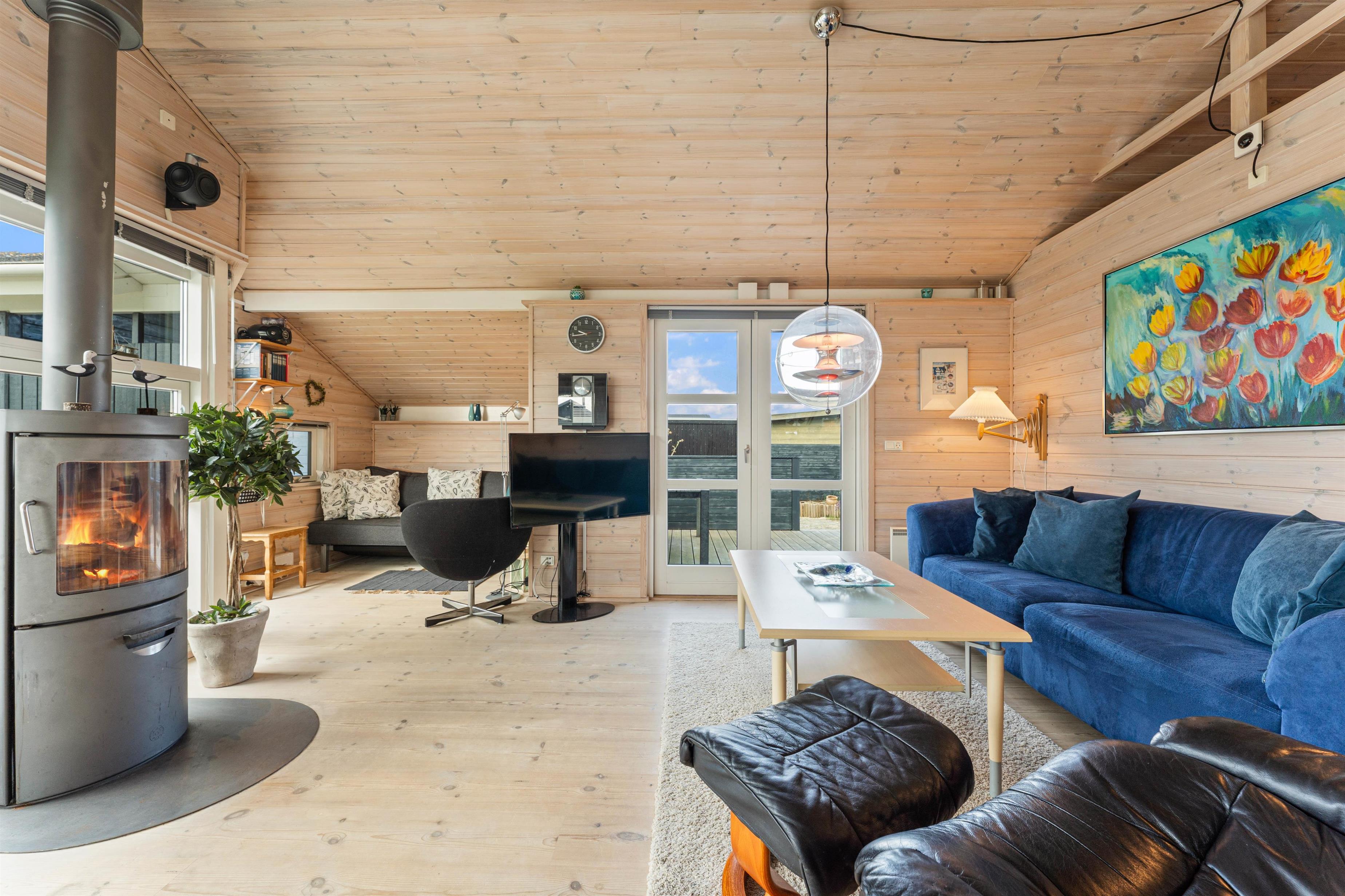 Indenfor overbeviser sommerhuset på Sletten 22 med en gennemført indretning – hyggeligt med lyst træværk, loft til kip og et dejligt åbent køkken, en alkove og en hems. Det store badeværelse med gulvvarme fungerer som sommerhusets lille wellnessoase, hvor I kan glemme hverdagens bekymringer og bare slappe af.