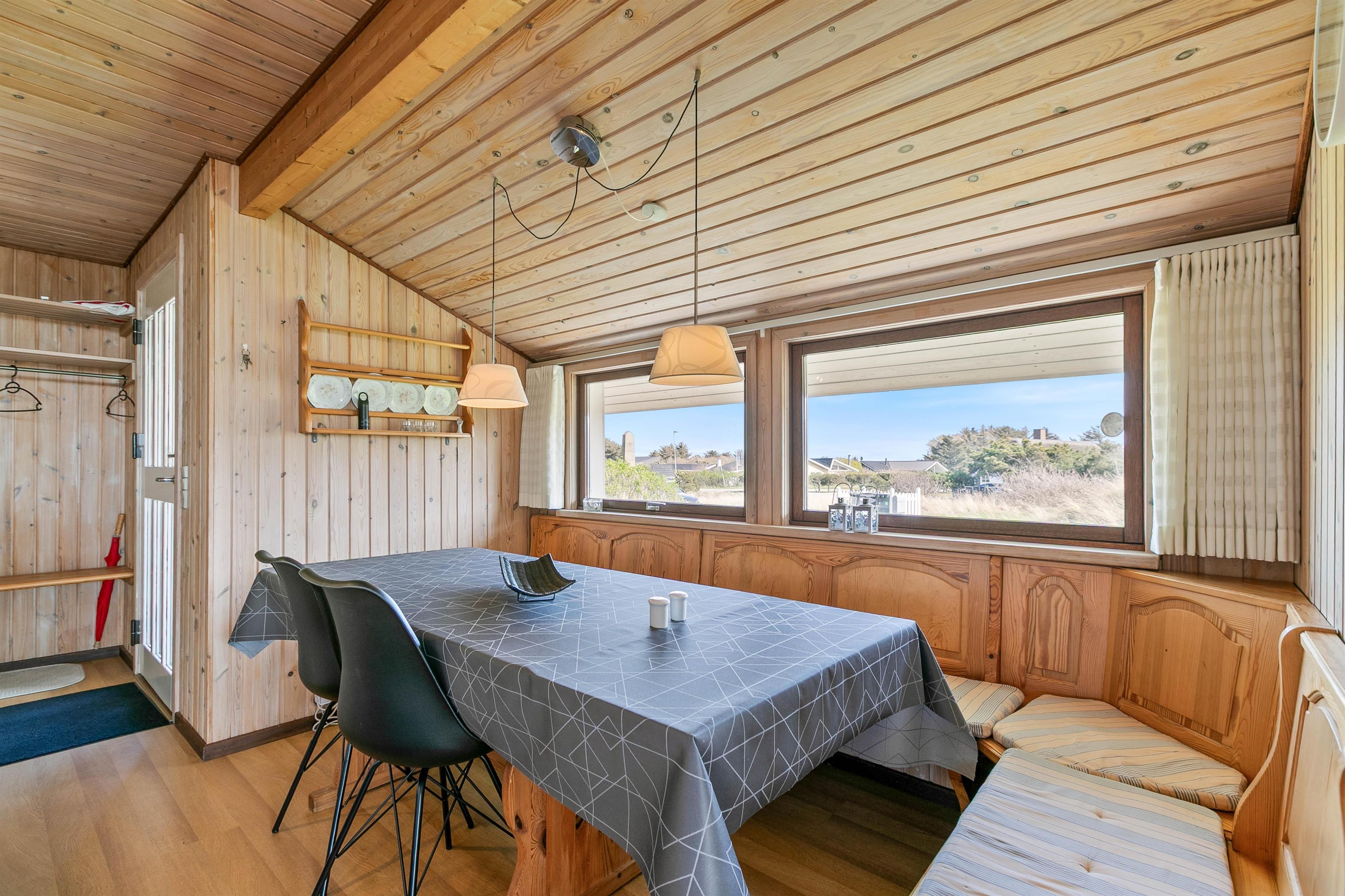 Sommerhuset ligger få minutters gang fra det brusende Vesterhav, og både store og små kan følge med på de 350 meter til strandkanten. Den kilometerlange sandstrand byder på nye oplevelser hele året rundt, og både store og små feriegæster vil elske en udflugt til stranden.