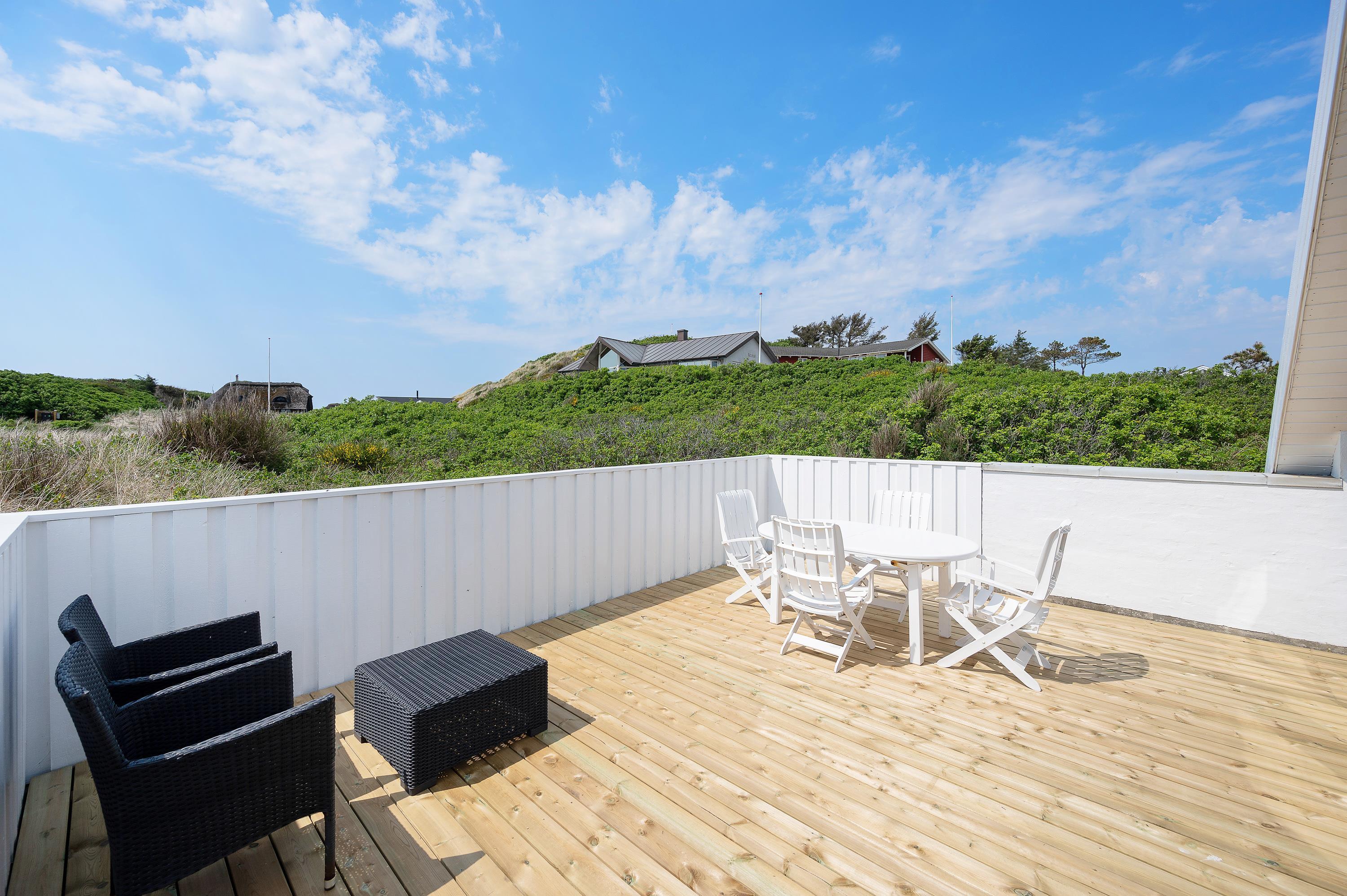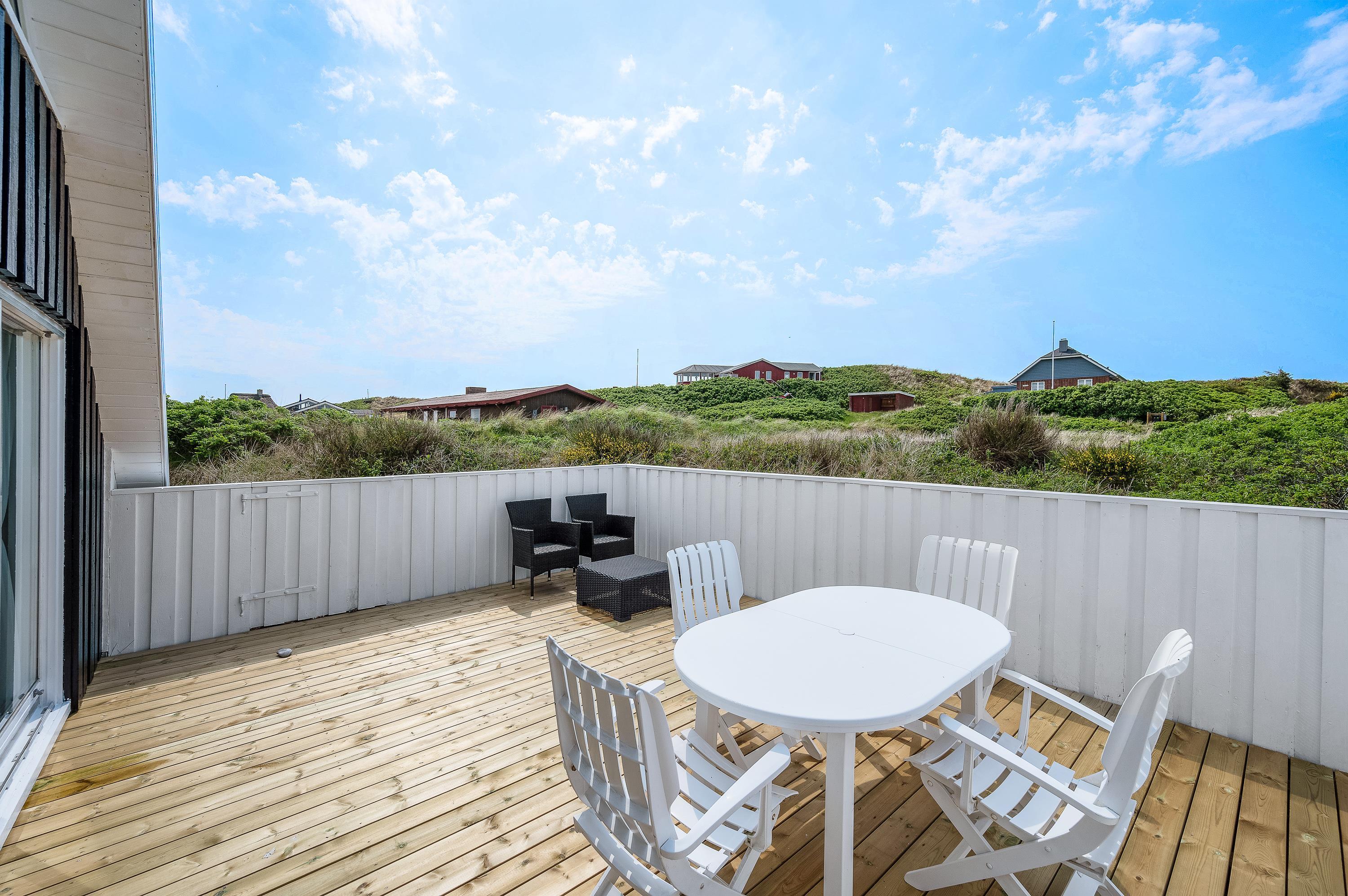 Fra stuen er der direkte udgang til den store lukket sydvendte terrasse. Her kan I nyde jeres morgenkaffe, og senere på dagen kan I sidde godt i læ på den vestvendte, lukkede terrasse med en god bog. Ellers kan I tænde op for grillen og nyde eftermiddags- eller aftensolen.