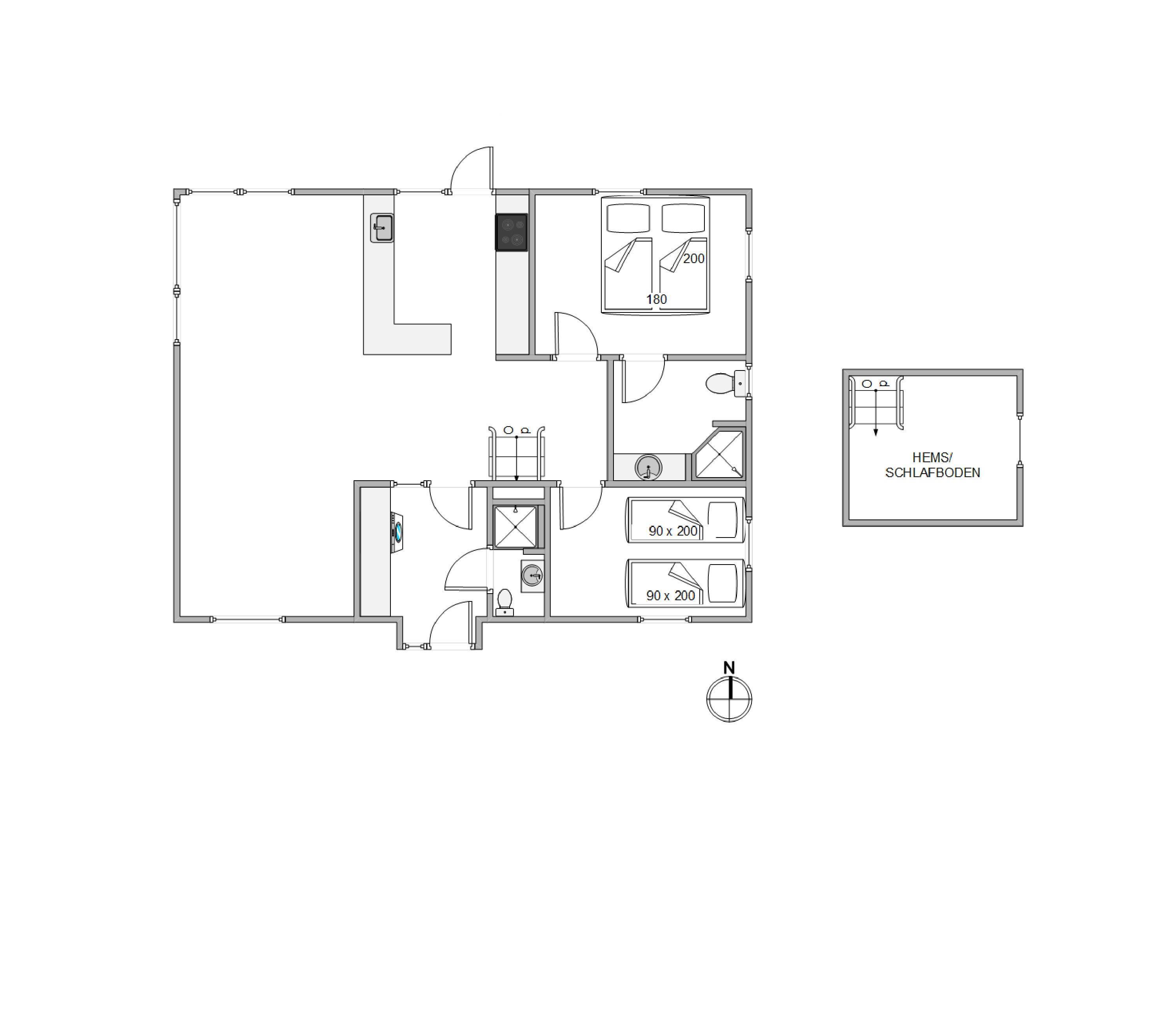 Ferielejligheden på Badevej 5, 1. th. byder på hele 110 stilfulde og rummelige kvadratmeter og god plads op til seks feriegæster. Bemærk dog venligst, at to af de seks sovepladser forefindes på husets hems. Den moderne indretning omfatter alle de praktiske nødvendigheder: Opvaskemaskine i køkkenet, to badeværelser med gulvvarme, vaskemaskine og tørretumbler samt en hurtig og stabil internetforbindelse, så I uden problemer kan streame film og serier på jeres medbragte iPads og computere.