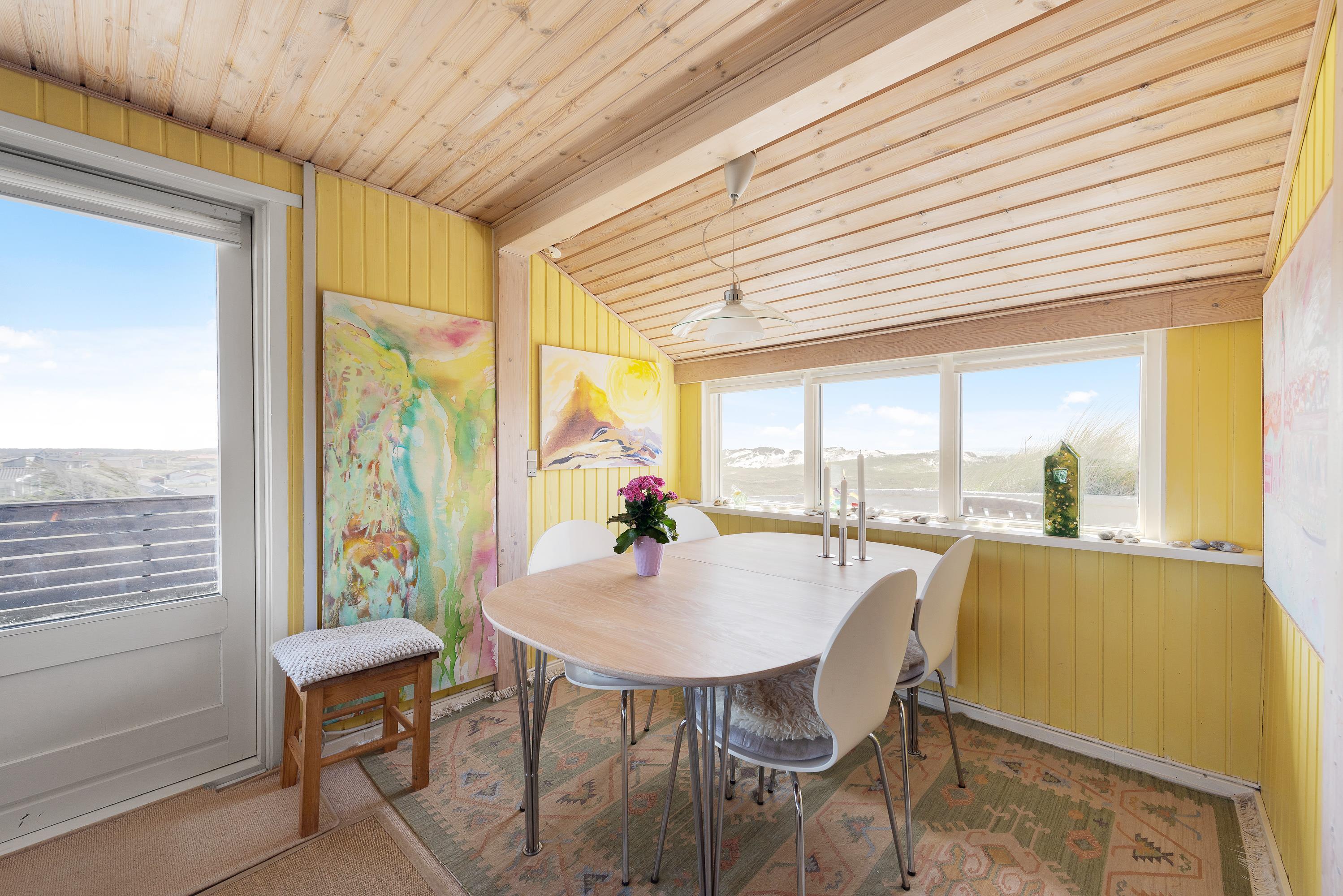 Med ferieadresse på Nordsøvej 140 får I en helt fantastisk beliggenhed. Faktisk en af de bedste i hele søndervig, hvis I søger rolige omgivelser og første-klasses udsigter. Sommerhuset ligger på en klittop i første række ned til havet, og I har både havudsigt og en smuk panoramaudsigt ud over klitlandskabet. Her vil I kunne nyde uforglemmelige middage både et morgenmåltid, frokostmåltid eller en lækker aftensmad lavet med hjælpe fra husets grill.