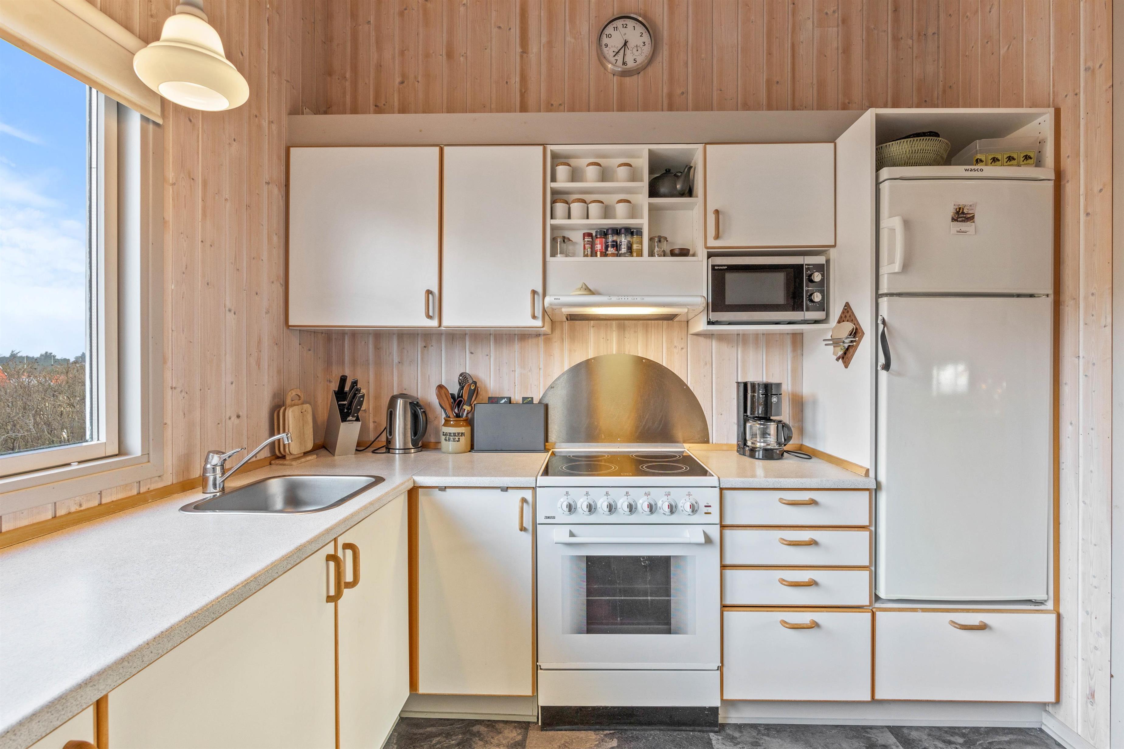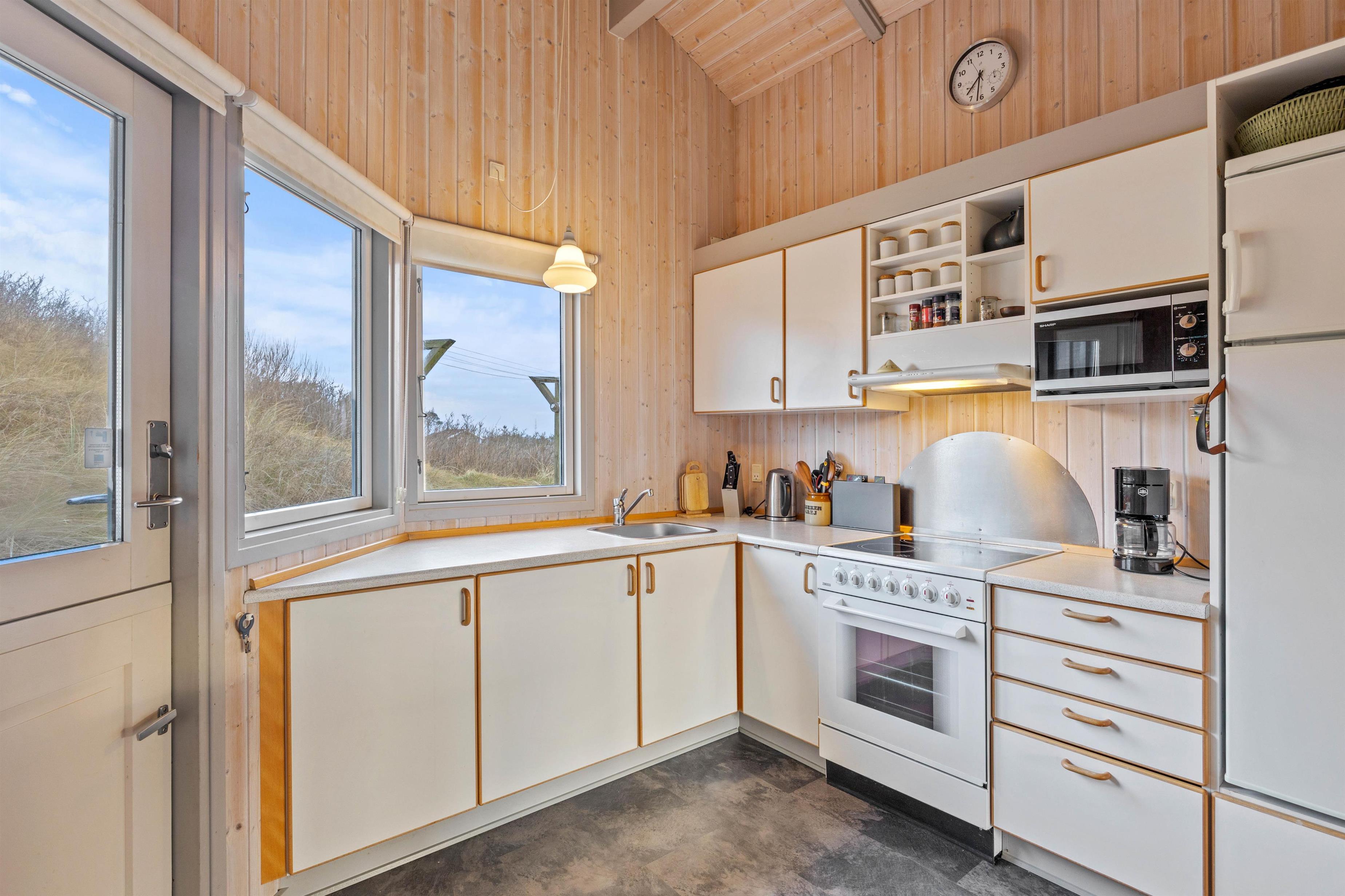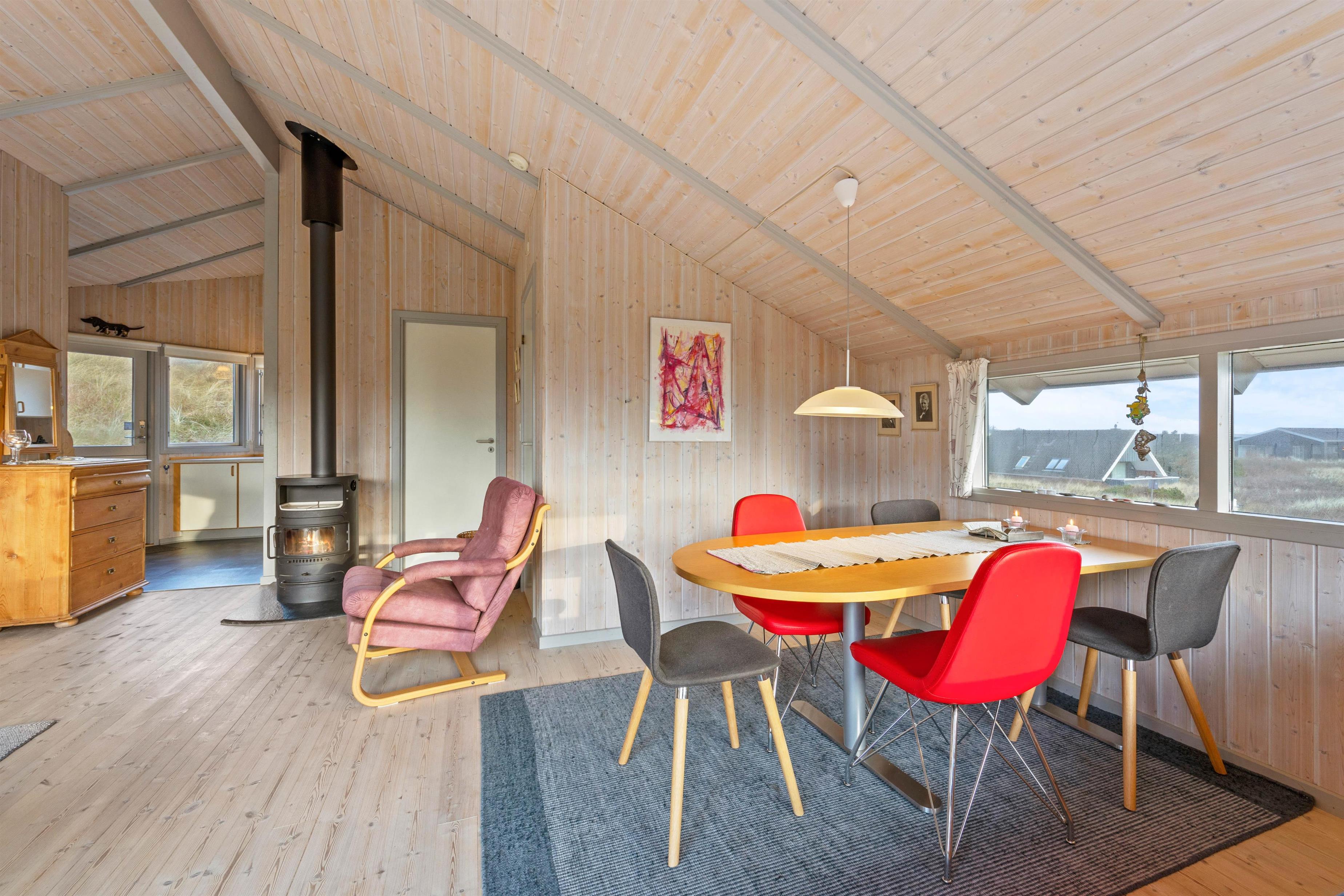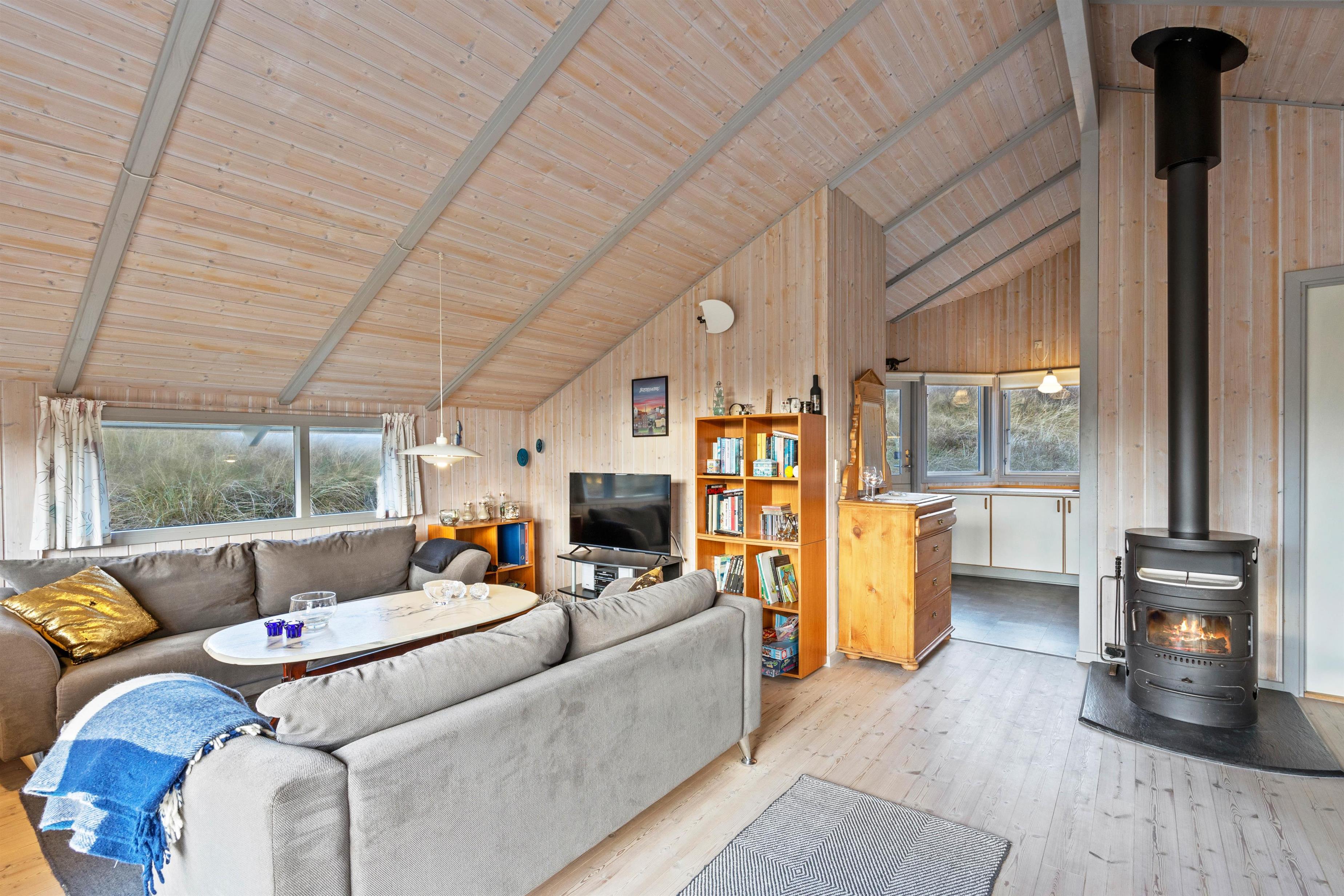 Når I træder ind på Molsvej 36 i Søndervig, vil I blive mødt af en lys og venlig indretning. Her er I ikke i tvivl om, at der er ferie på menuen. Den gode brændeovn er placeret centralt i feriehuset og sørger for varmen på de koldere dage.