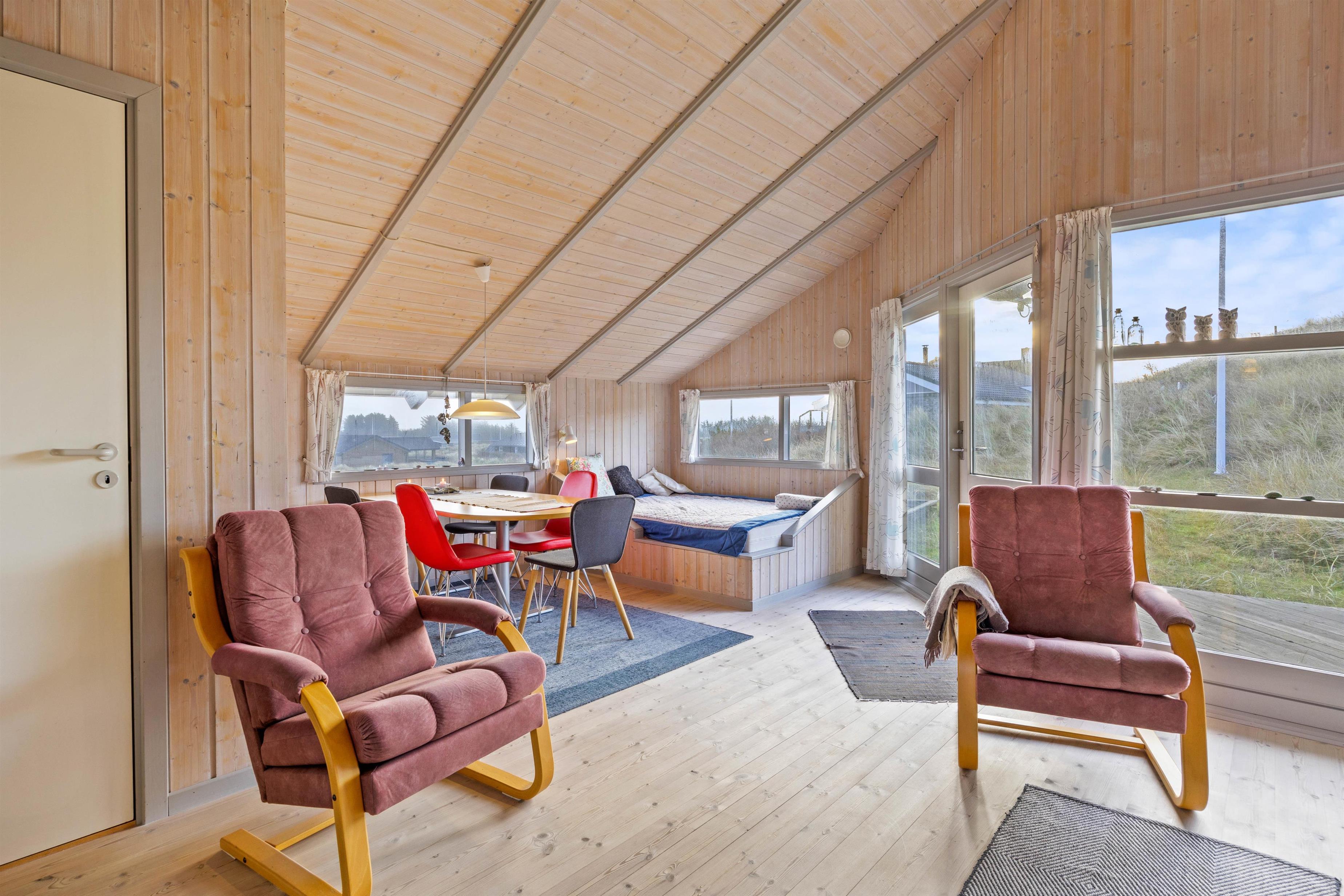 Dette skønne sommerhus til seks personer i Søndervig er perfekt til feriegæsterne, som værdsætter hygge, socialt samvær og den flotte natur. I kan slappe af foran den gode brændeovn eller drikke en kop kaffe på den fine terrasse. Desuden er en svømmetur aldrig langt væk, da der kun er 300 meter til Vesterhavet.