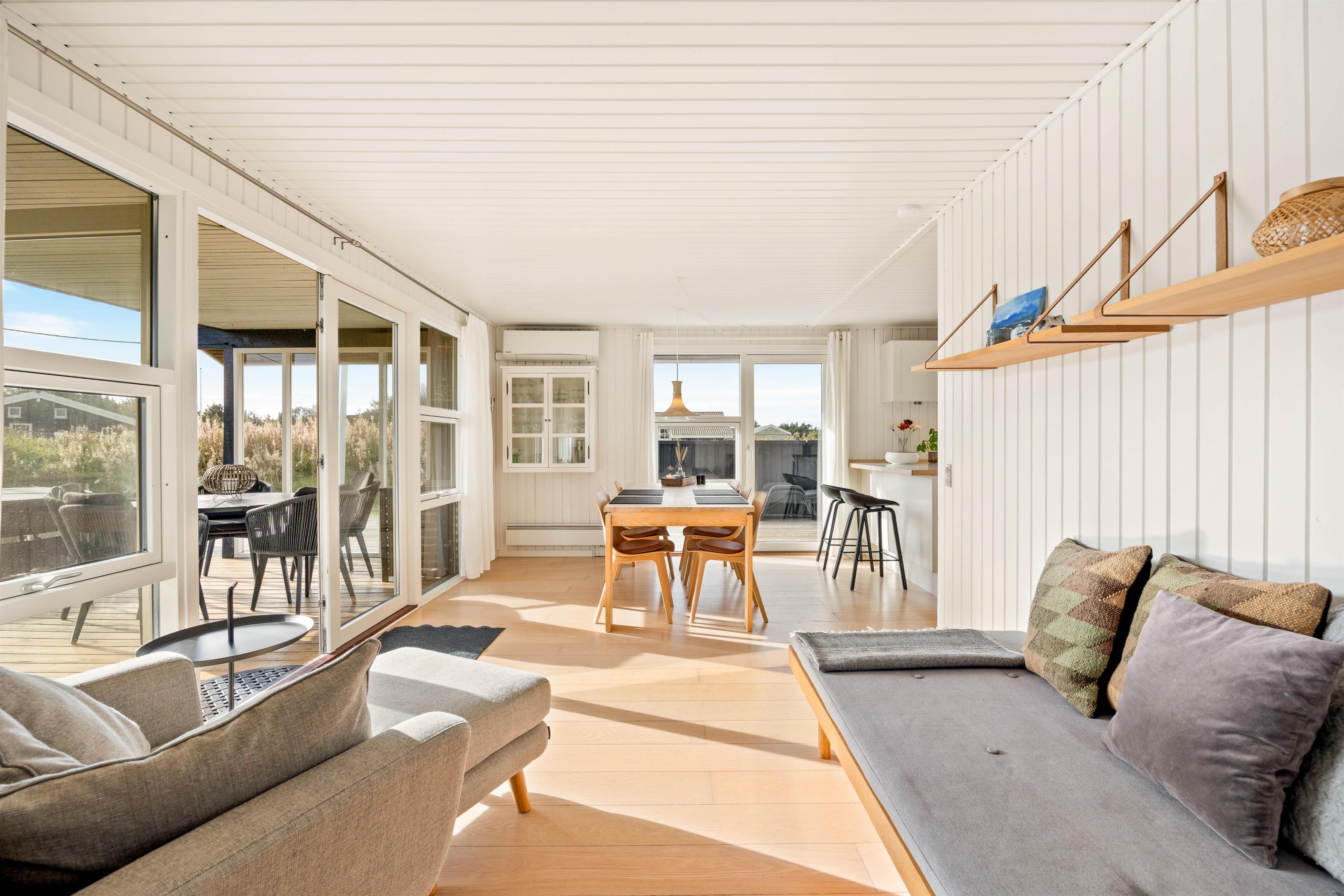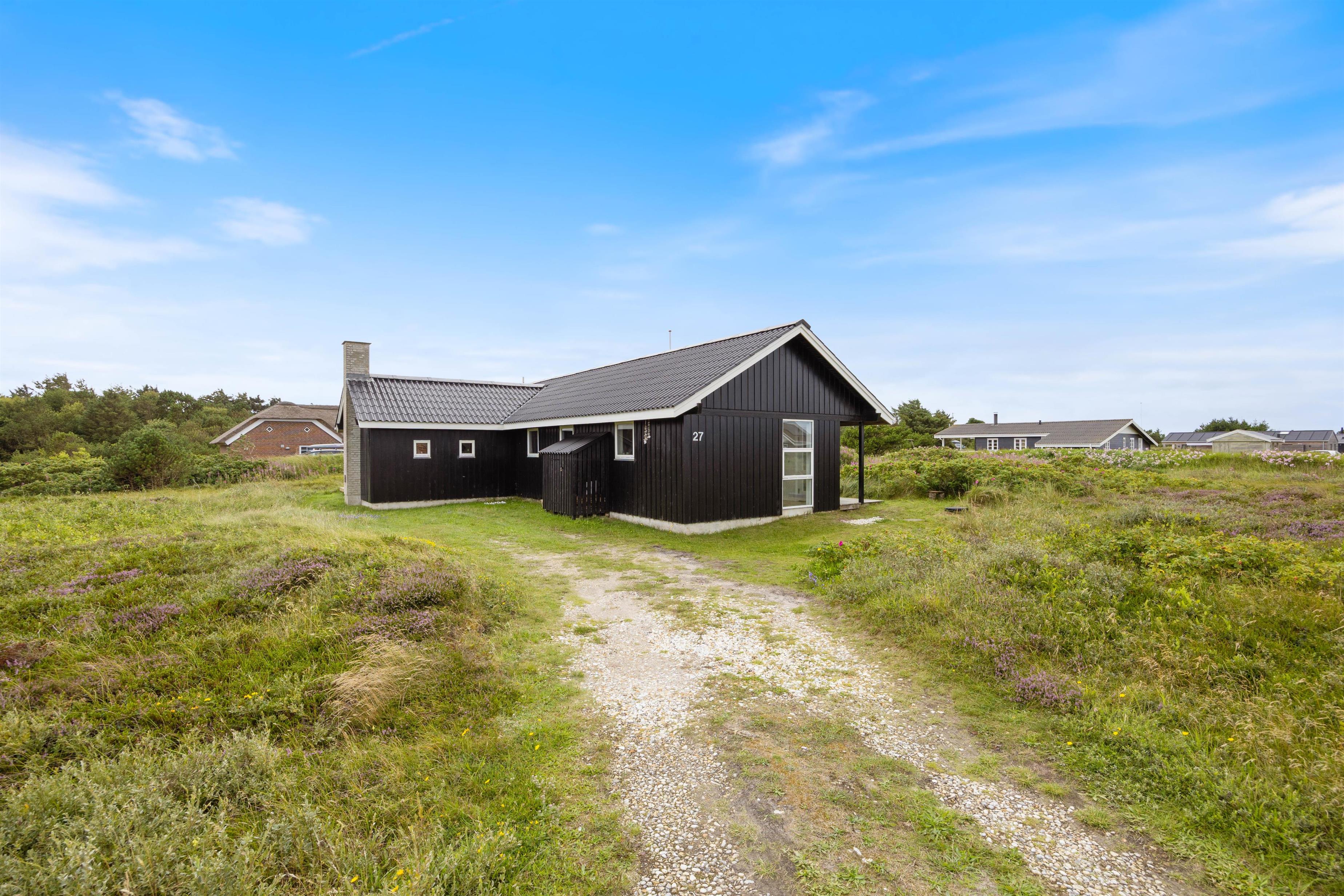 Dette lyse og smagfuldt indrettede sommerhus på Wolle Friks Vej 27 er beliggende på en naturgrund kun 900 meter fra Vesterhavet og dets brede sandstrand. Sommerhuset er placeret i et område, der er velegnet til trave- og cykelture gennem det udbredte stisystem, der findes mellem Søndervig og Hvide Sande. I Hvide Sande kan I desuden teste jeres evner på bl.a. vandski i "kabelparken". Så grib fat i hundesnoren, og begiv jer ud i de smukke kuperede terræner sammen med hunden og familien. Og I skal selvfølgelig også sætte kursen mod Vesterhavet.