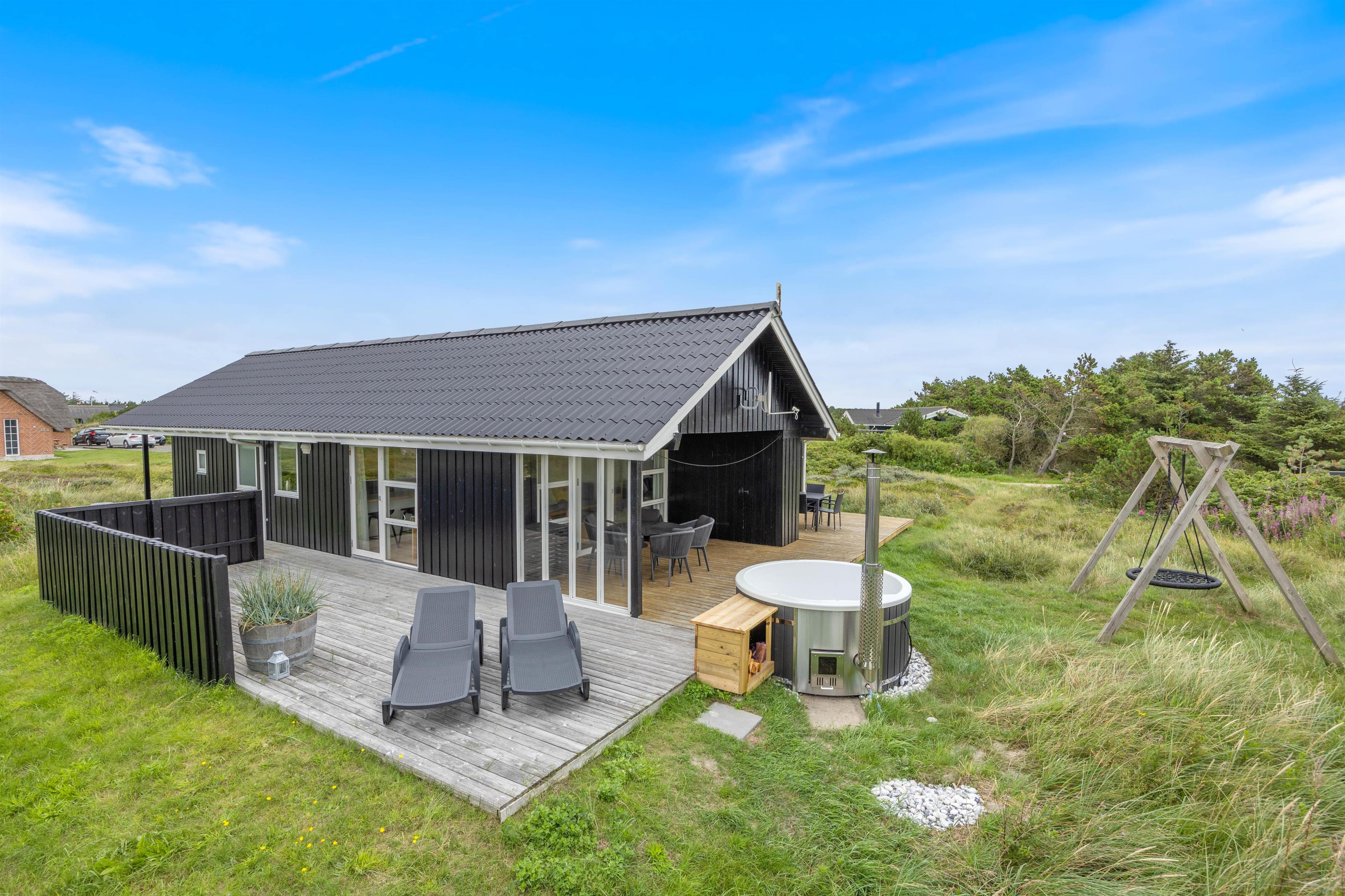 Der er rig mulighed for at holde ferie på børnenes præmisser i det skønne træsommerhus i Søndervig. Både inde og ude er der taget godt hånd om børnenes muligheder for leg og aktivitet. Udenfor er der også sørget for børnenes underholdning med et gyngestativ, hvor børnene kan gynge lige til det kilder i maven. Gyngestativet er placeret ud for terrassen, så I har udsyn til børnenes leg fra både terrassen og spisestue- og køkkenafdelingen.