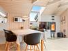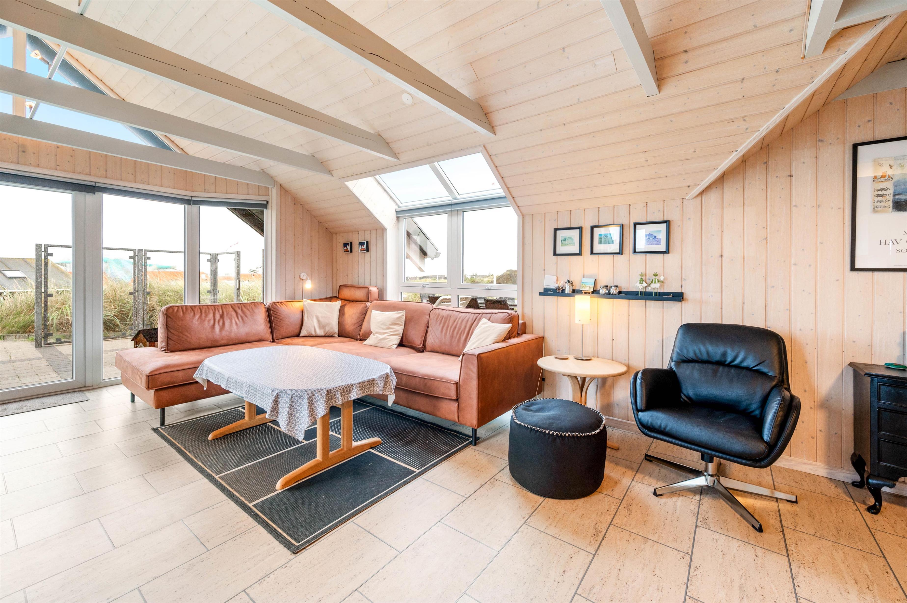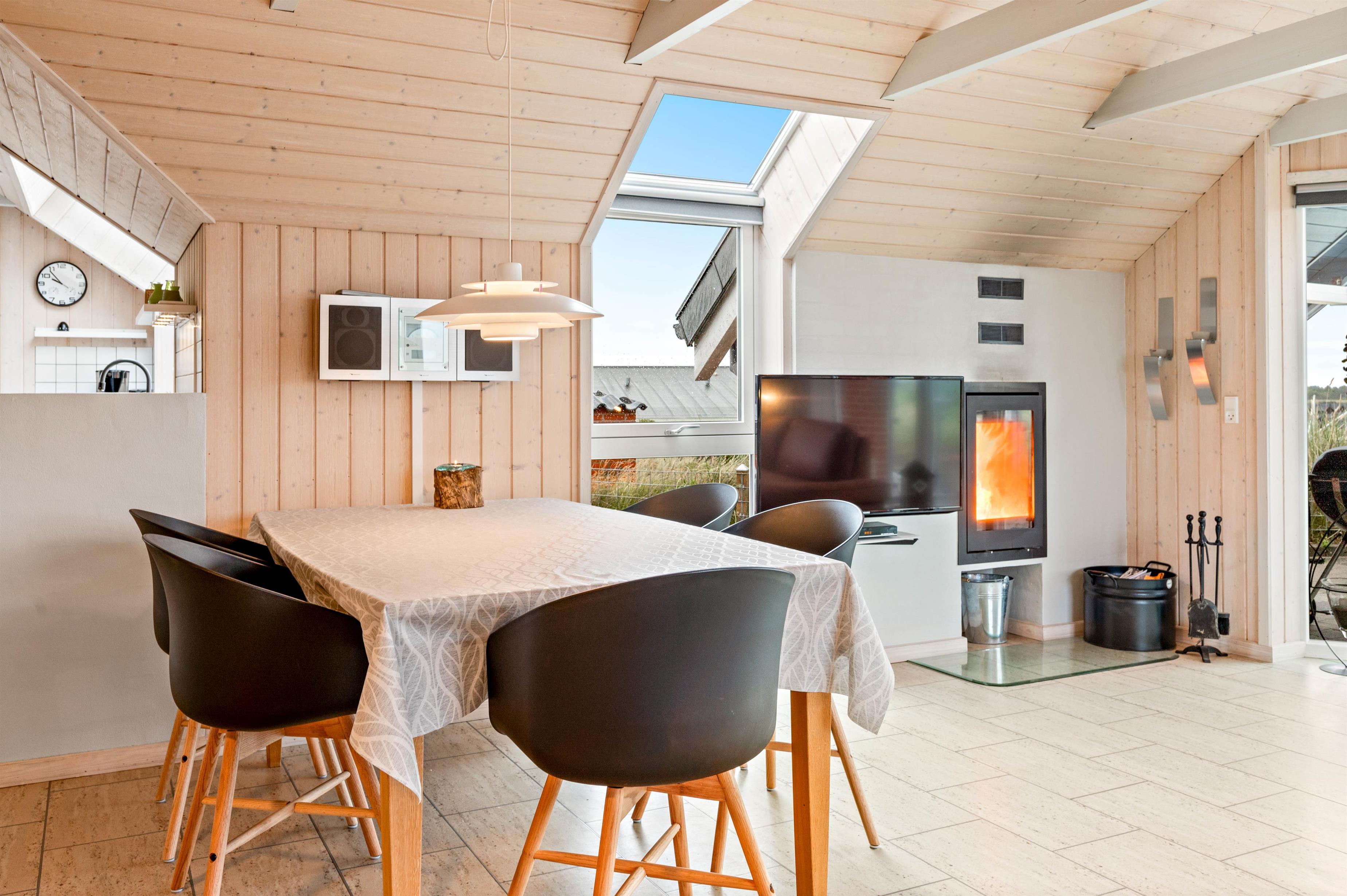 Sommerhusets naturlige centrum er det hyggelige alrum, der forener køkken, spisekrog og stue. I stueafdelingen er der fladskærms-tv med mulighed for tilslutning af egen spillekonsol, SAT-modtager, DVD-afspiller, radio og CD samt en energibesparende varmepumpe, mens køkkenet er veludstyret med blandt andet opvaskemaskine, køleskab med 85 liters frysekapacitet og mikroovn.