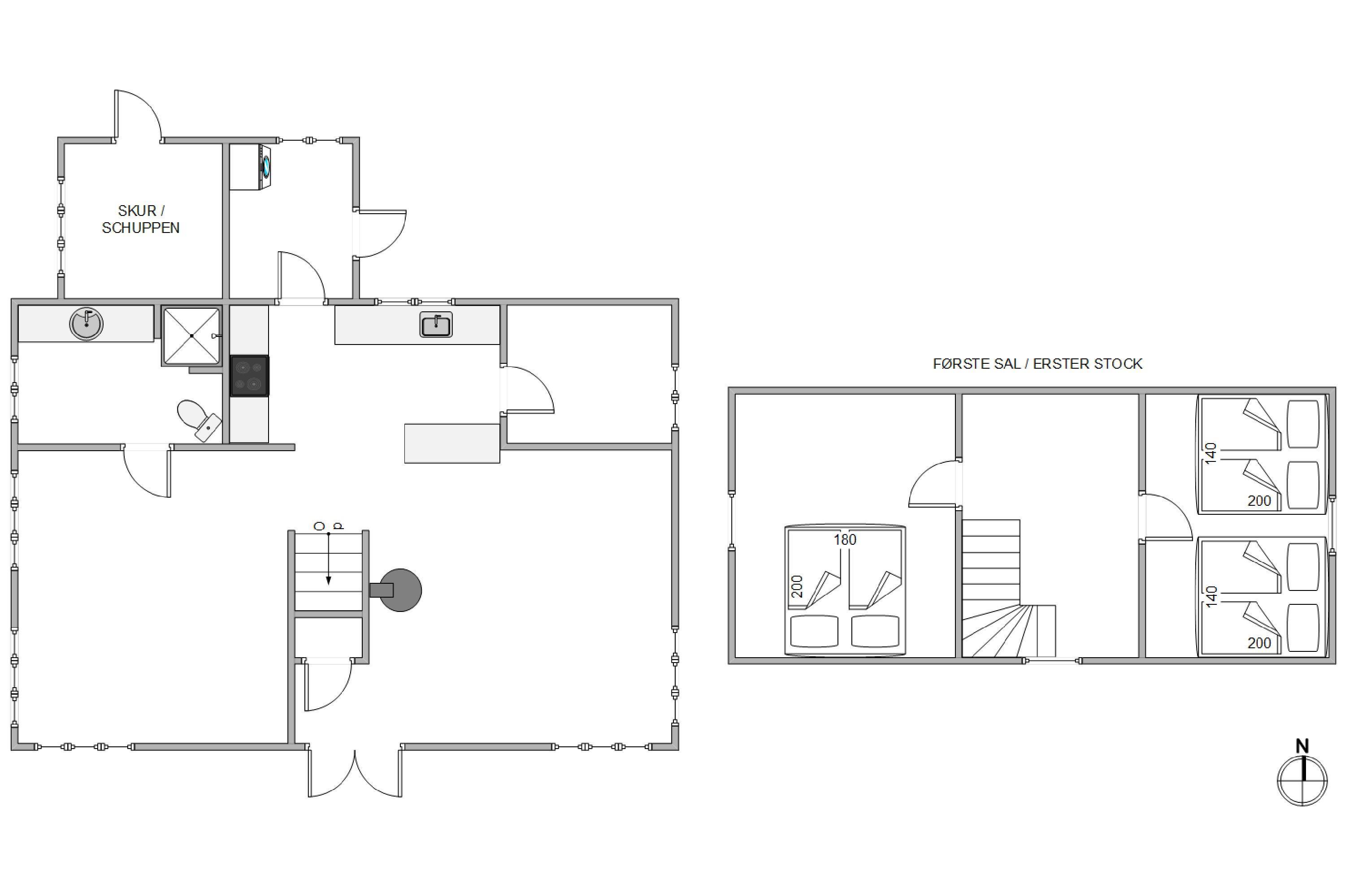 Det hyggelige sommerhus byder på et charmerende køkken, hvor I kan overlade opvasken til opvaskemaskinen. I kan derfor fokusere på at bruge kvalitetstid med jeres medrejsende i stedet for tid på kedelige huslige pligter. Sommerhusets sovepladser fordeles på 2 soveværelser, hvor den ene værelse er med 1 dobbeltseng, og det andet værelse med 2 trekvartsenge.