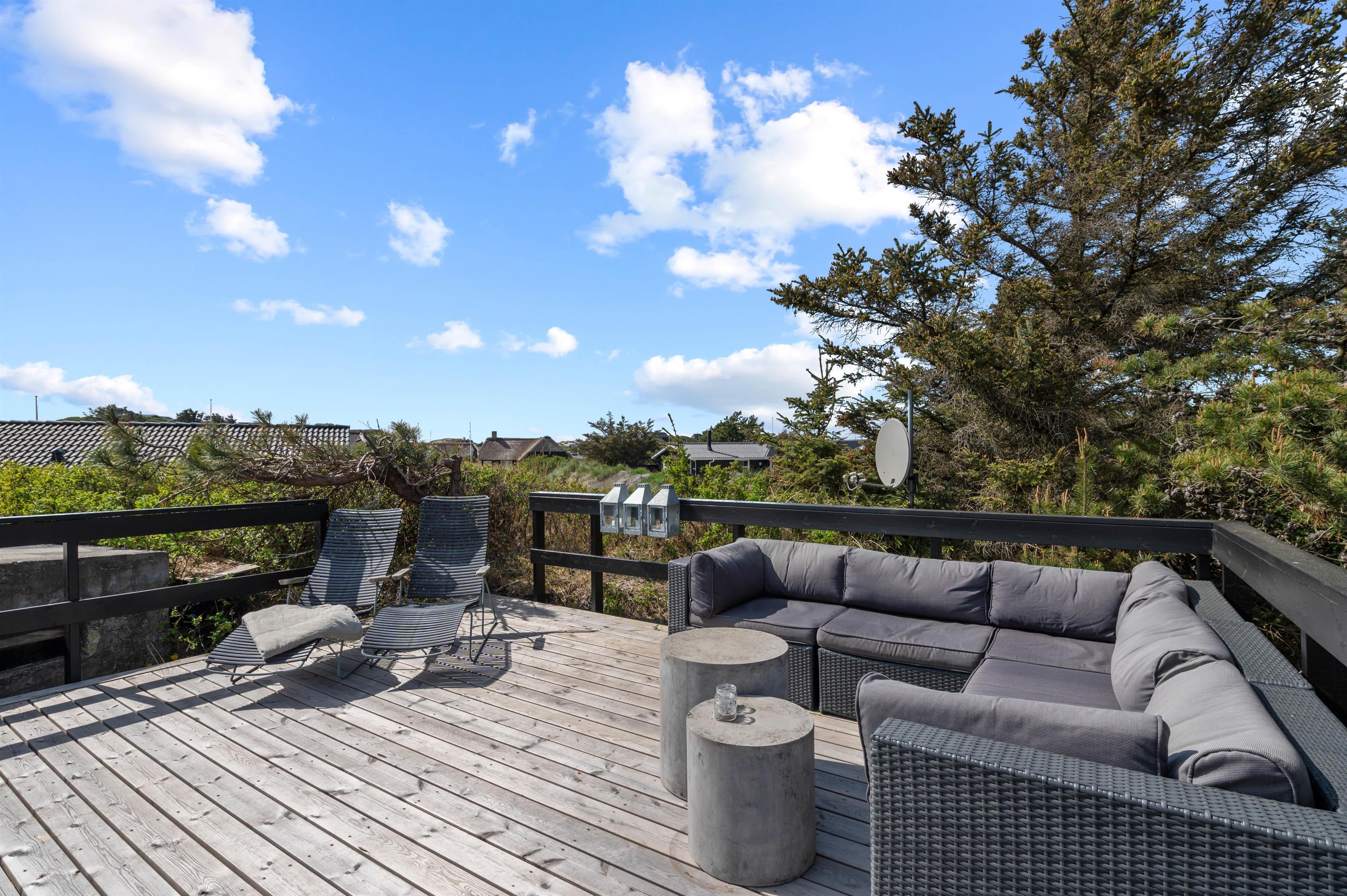 Feriehuset på Nordsøvej 34 er placeret på en 1462 m2 stor naturgrund, hvor I har rig mulighed for at nyde det gode vejr på en af de tilhørende terrasser - Hvad enten det er på terrassen, der omslutter feriehuset eller på den afskærmede terrasse, der er lidt højtliggende. Uanset hvad, så har I virkelig masser af mulighed for at nyde solskinstimerne sammen, imens I nyder en kold drink i de behagelige havemøbler, samtidig med at andre tilbereder et lækkert aftensmåltid på sommerhusets tilhørende gasgrill. I har med de forskellige terrasser derfor altid mulighed for at finde et sol- eller læhjørne på grunden.