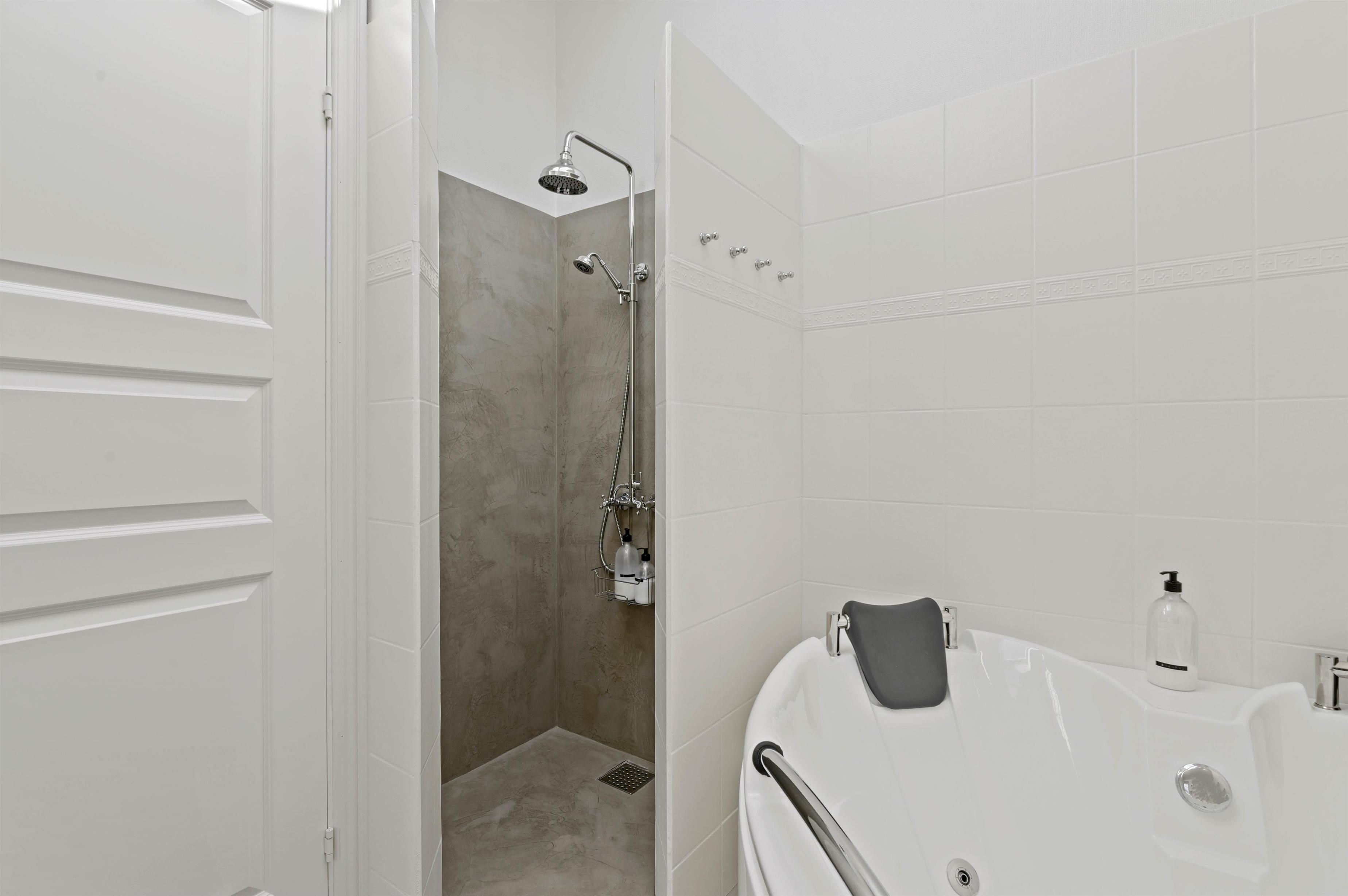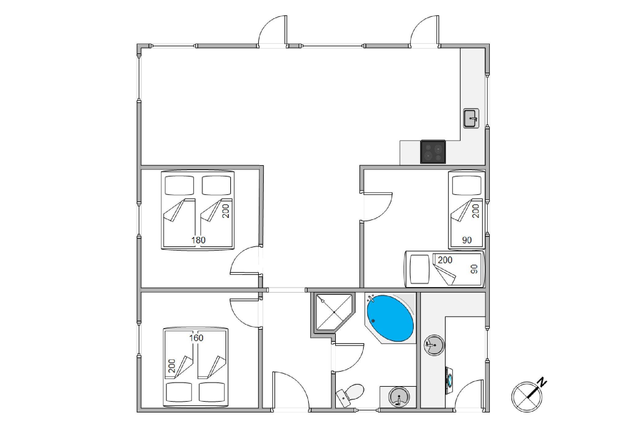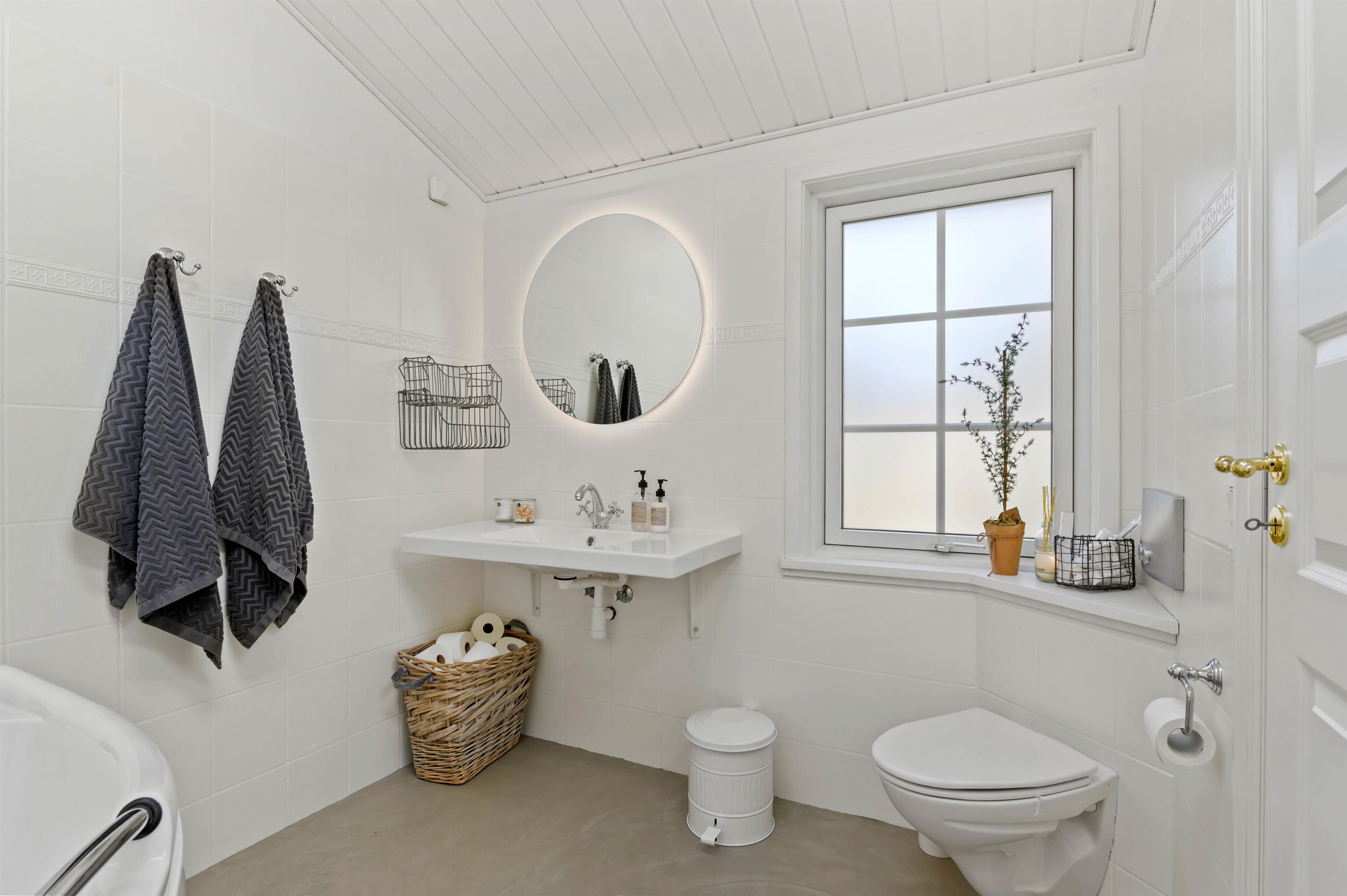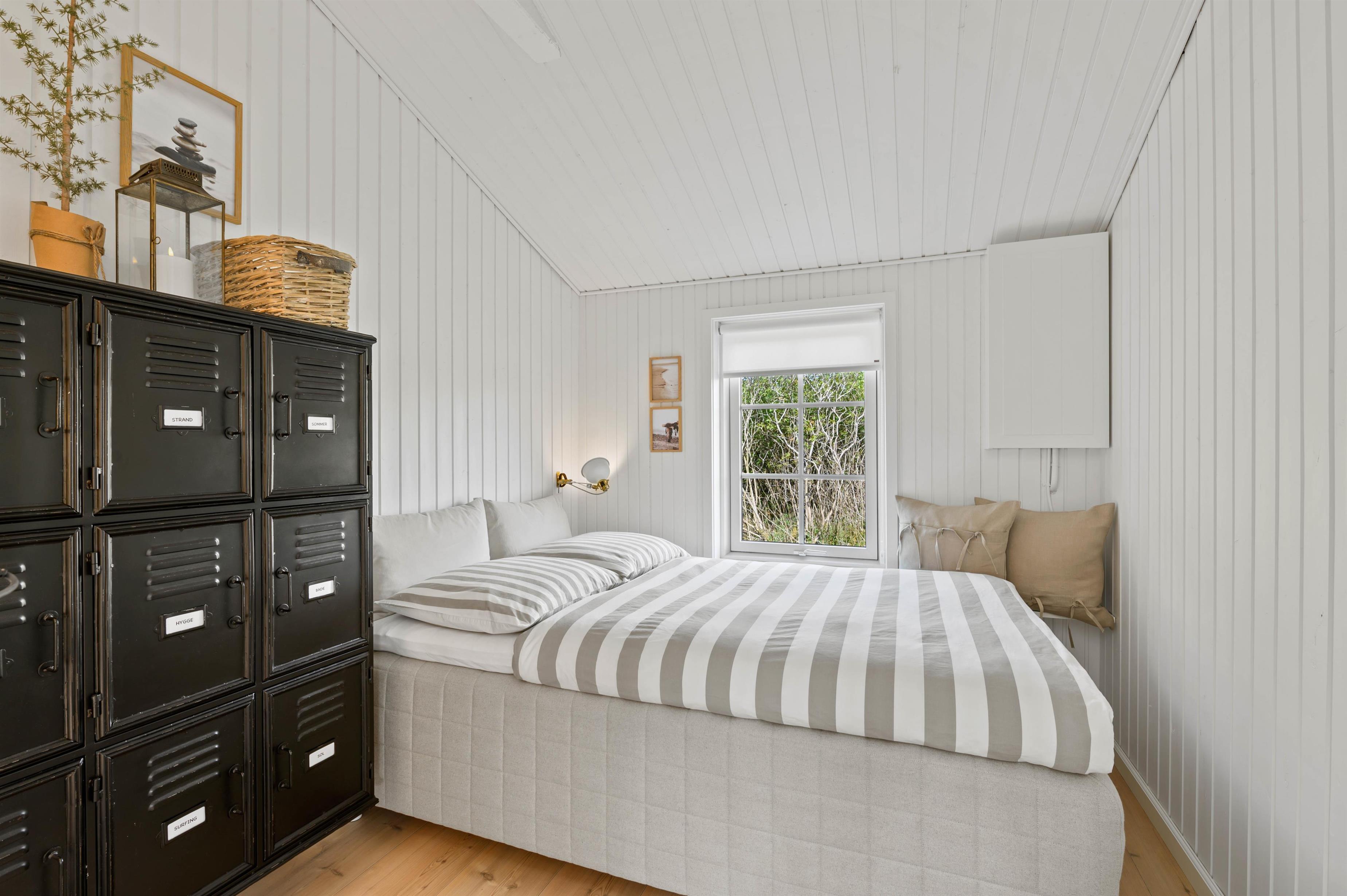 Desuden behøver I ikke være nervøse for at få kolde fødder på badeværelset om morgenen, da gulvvarmen her sørger for at holde jeres fødder dejlig varme. Badeværelset byder ydermere på et lækkert tømmespa, hvor I på en af de lidt køligere sommerdage, har mulighed for at nyde boblende og varme vand efter en lang og god tur ved stranden. Generelt er feriehuset lyst og meget smagsfuldt indrettet.