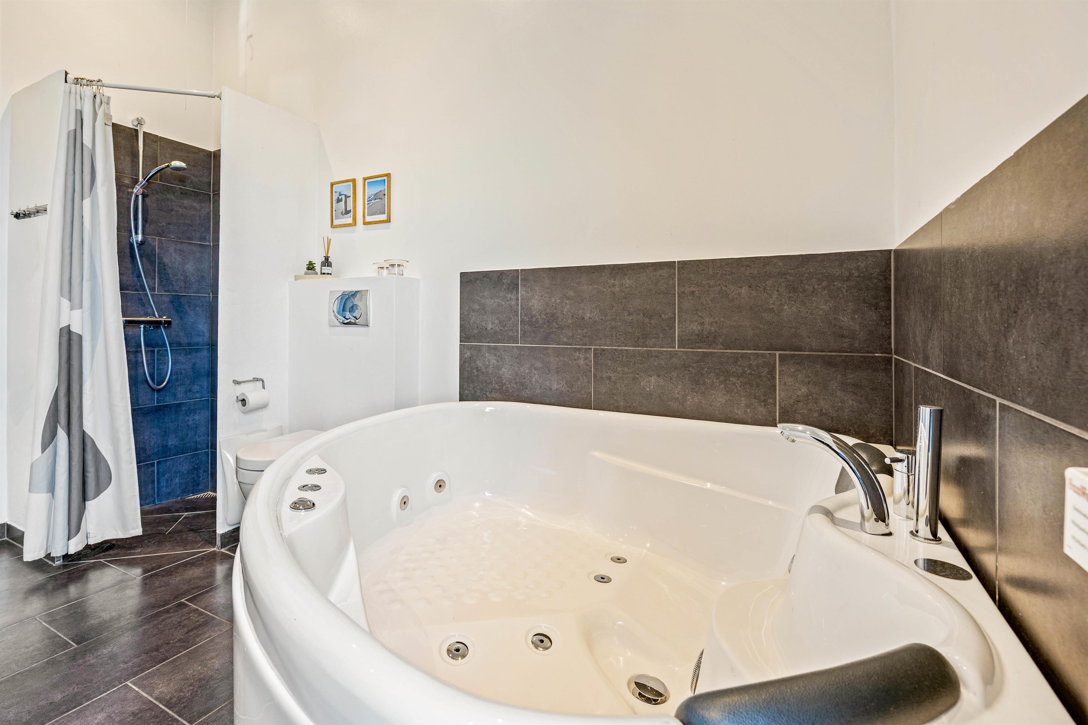 Et fantastisk dejligt feriehus opført i de bedste materialer. For jeres velbehag og komfort er smagfuldt og moderne indrettet. Dette går igen i alle rum, og i huset finder I fire rigtig dejlige og lyse soveværelser, alle med dobbeltsenge og gode skabsforhold. To dejlige badeværelser med gulvvarme og bruser, sikrer at der ikke er kø til toilettet og bruseren om morgenen. I det største af badeværelse kan I endda forkæle jer selv med noget hjemmewellness i form af en sauna og et spabad.