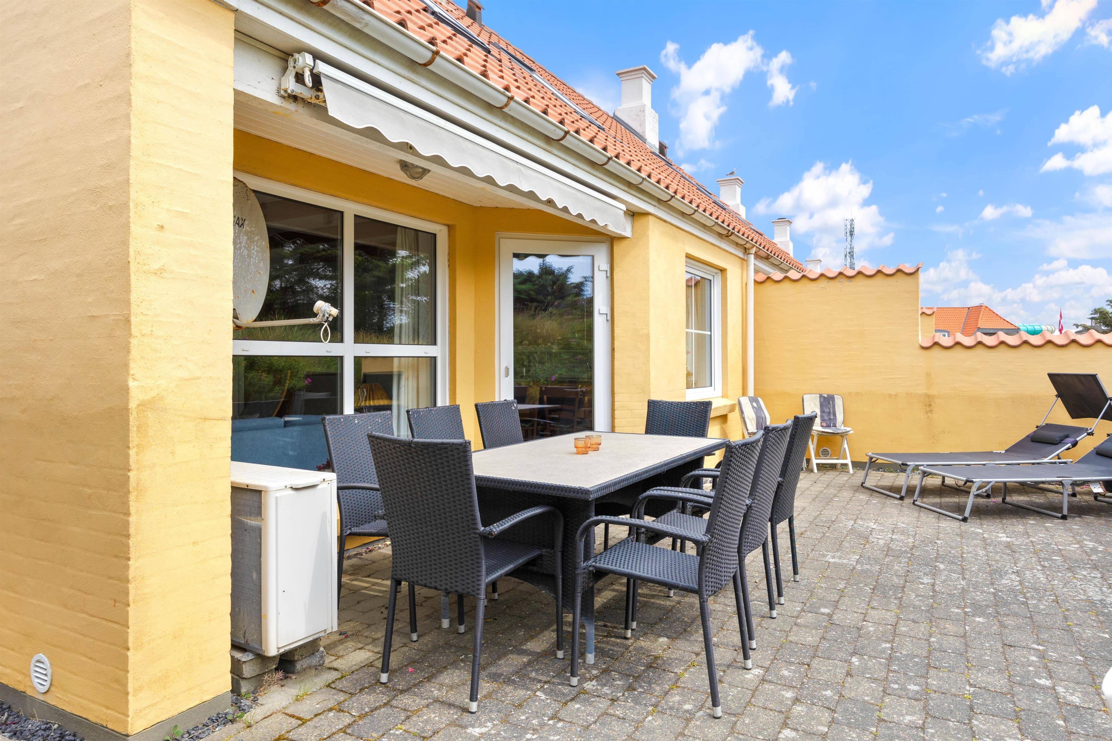 Til ferielejligheden på Lodbergsvej 159G er der den hyggeligste terrasse med masser af mulighed for solbadning, afslapning, samt for at at tilberede feriemaden på grillen og nyde et glas vin og et skønt måltid ved havemøblerne. Terrassen har en overdækket del, således at I ikke behøver at bekymre jer om, at duggen falder om aftenen.