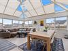 Stuen er rigtig hyggelig og stilfuldt indrettet med lækre og komfortable møbler. Her er der et fladskærms-TV, radio og gratis trådløst internet, så I kan virkelig føle jer hjemme. Udestuen ligger i forbindelse med stue og køkken, og helt mod vest. Den er fantastisk, der er et vidunderligt lys i den, og den er smukt forbundet med resten af huset, selvom den er meget anderledes, primært fordi der er loft til kip samt store vinduespartier. Her kan I sidde trygt og varmt, og bare føle jer i et med den omkringliggende natur.