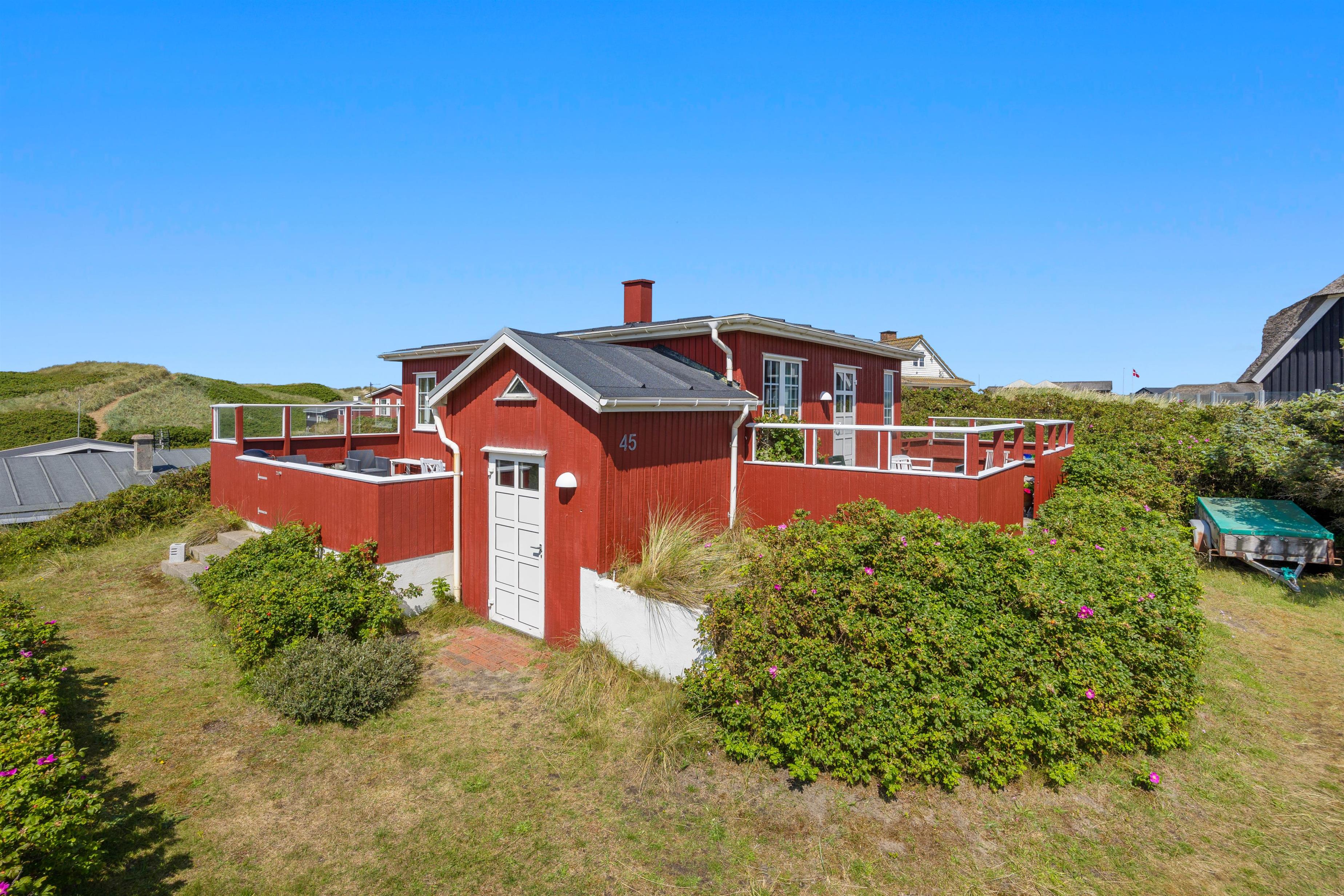 På den 600 m2 store klitgrund finder I dette feriehus tæt på stranden. Oplev fantastiske sommeraftener på den godt beskyttede, lukkede terrasse og smag på Vesterhavets salt og lyt til lyden af bølgerne. I kan tilberede et lækkert måltid på sommerhusets tilhørende gasgrill, og nyde den tilberedte mad sammen i havemøblerne, der er til rådighed.