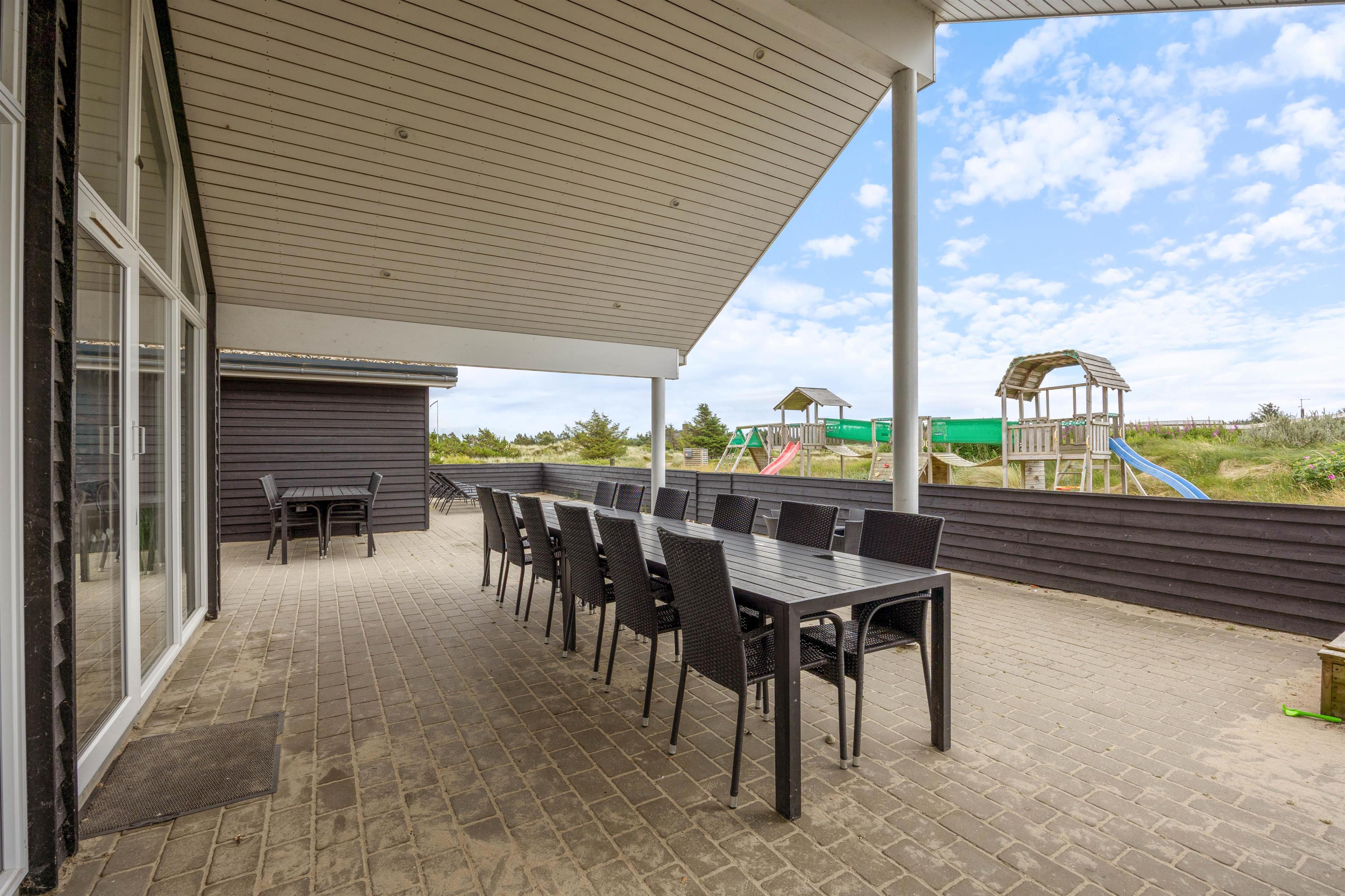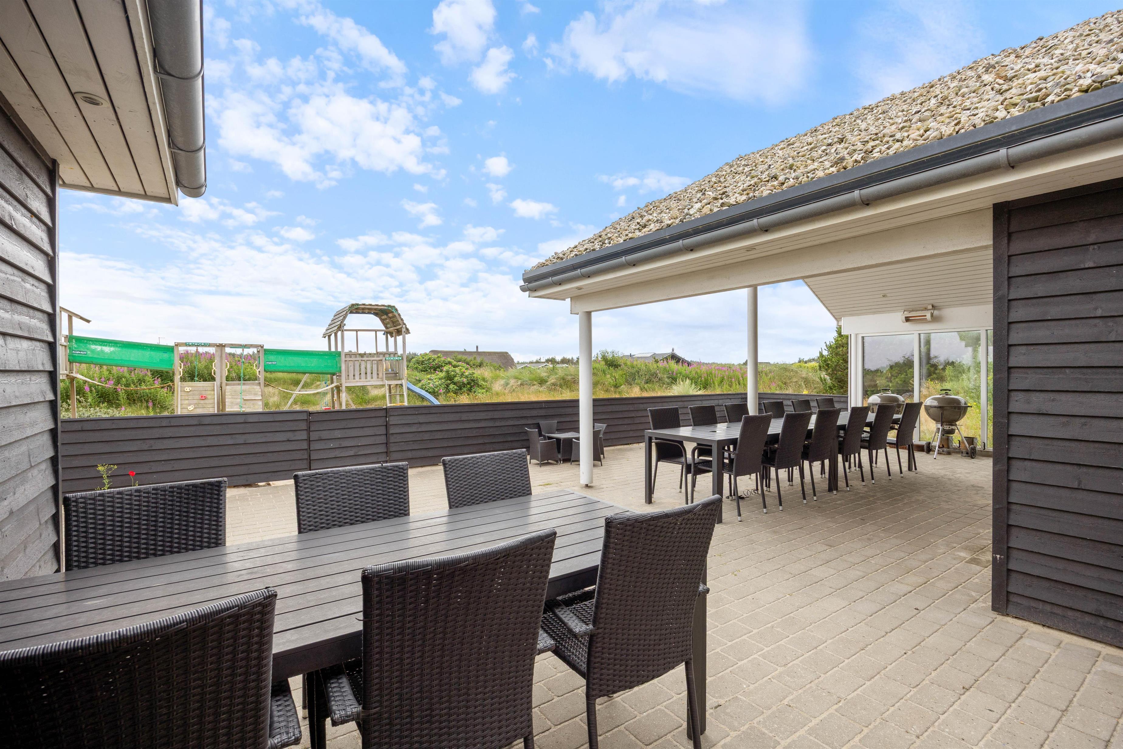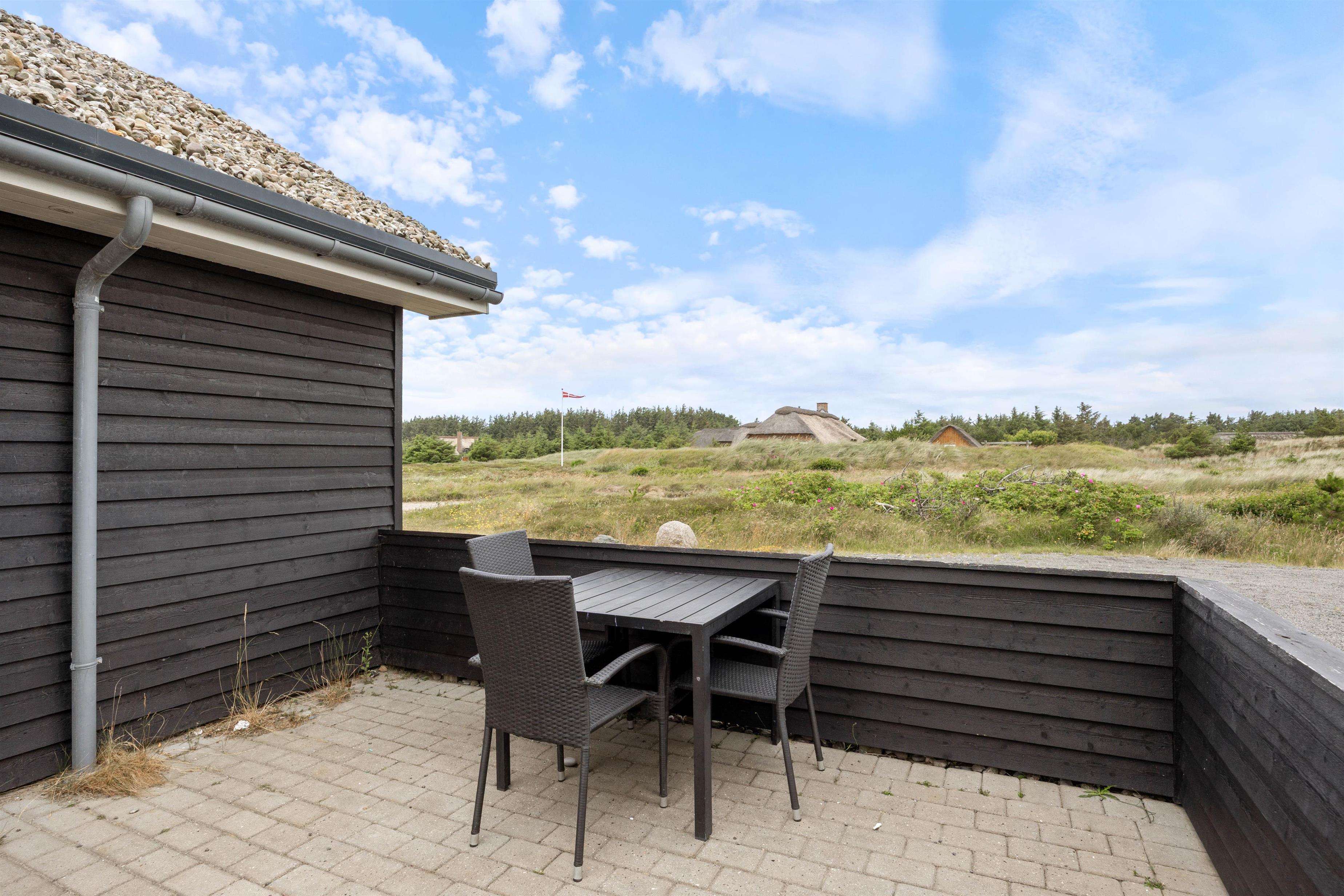 Havemøblerne på terrassen indbyder til skønne middage på dage, hvor vejret er godt. I kan vælge mellem flere forskellige terrasser alt efter humør og vejr – ved sommerhuset er der nemlig en stor, lukket terrasse mod syd, hvor I både kan sidde i det fri eller under den overdækkede del af terrassen.