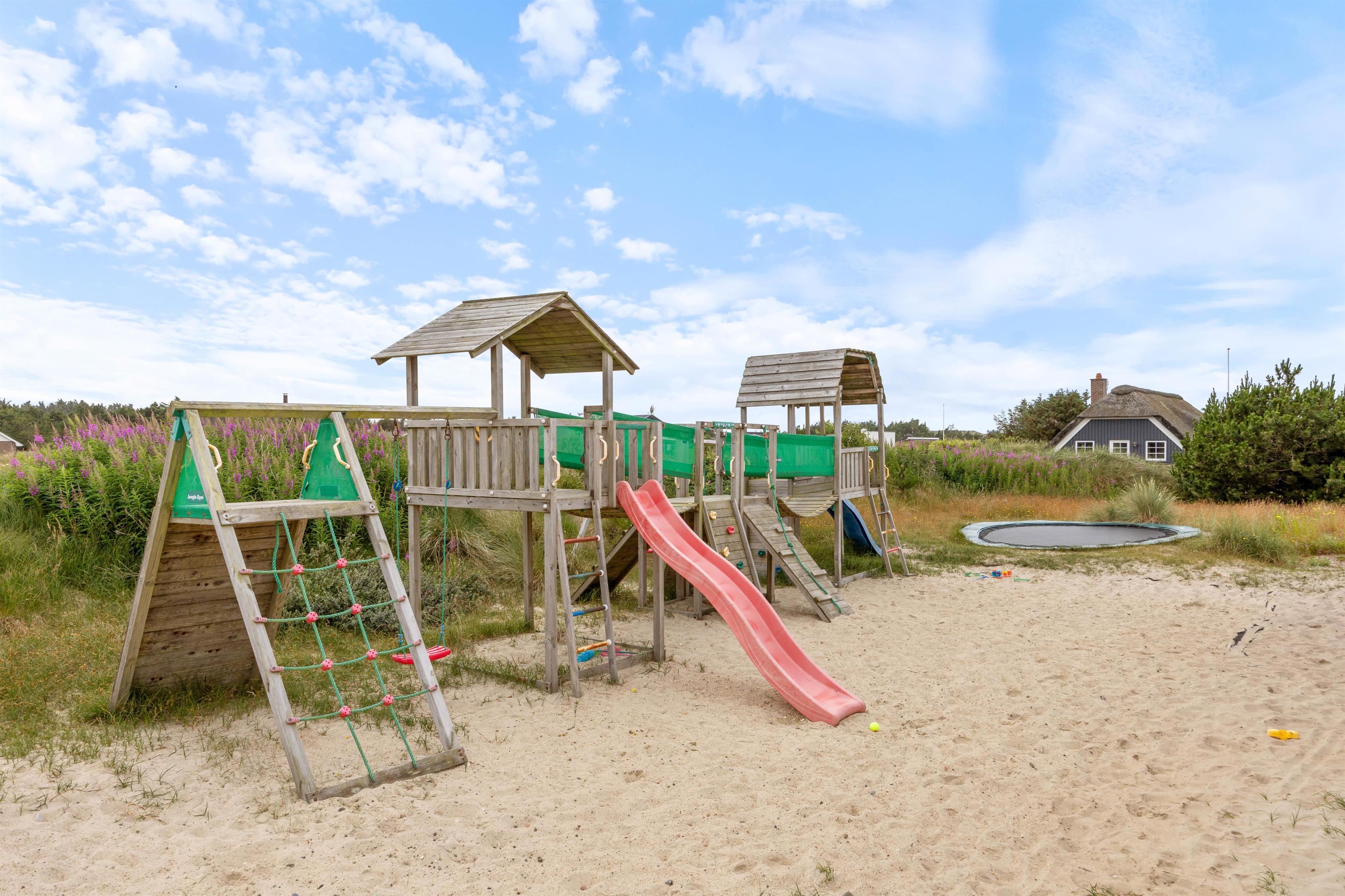 En af de mest bemærkelsesværdige faciliteter i dette sommerhus i Søndervig er uden tvivl den fantastiske poolafdeling, hvor I finder en 18 m² stor pool. Om I er en stor familie eller en gruppe venner, kan I nyde svømmeture året rundt. Sommerhuset tilbyder også en indendørs sauna og et spabad, hvorfra de voksne kan holde øje med børnenes leg og samtidig nyde lidt ekstra velvære og tanke fornyet energi.