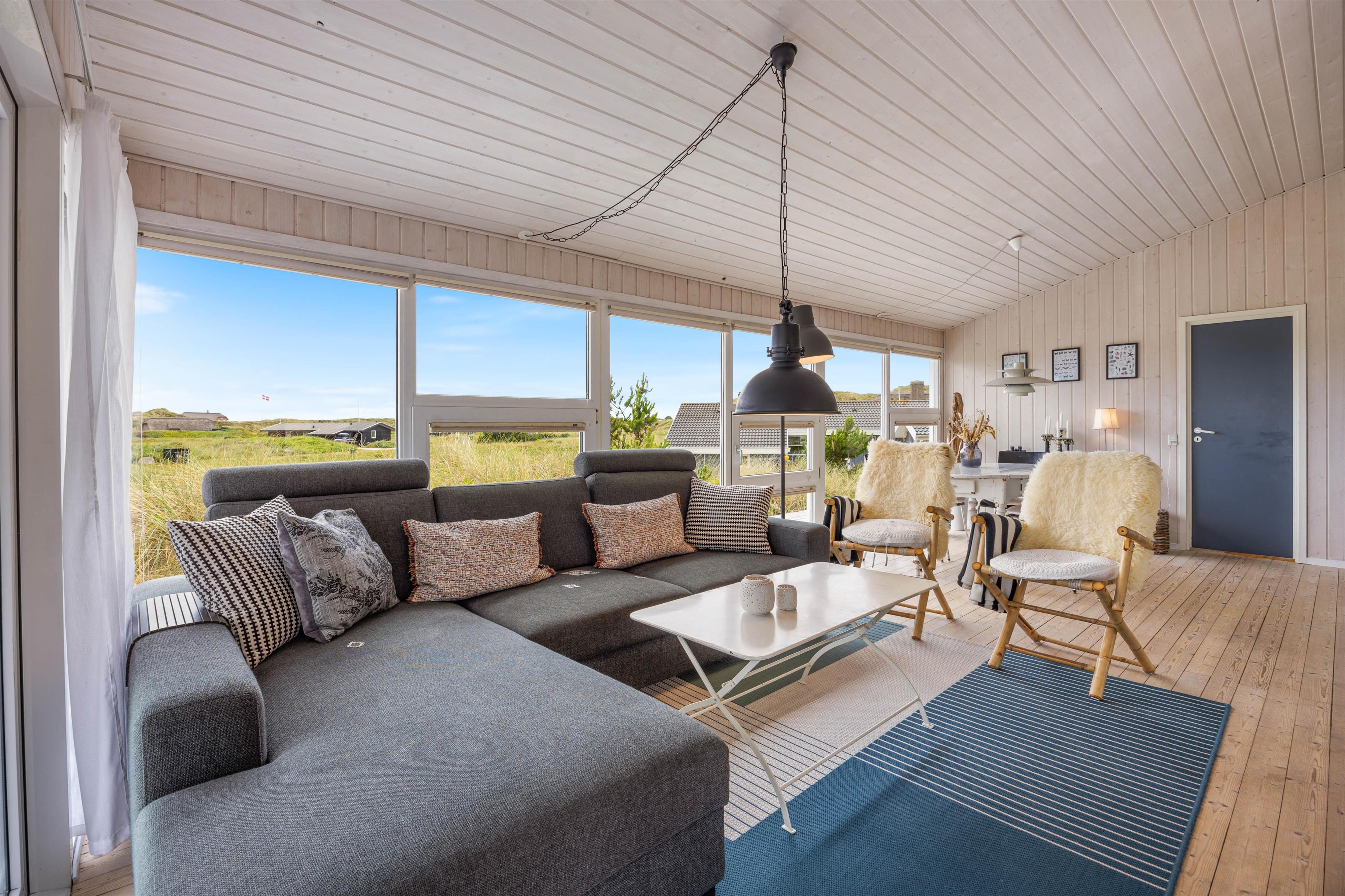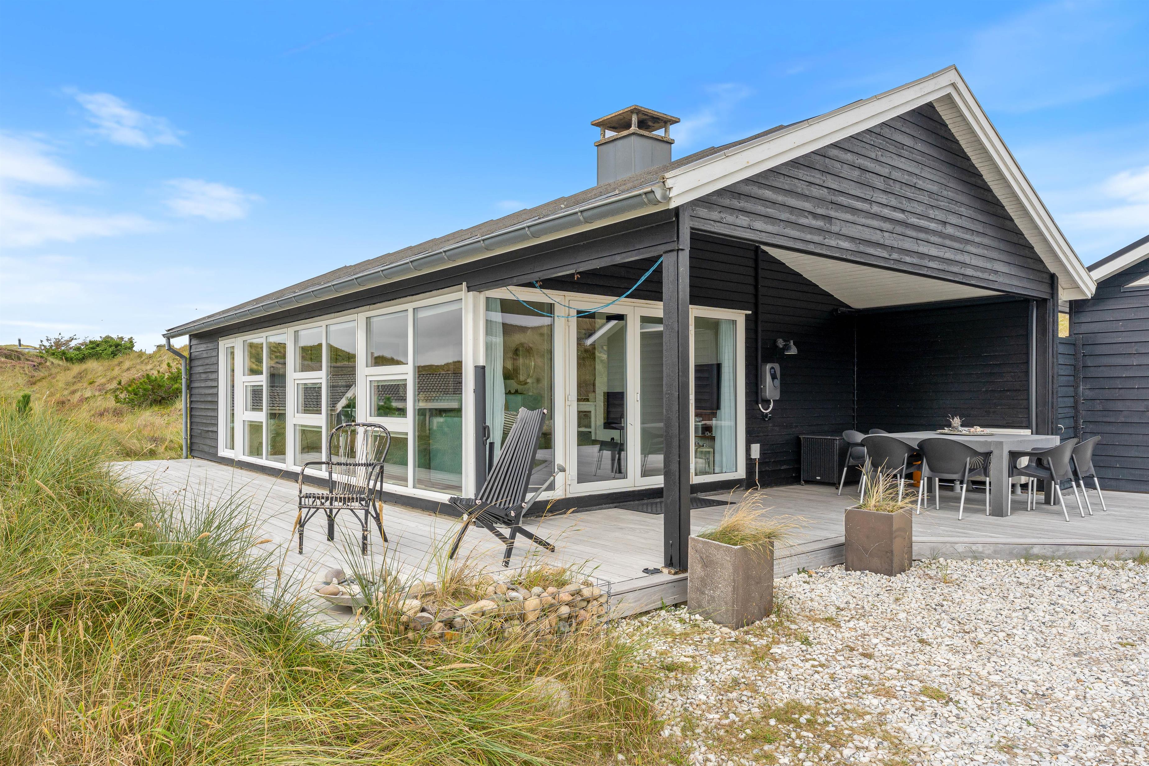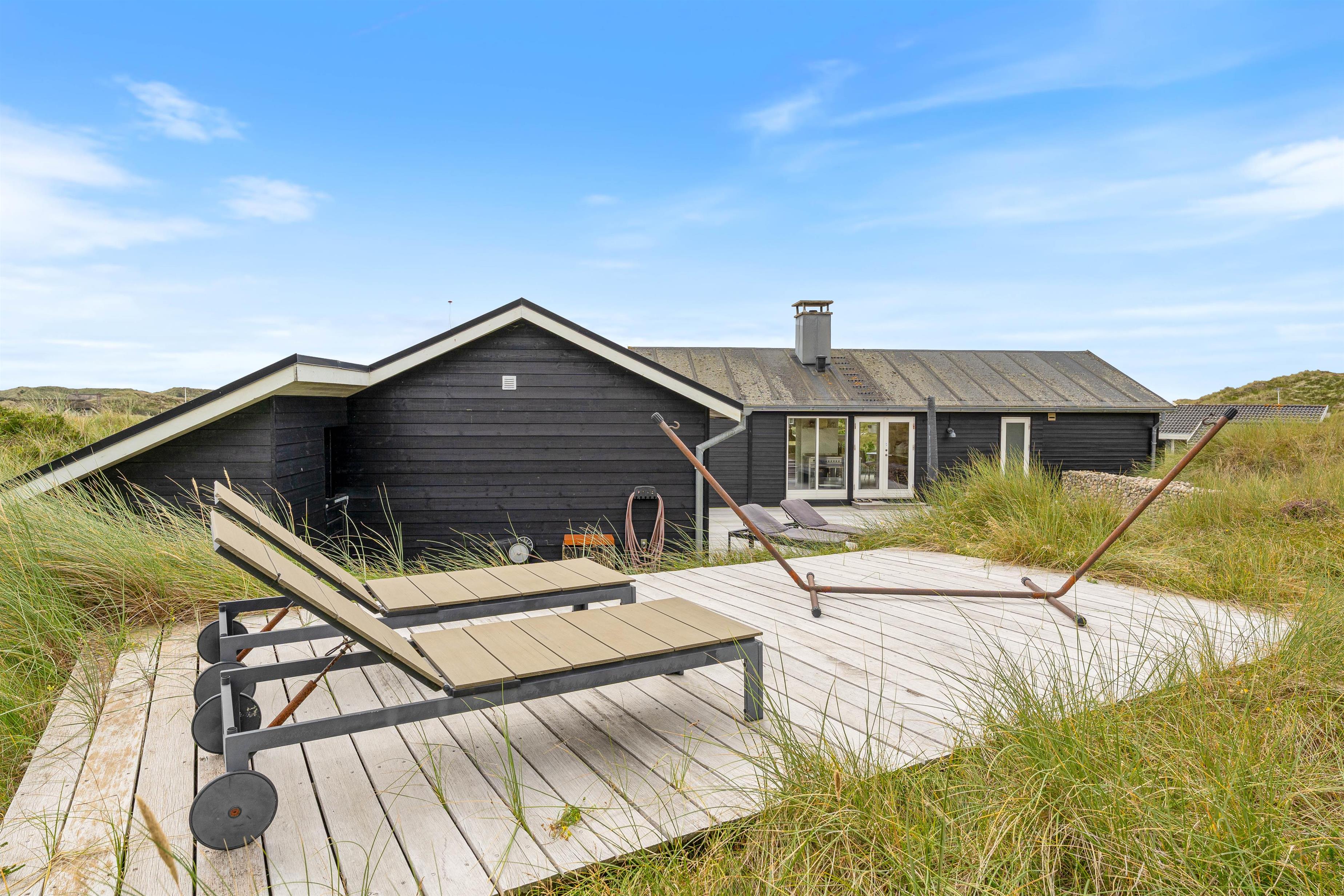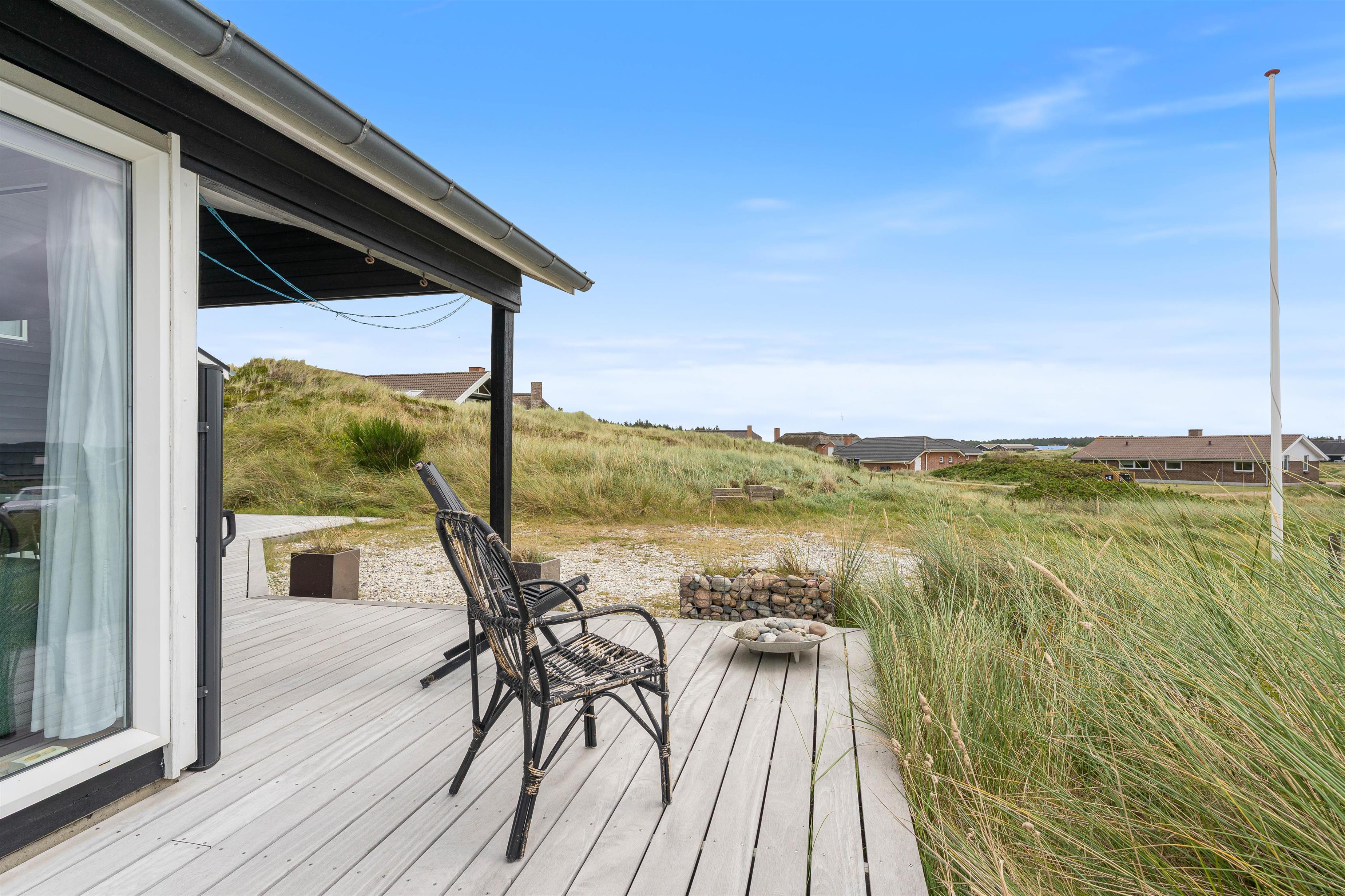 Husets beliggenhed er helt fantastisk. I bor midt i det smukke klitlandskab, og terrassen er helt ugeneret omgivet af en høj klitbanke, som fungerer som naturlig afskærmning. Der hører også en ekstra lille terrasse med til huset, som ligger på klittoppen og giver jer en skøn udsigt over området.